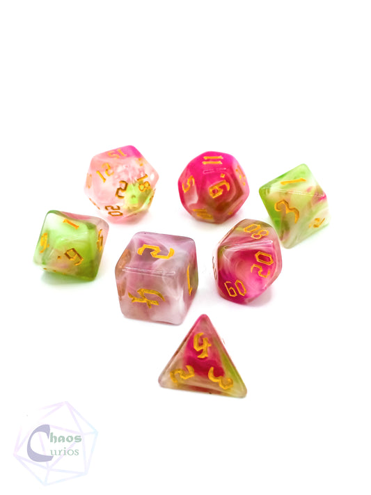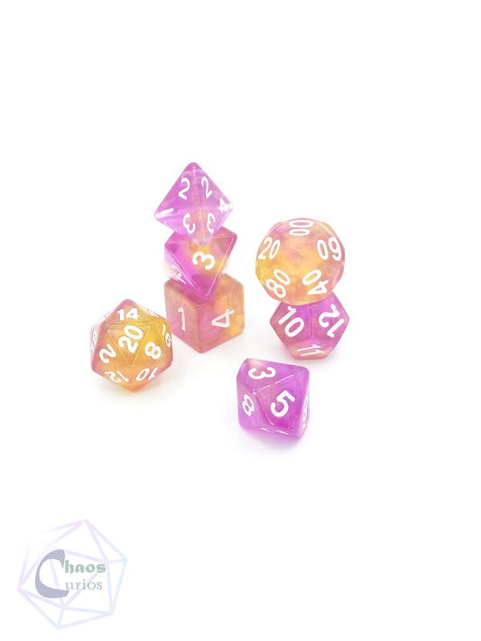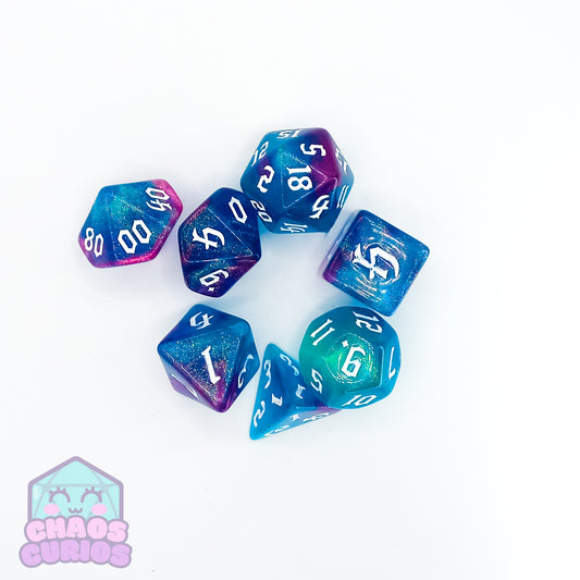 Glitter Blue/Pink 7-piece Dice Set Chaos Font