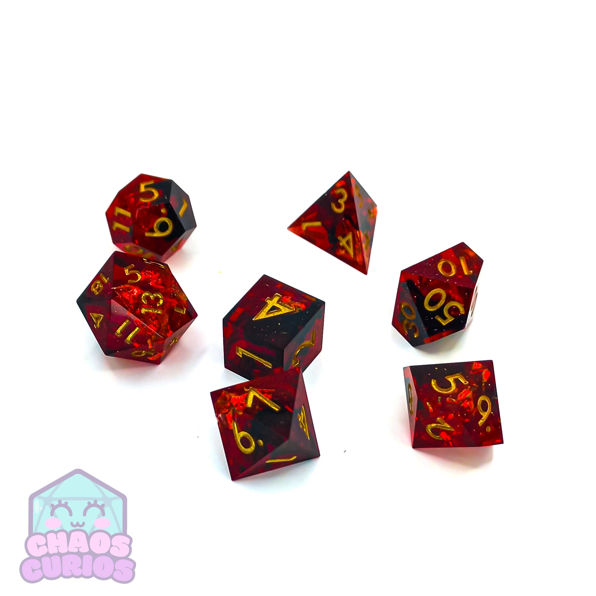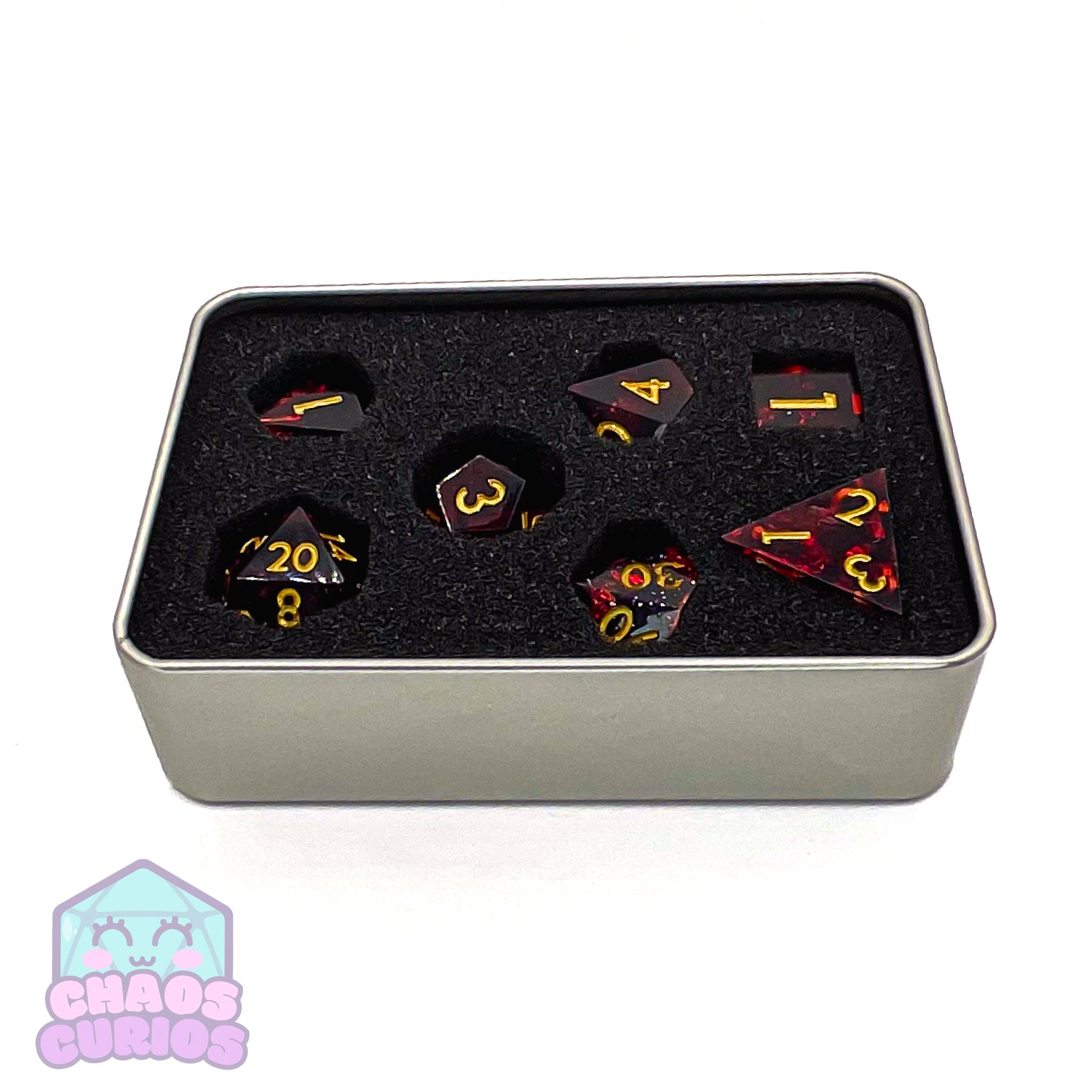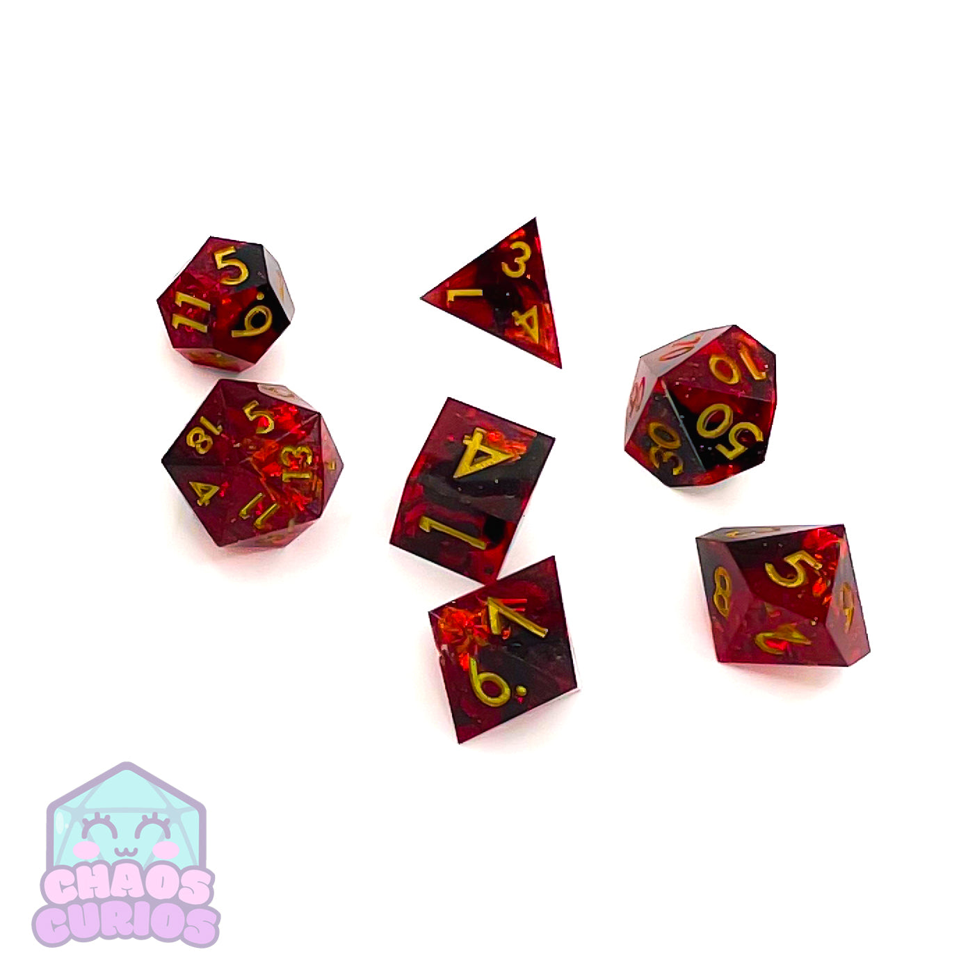 Dark Romance Red and Black 7-piece Sharp Edged Resin Dice Set
