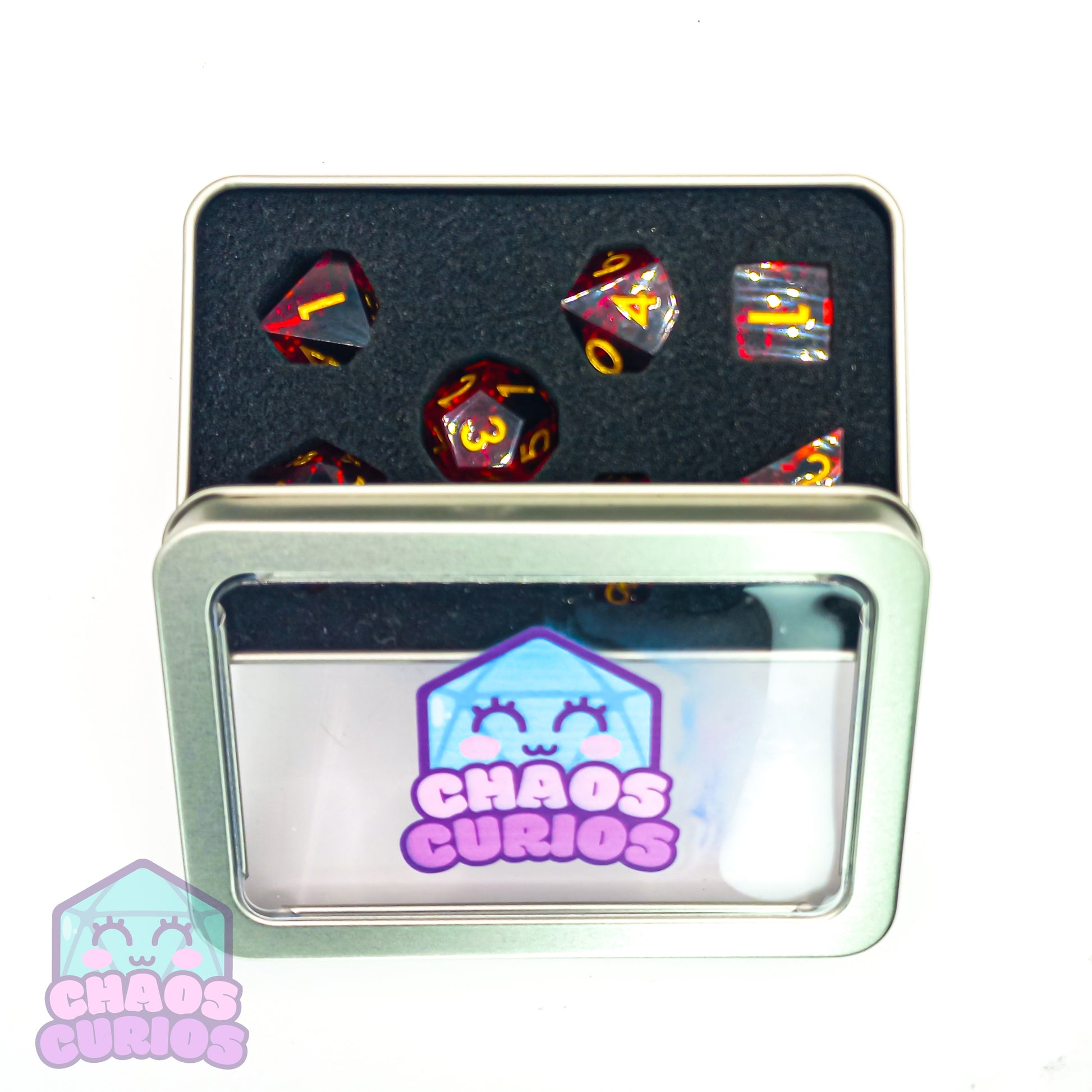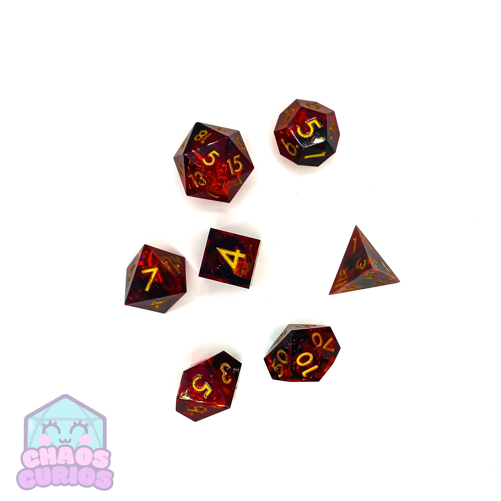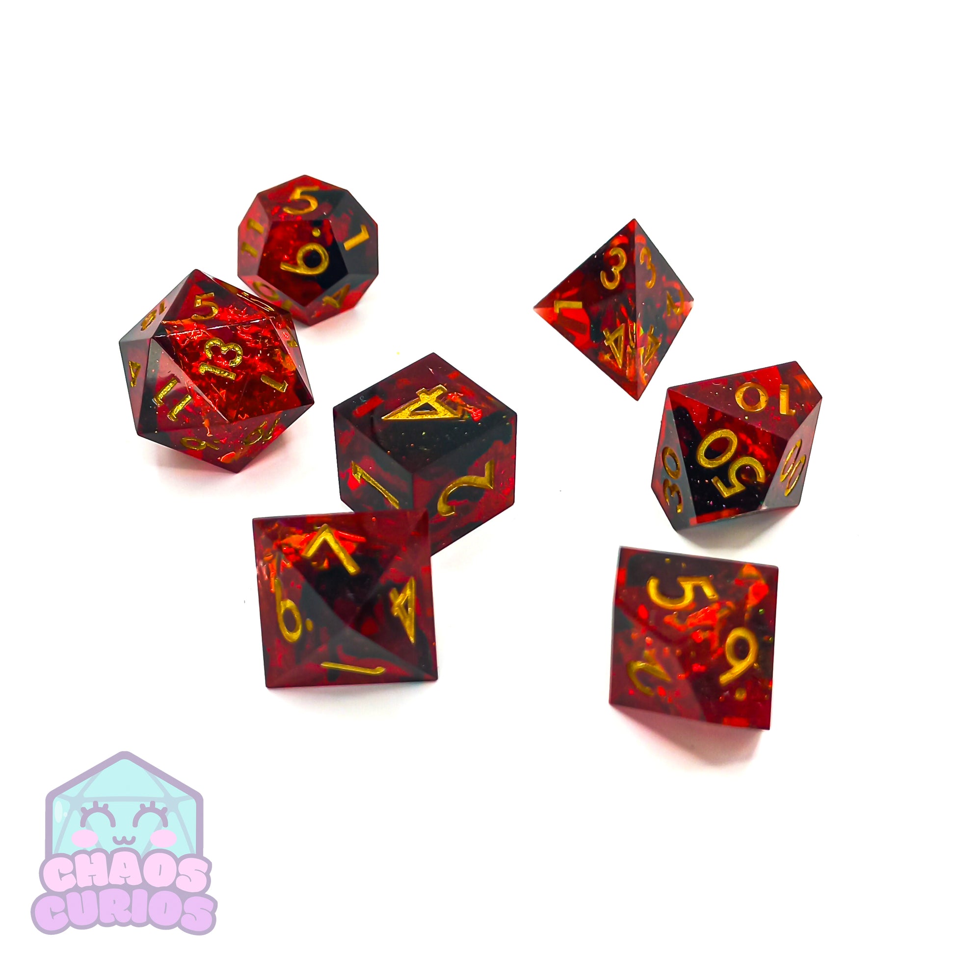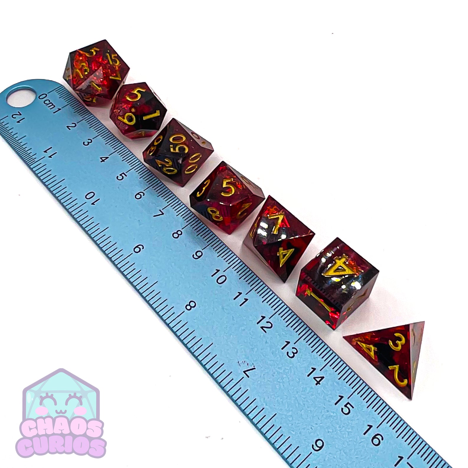 Dark Romance Red and Black 7-piece Sharp Edged Resin Dice Set