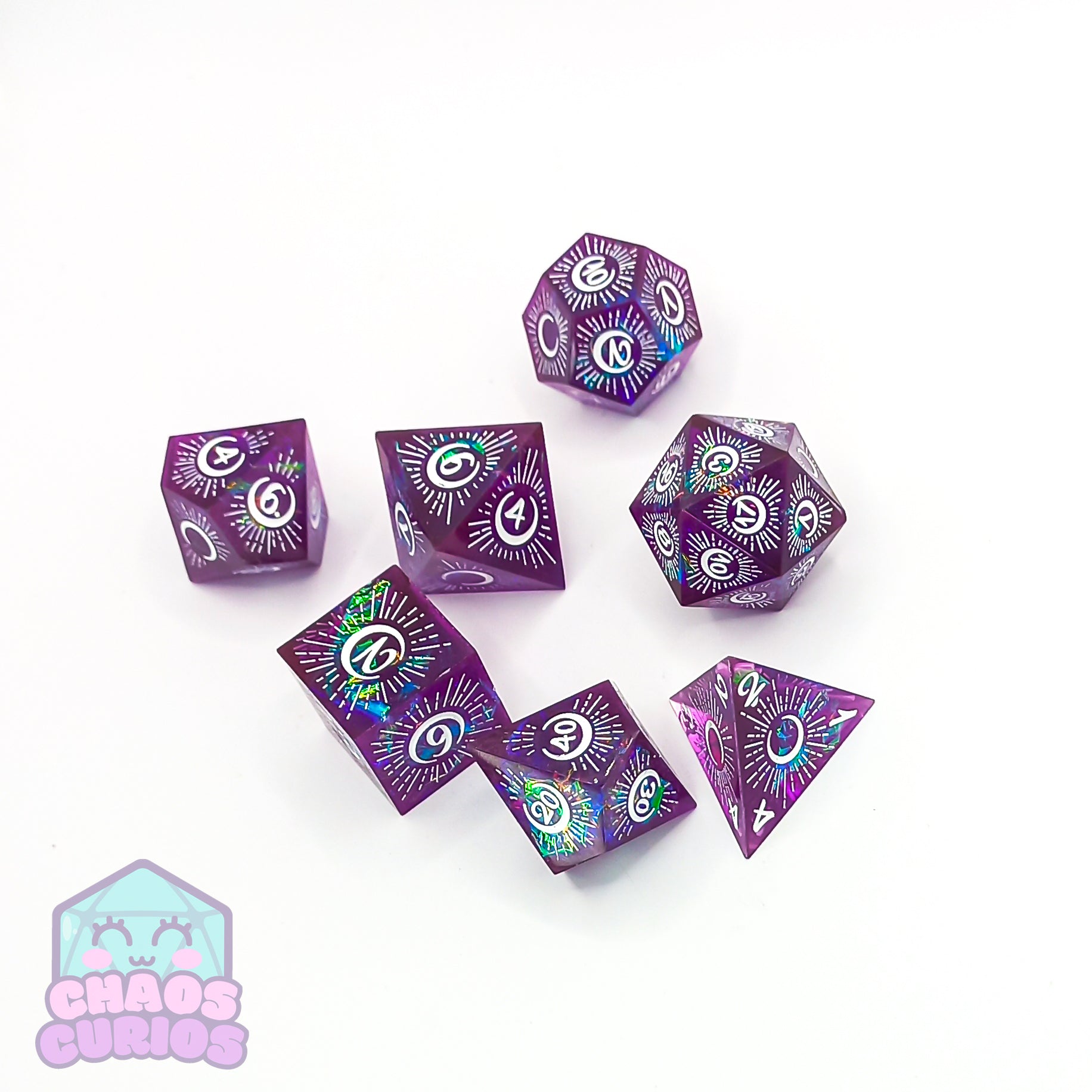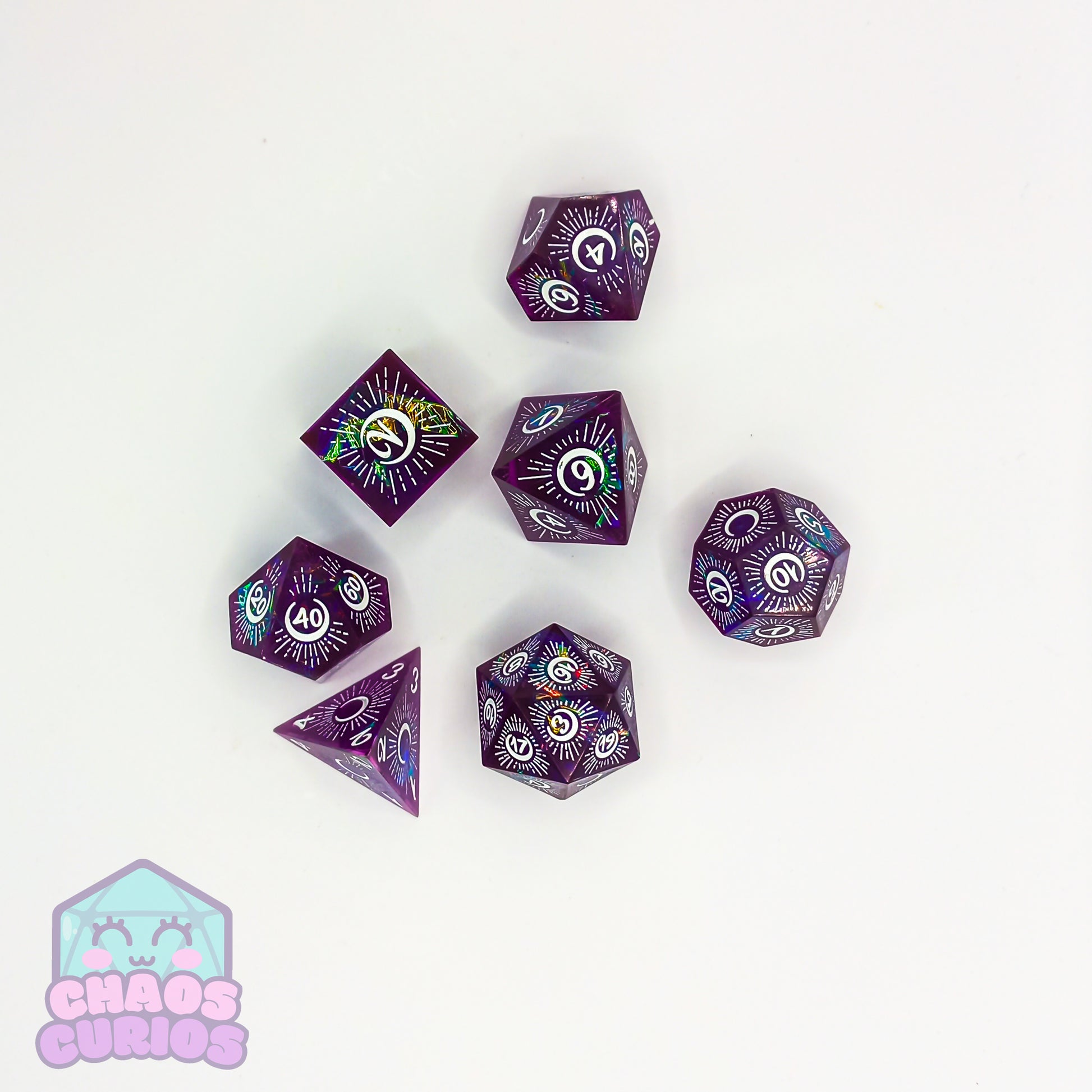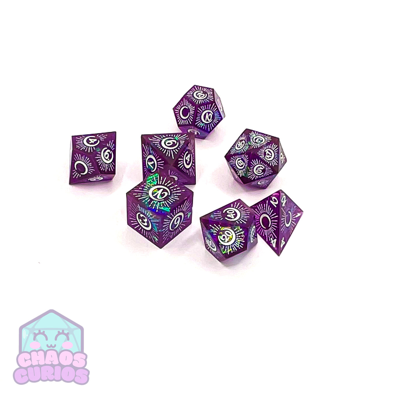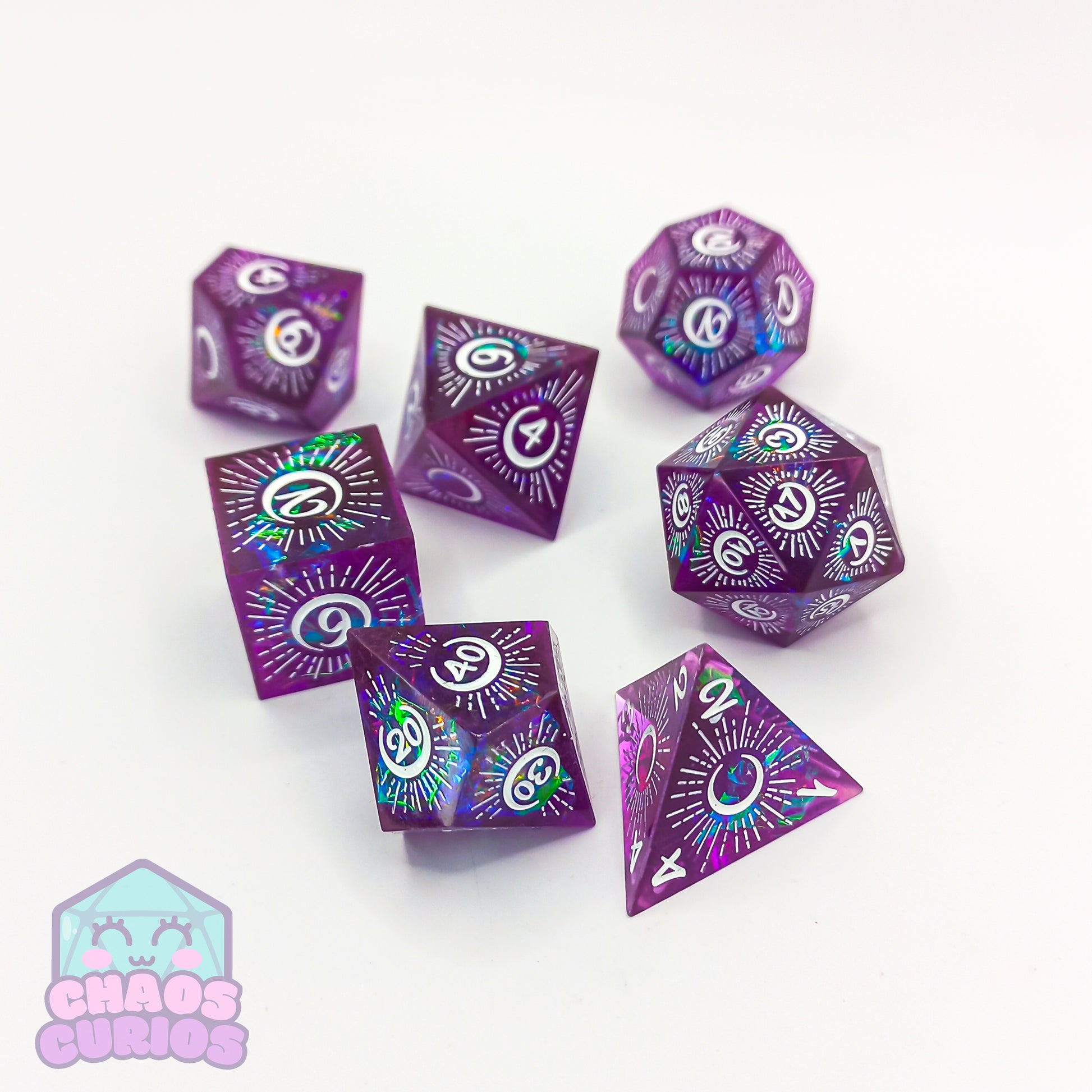 Purple Mystical Moon 7-piece Sharp Edged Resin Dice Set