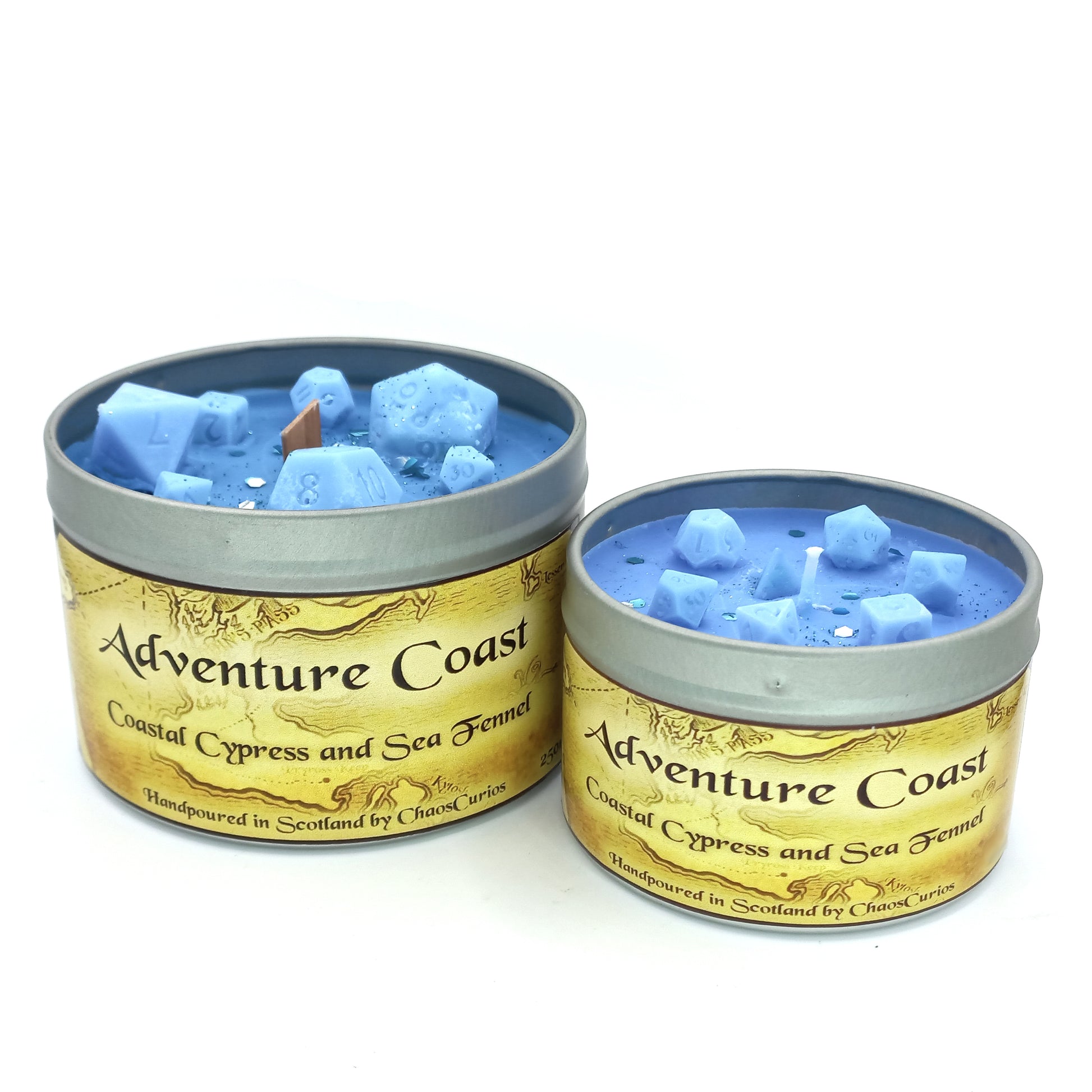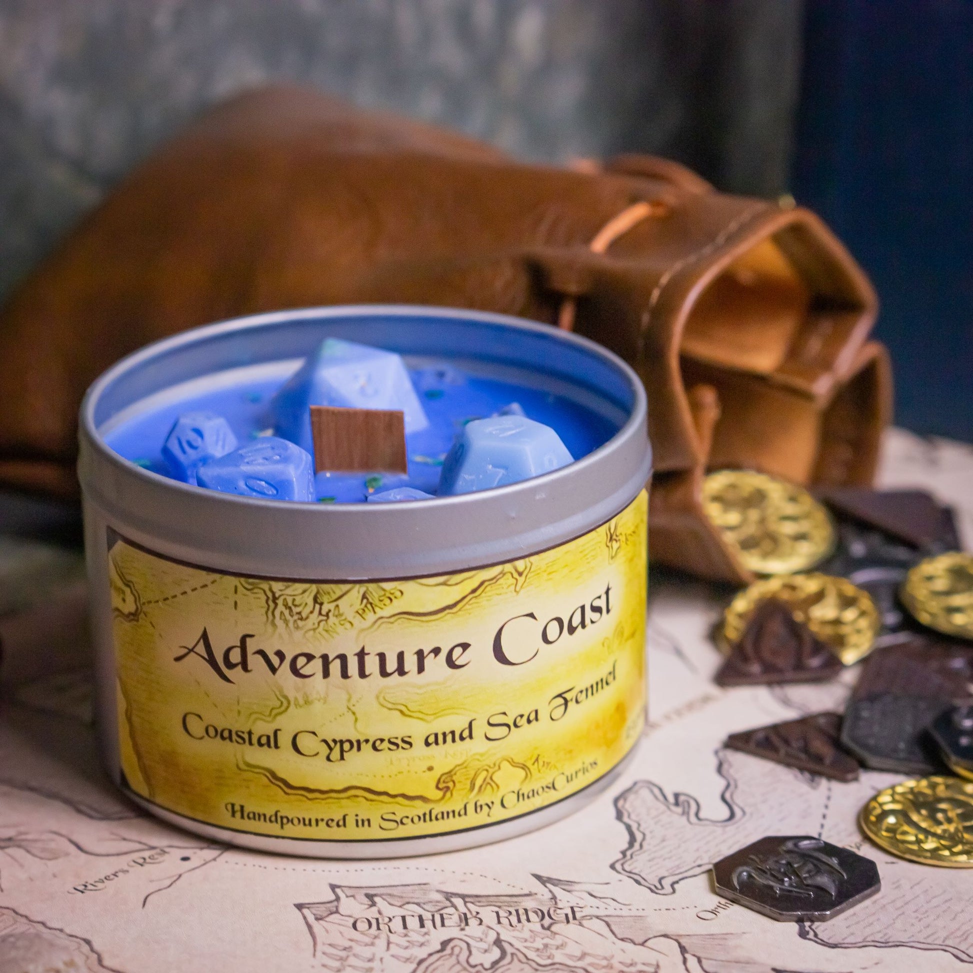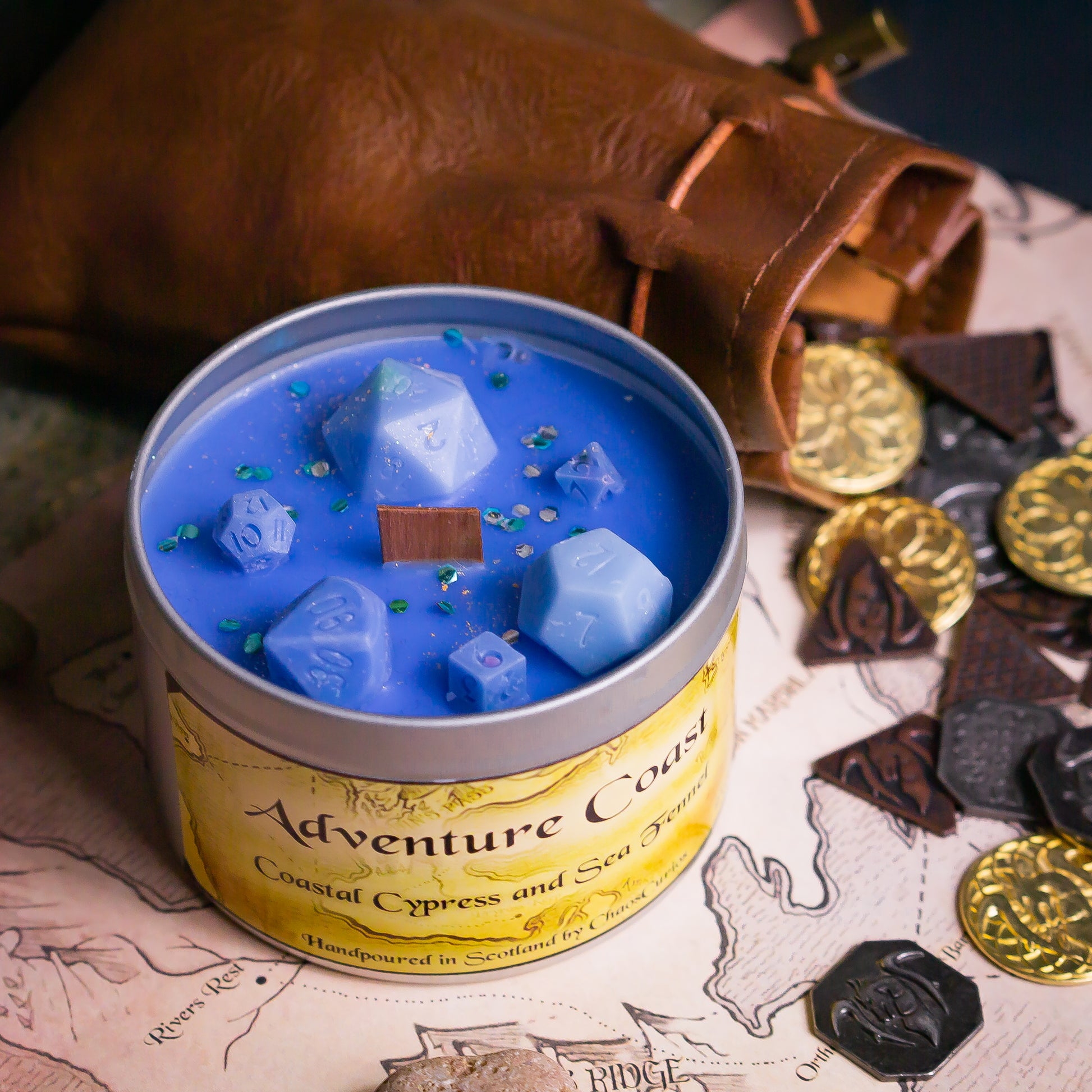 Adventure Coast, DnD Dice Candle, Wood Wick, Coastal Scented, Roleplay Candle, Dice Wax Melts, 35+ Hours