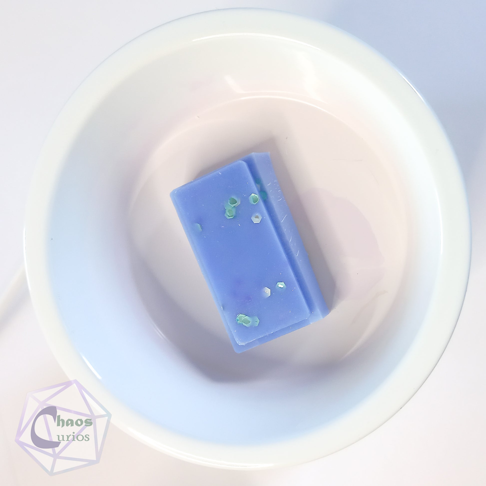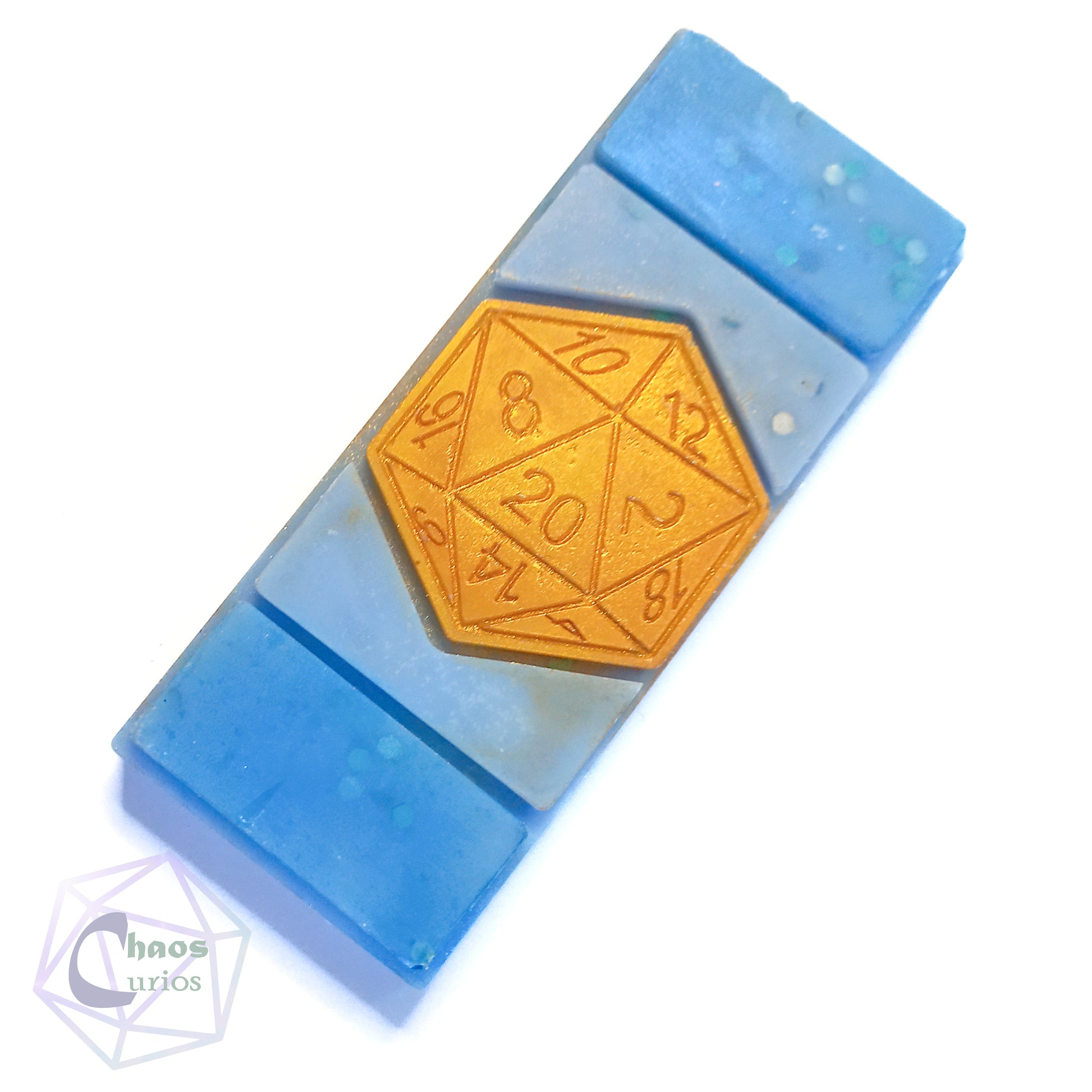A beautiful wax melt snapbar scented with Coastal Cypress and Sea Fennel with eco glitters. A perfect gift for any DnD player or Roleplayer!