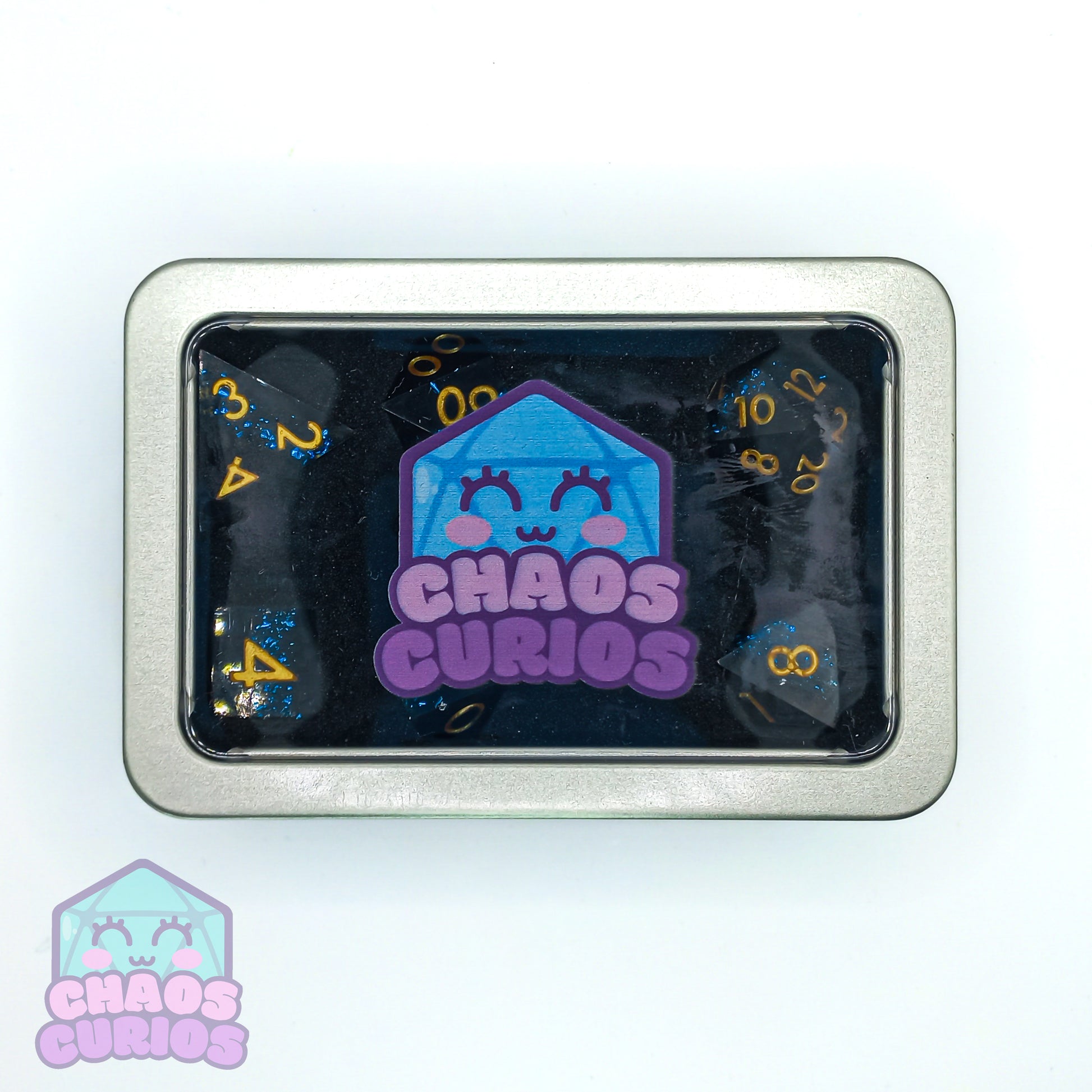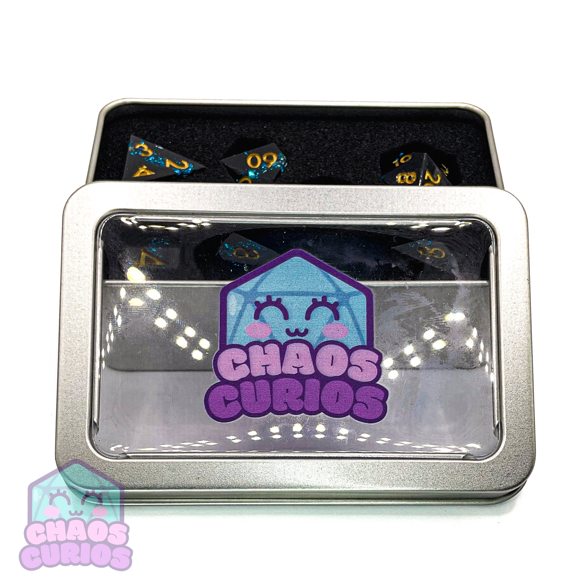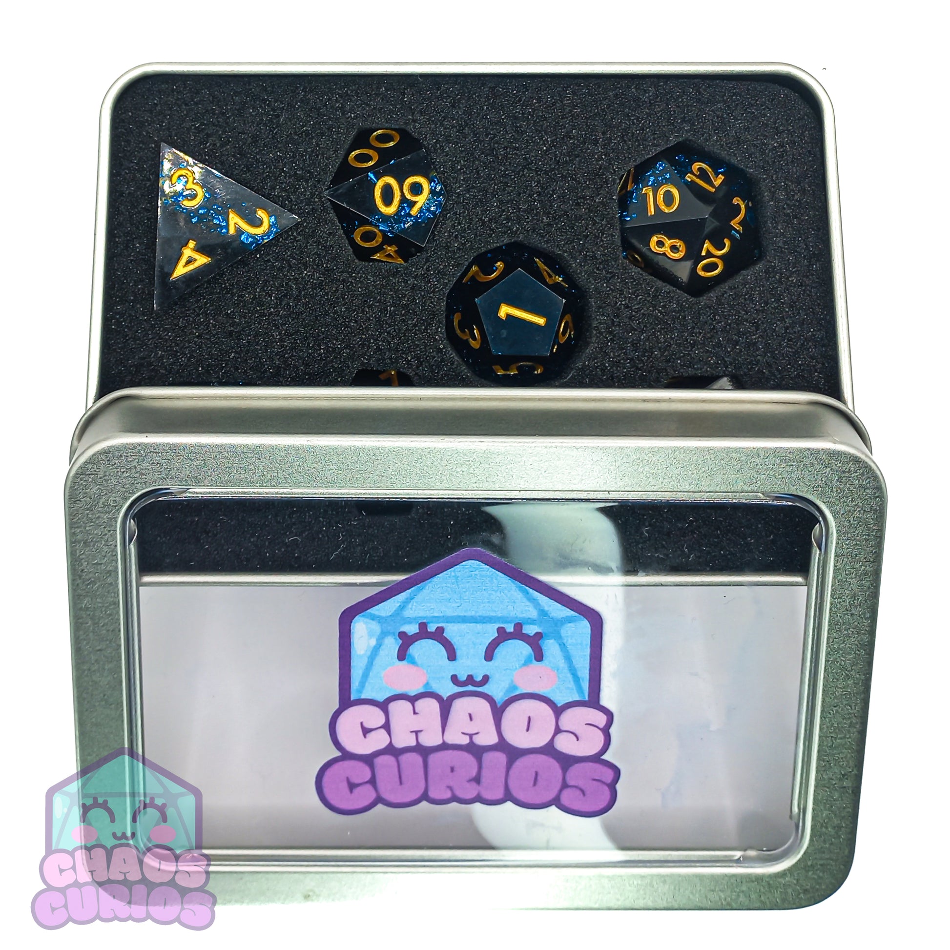 Blue Black Fault Line 7-piece Sharp Edged Resin Dice Set