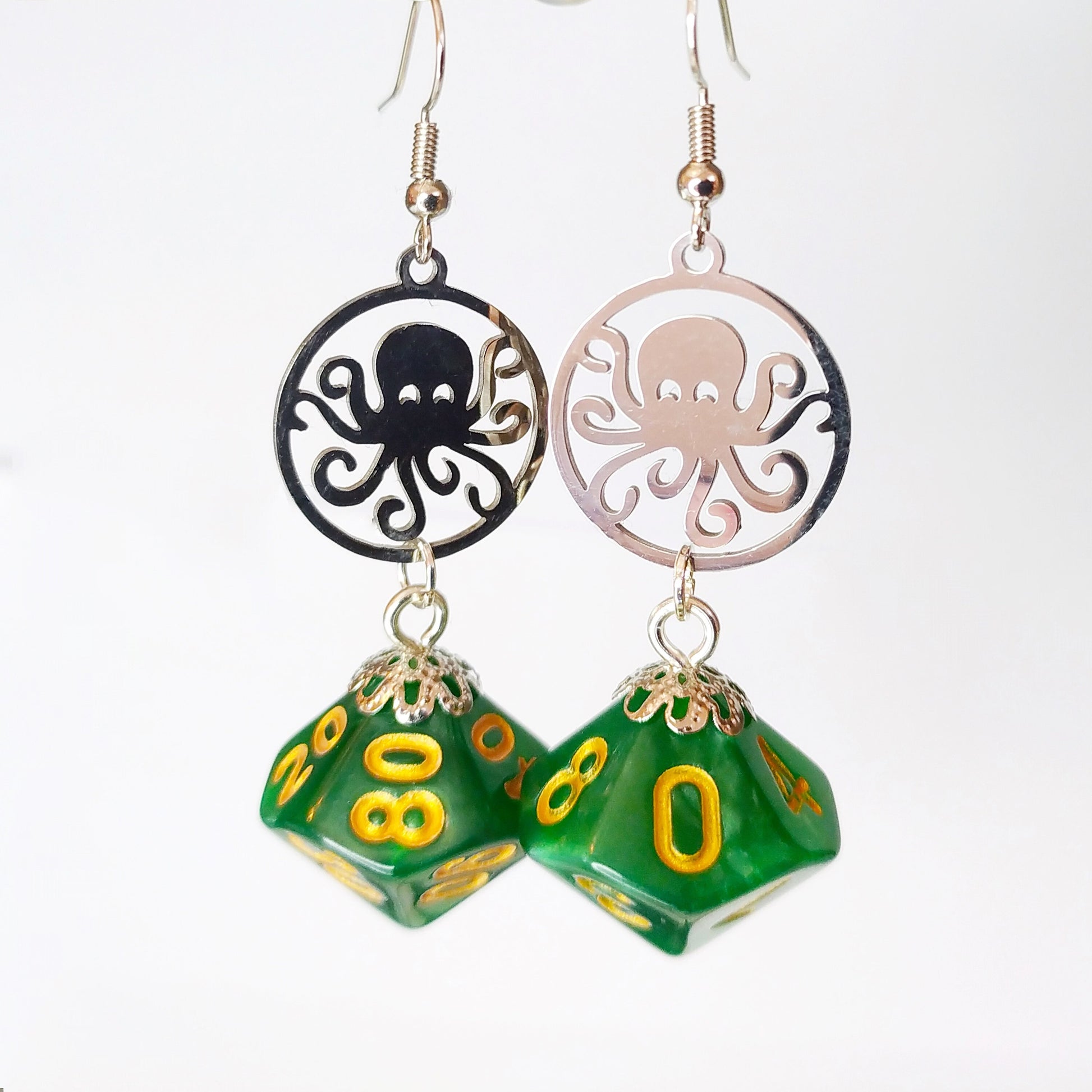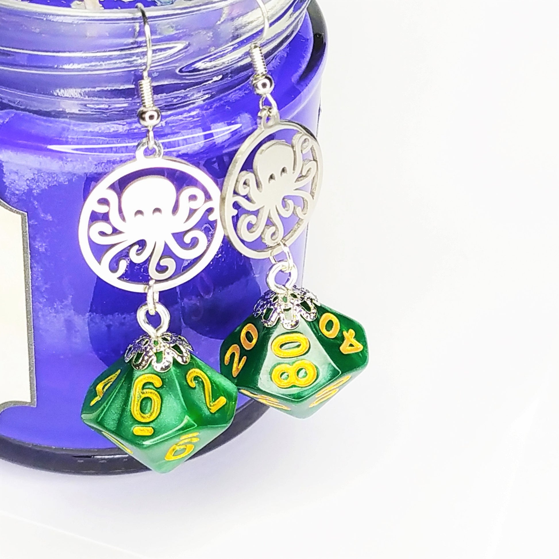 Call of Cthulhu D10/% Earrings, Silver Finishing