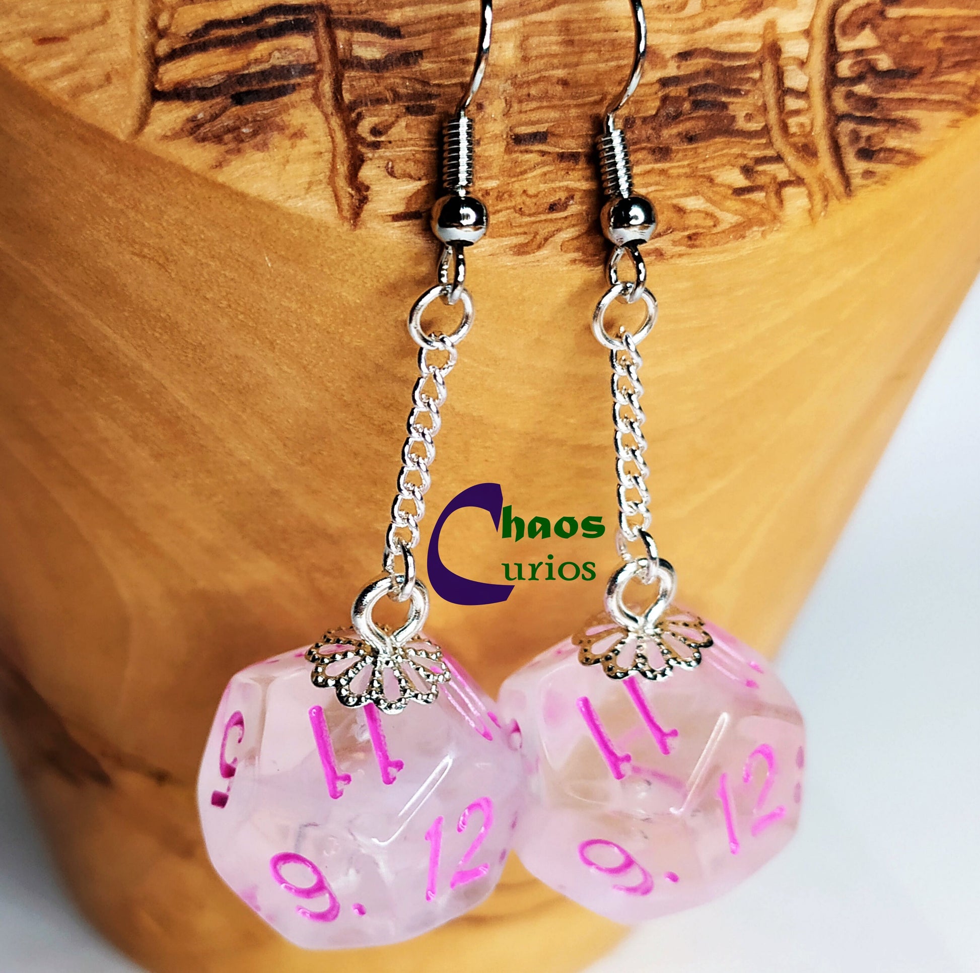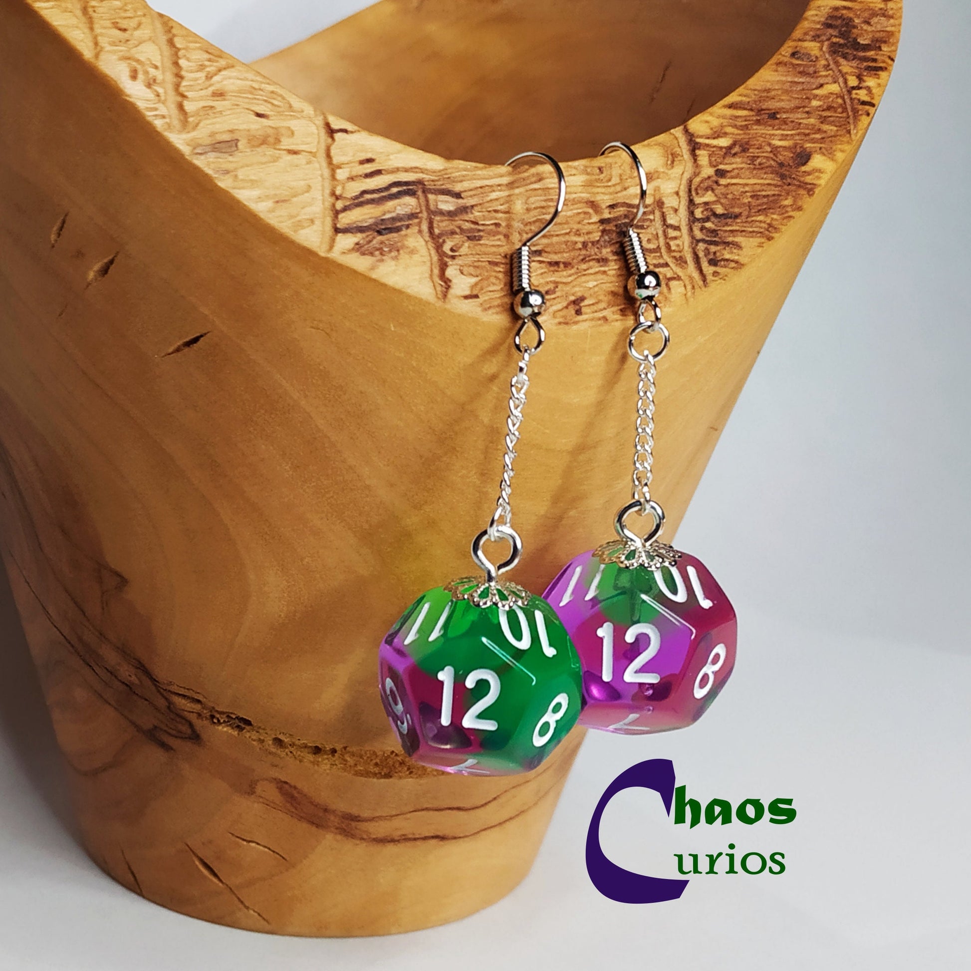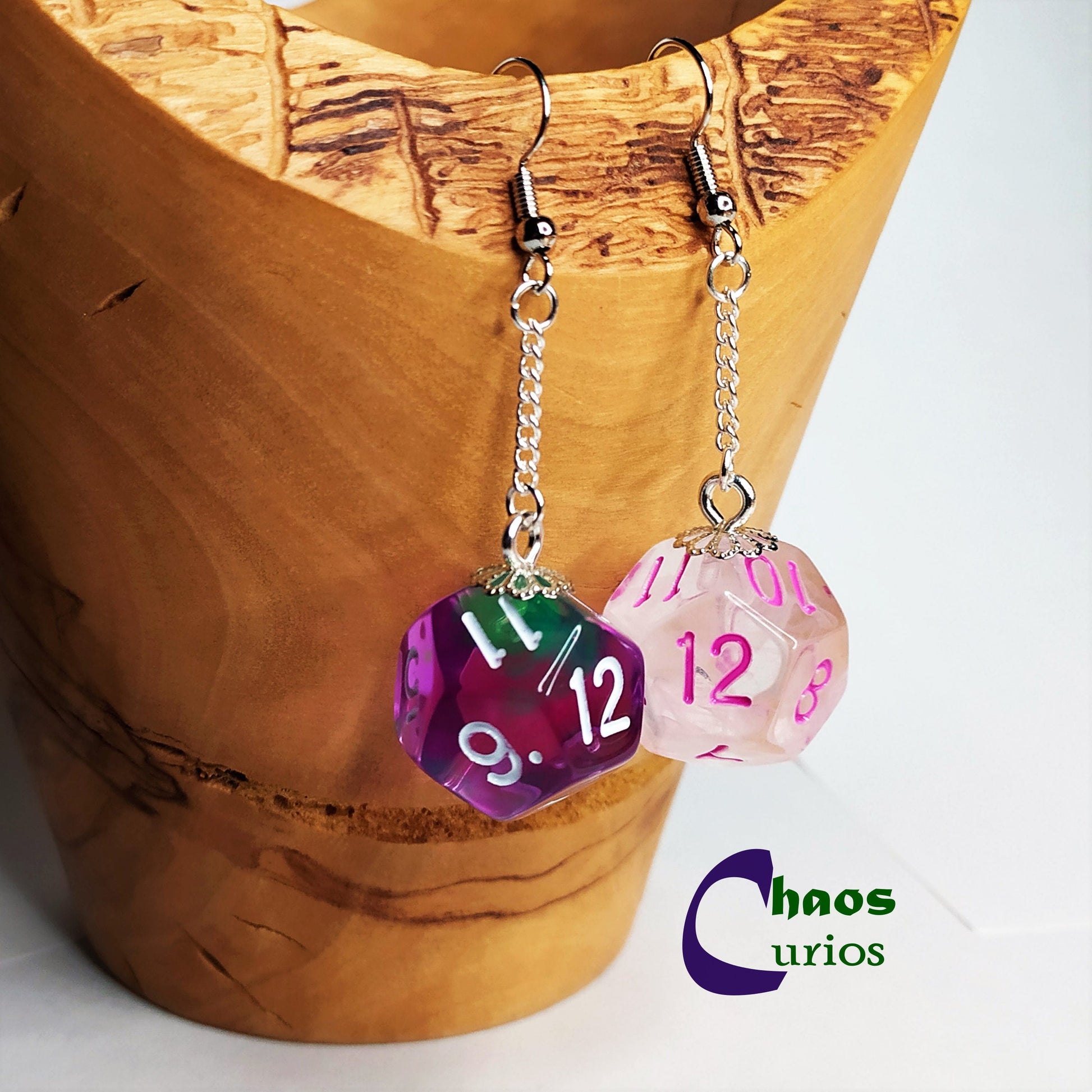 Product Information: These earrings feature 2 D12 dice from an array of colours finished with silver hypoallergenic hooks. This is a handmade item and I make these up to order. I also accept custom orders, please contact me.