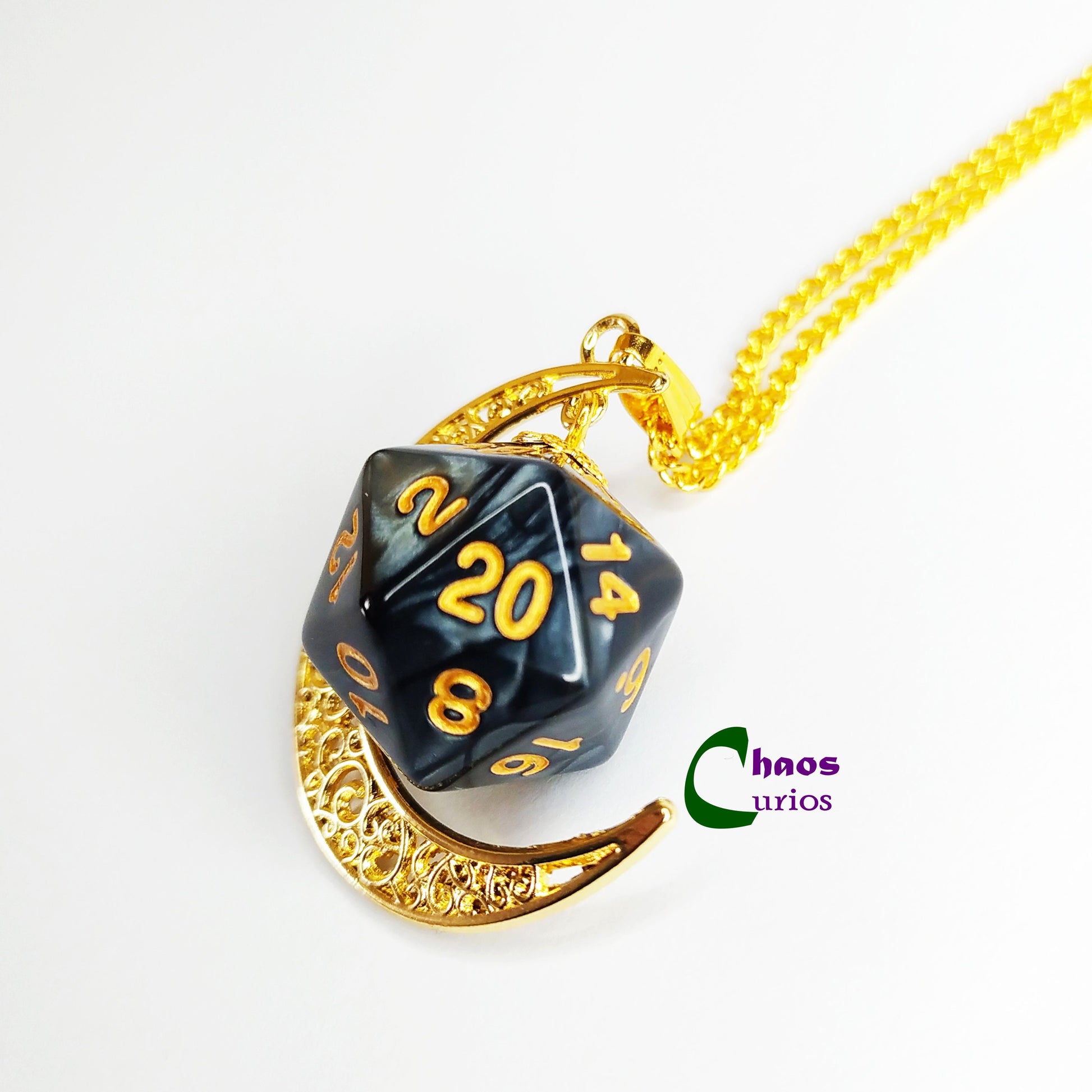 Who's the Dame of the Dungeon? The Belle of the Battleground? The Fanciest Fellow in all of Faerun? Its you! Yes, you deserve this D20 Crescent Moon necklace. Show off your style and be the most dapper dude at the table (Real or Virtual!). Great for gifts, secret santa and stocking fillers. Treat Yo Self, Treat Yo Players or Treat Yo DM!