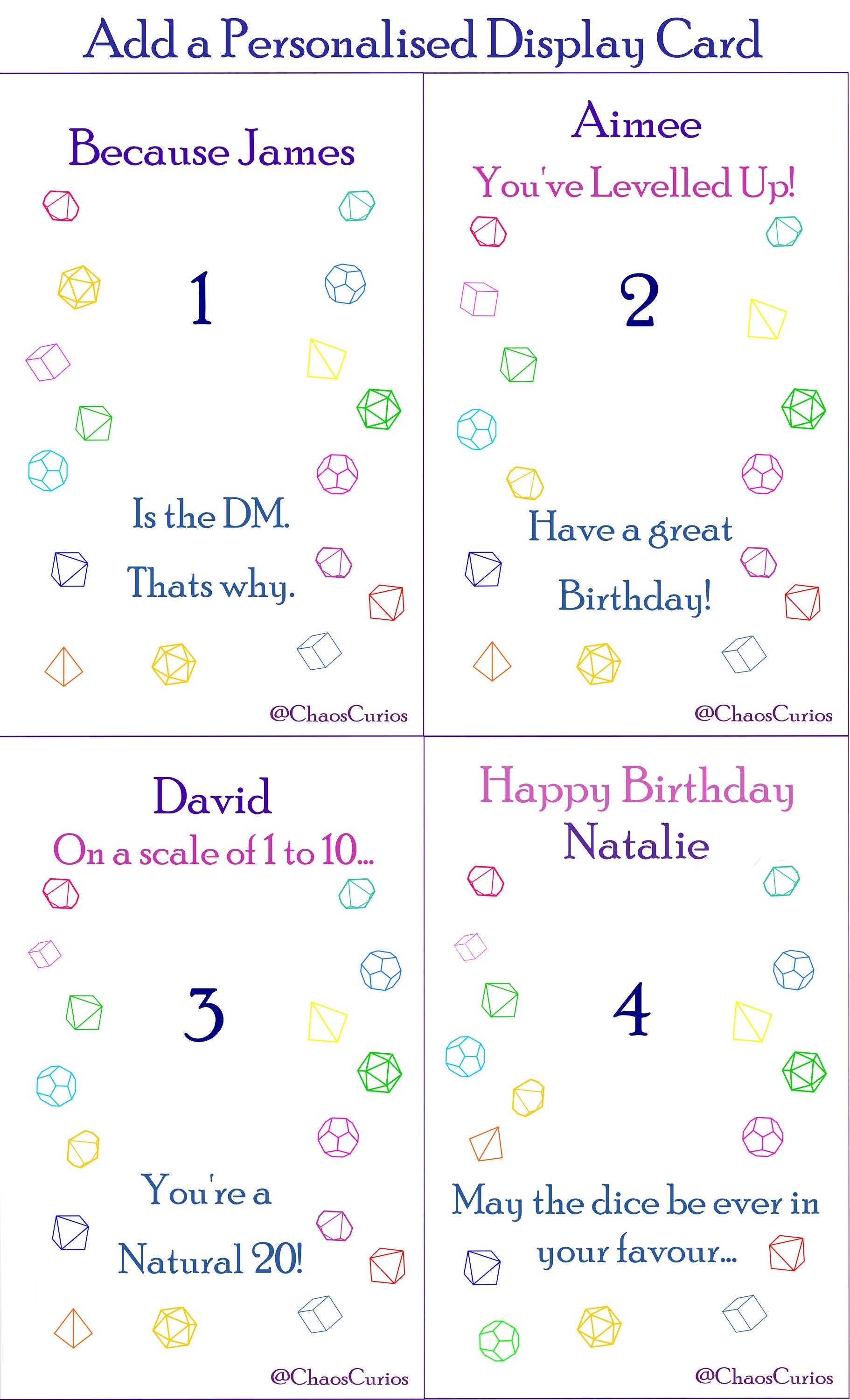 Dice: These dice feature ethereal swirls and each die is unique - much like every character!