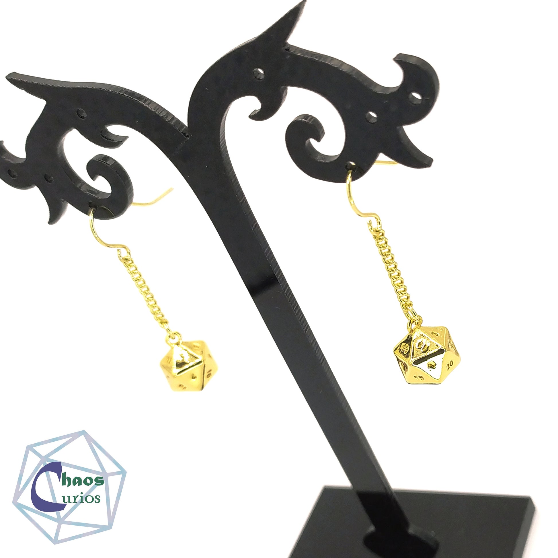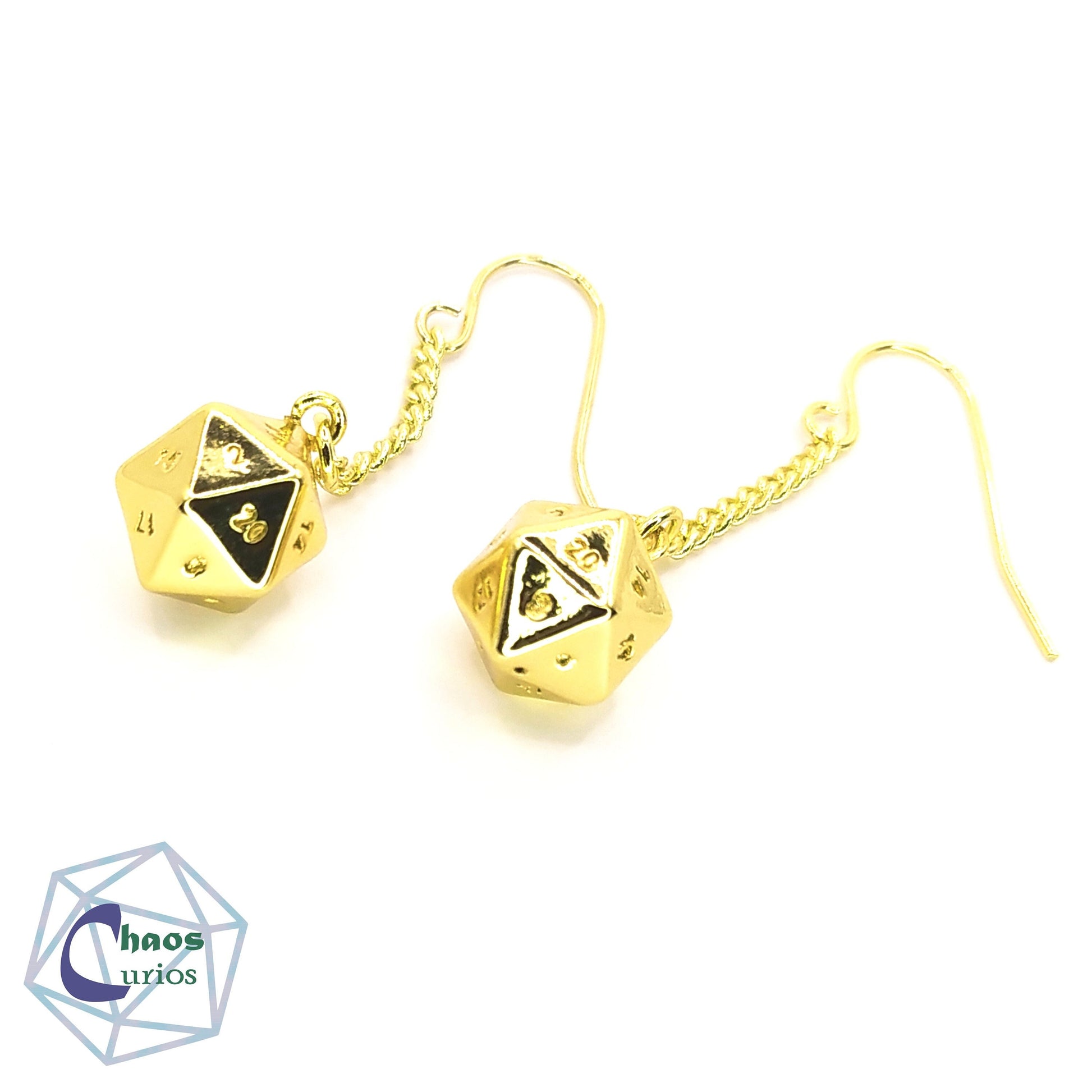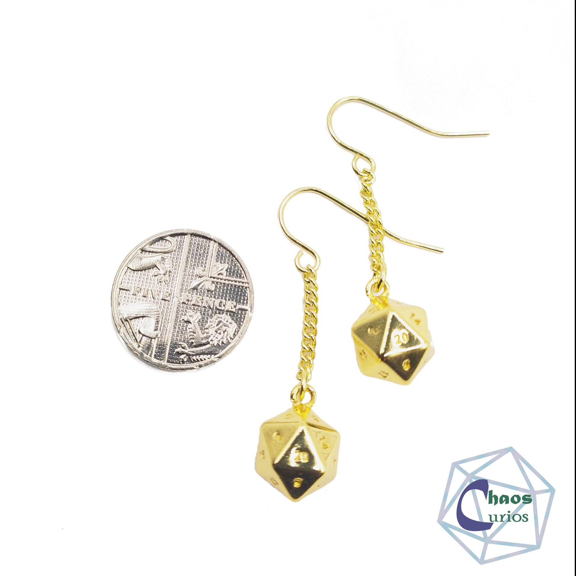 D20 Dice Earrings, 18ct Gold Plated, Mini Size DnD Dice, Dungeons and Dragons