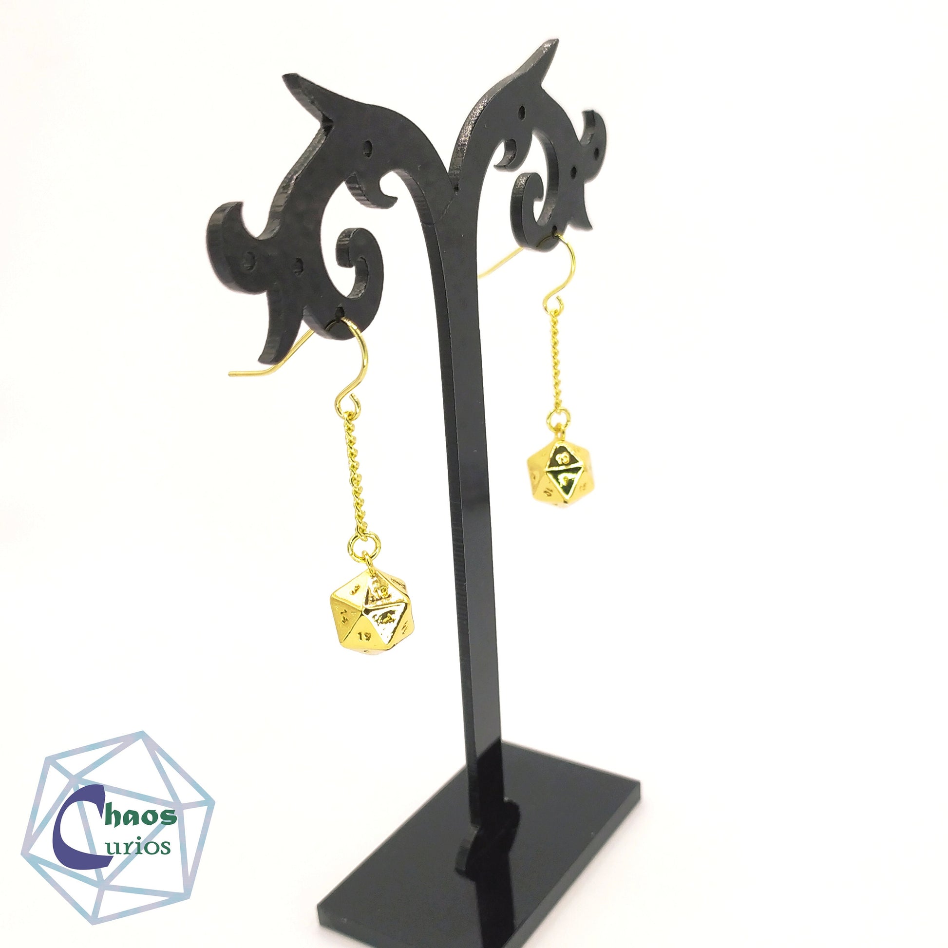 Stylish and Elegant, yet distinctly Dungeons and Dragons, these 18ct Gold Plated D20 earrings subtly show off your RPG passion. A great gift for those RPGers in your life, these earrings are presented in a black velvet pouch ready to be gifted.