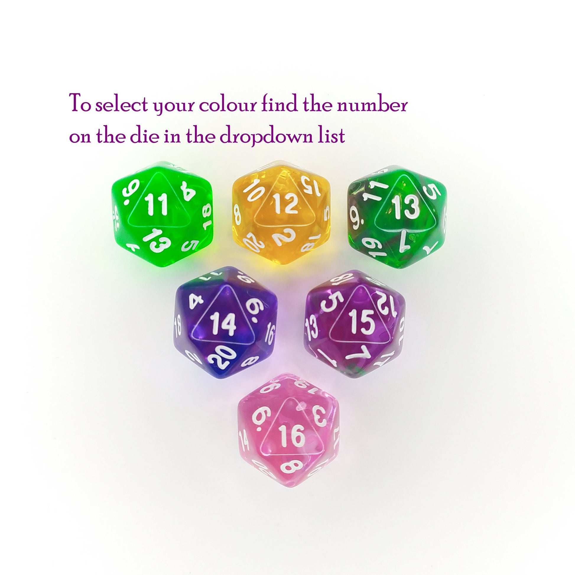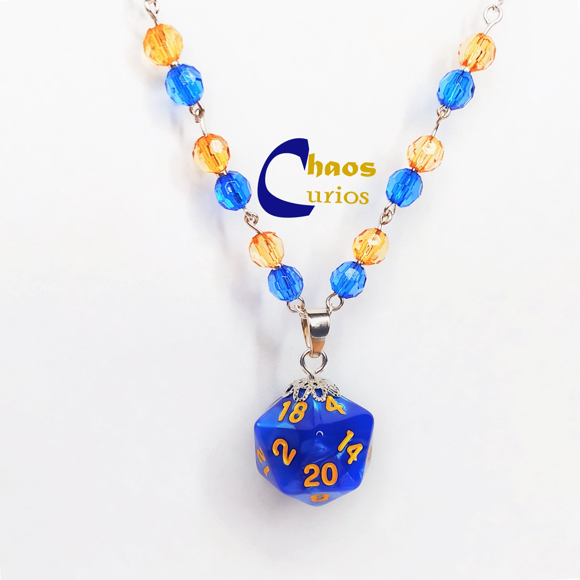 Product Information: This necklace features a D20 die from an array of colours and a partially beaded chain made from complementary coloured beads (these will typically match the die and numbering colours - however there is a pic of the available bead choices which we can use to create your unique necklace, just use the personalisation box to let me know). This is a handmade item and I make these up to order. I also accept custom orders, please contact me.