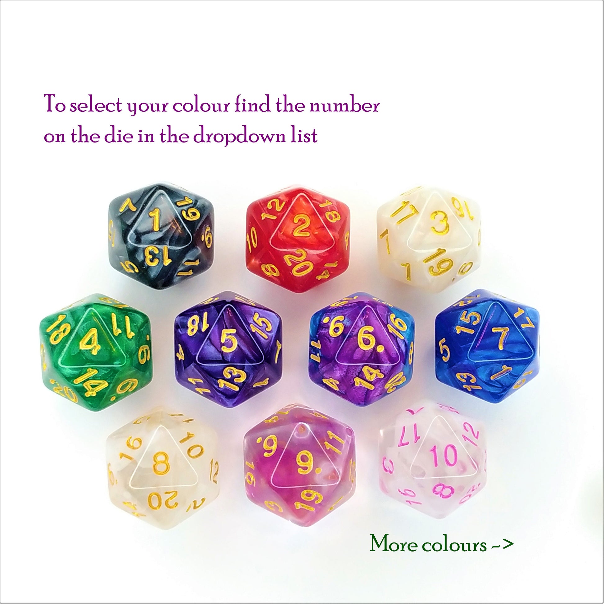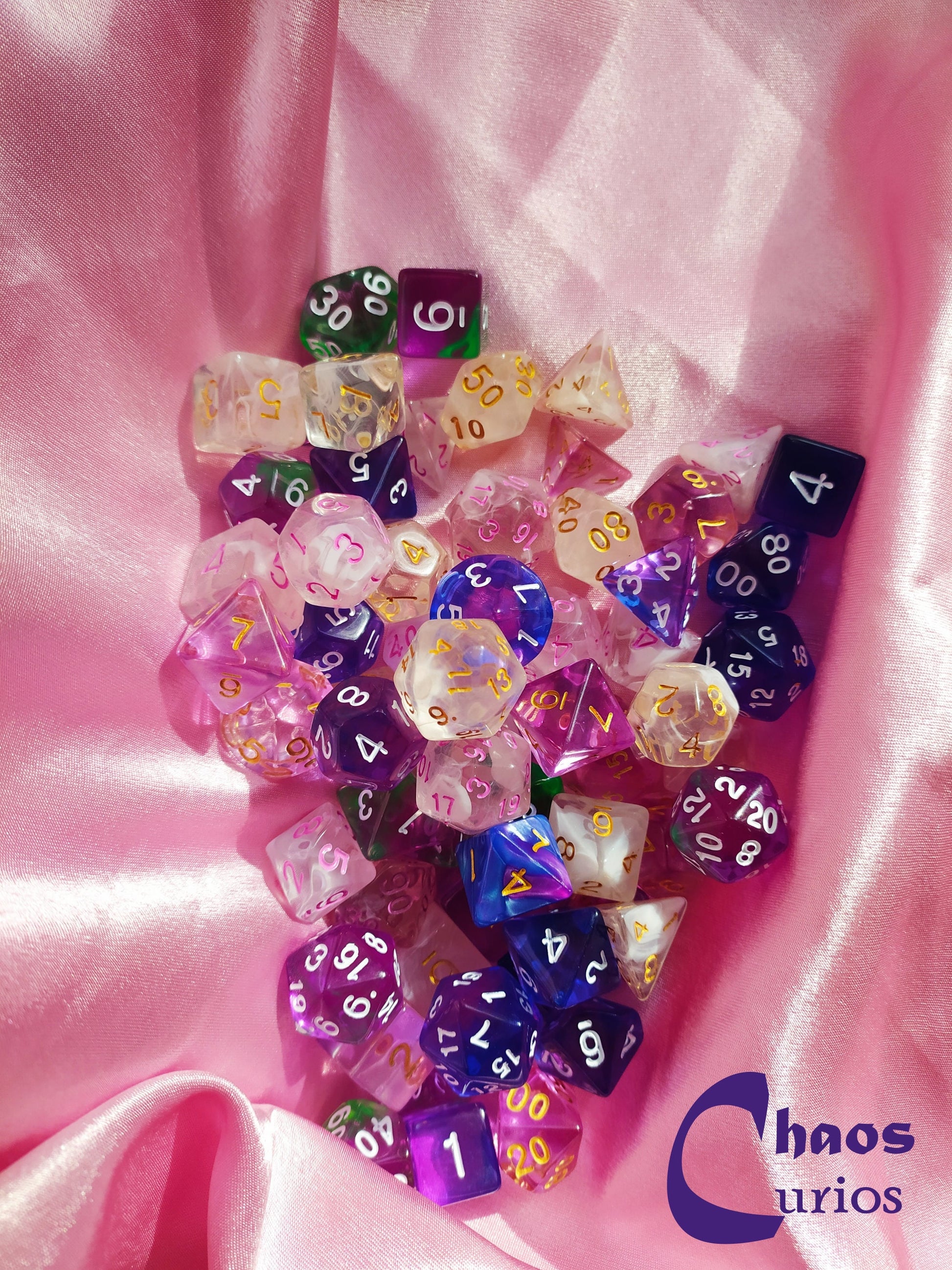 Dice: These translucent dice feature ethereal swirls and each die is unique - much like every character!