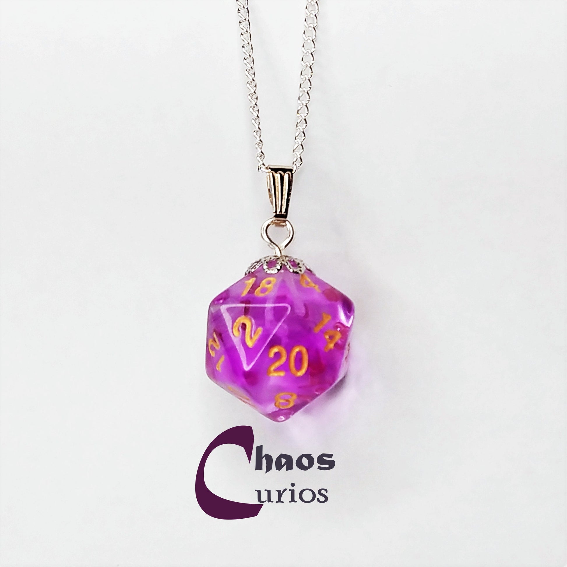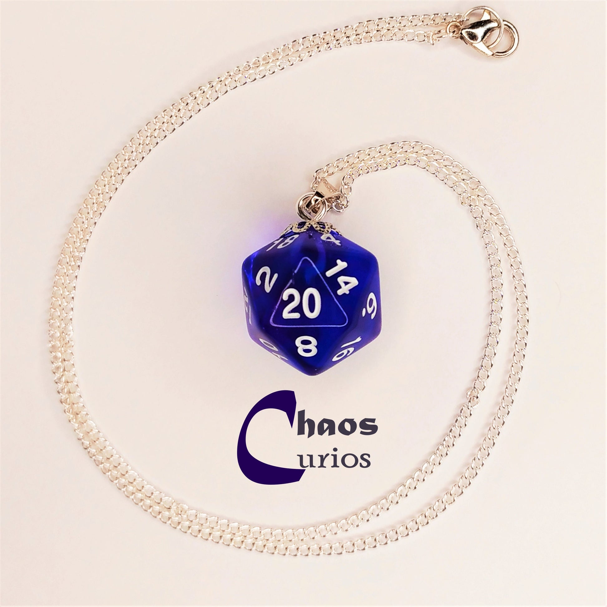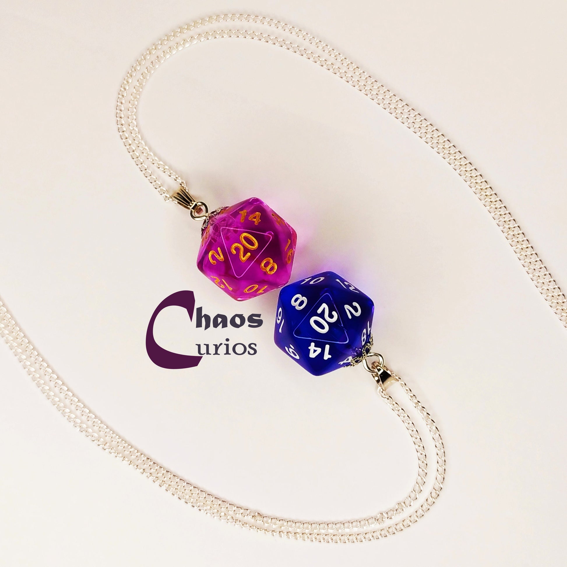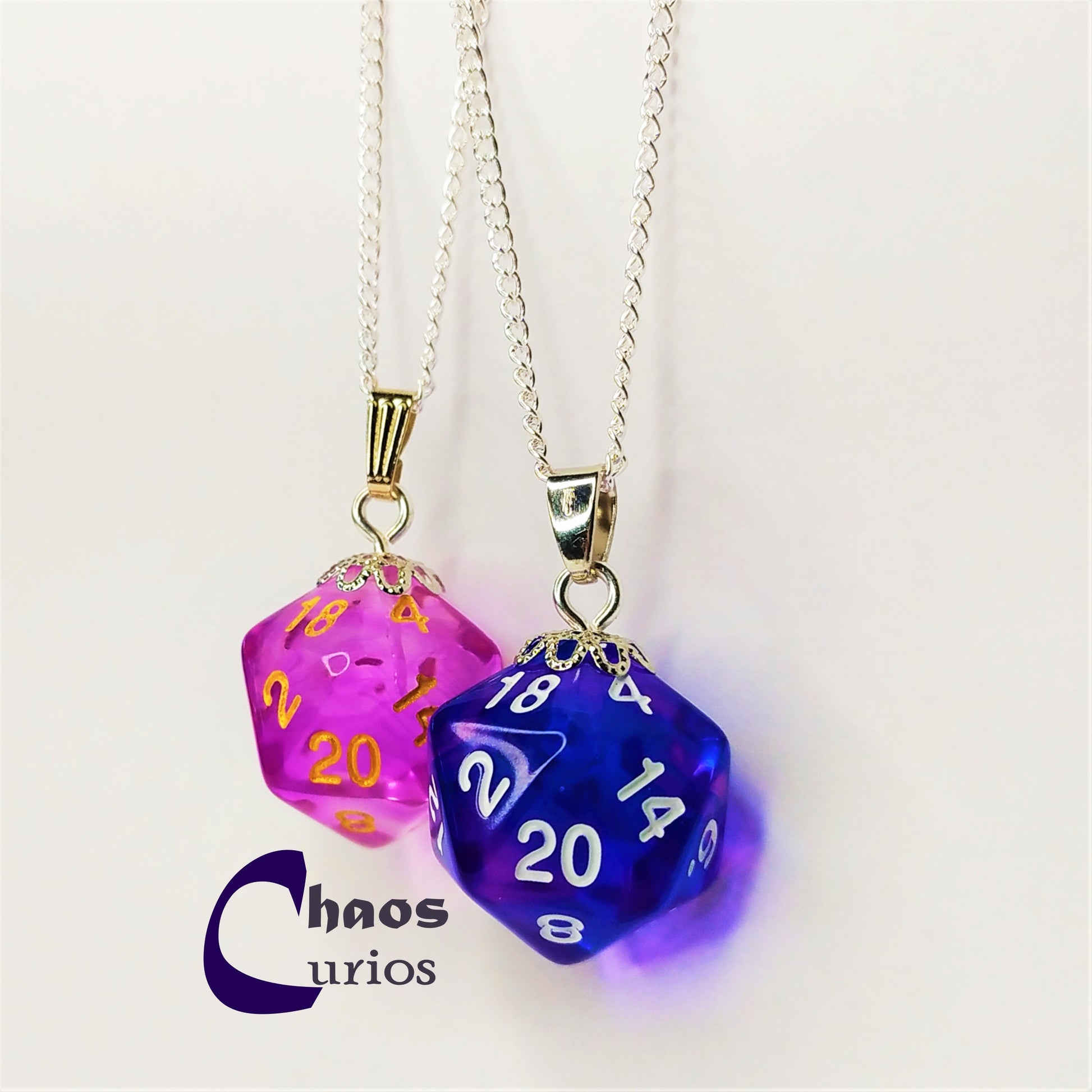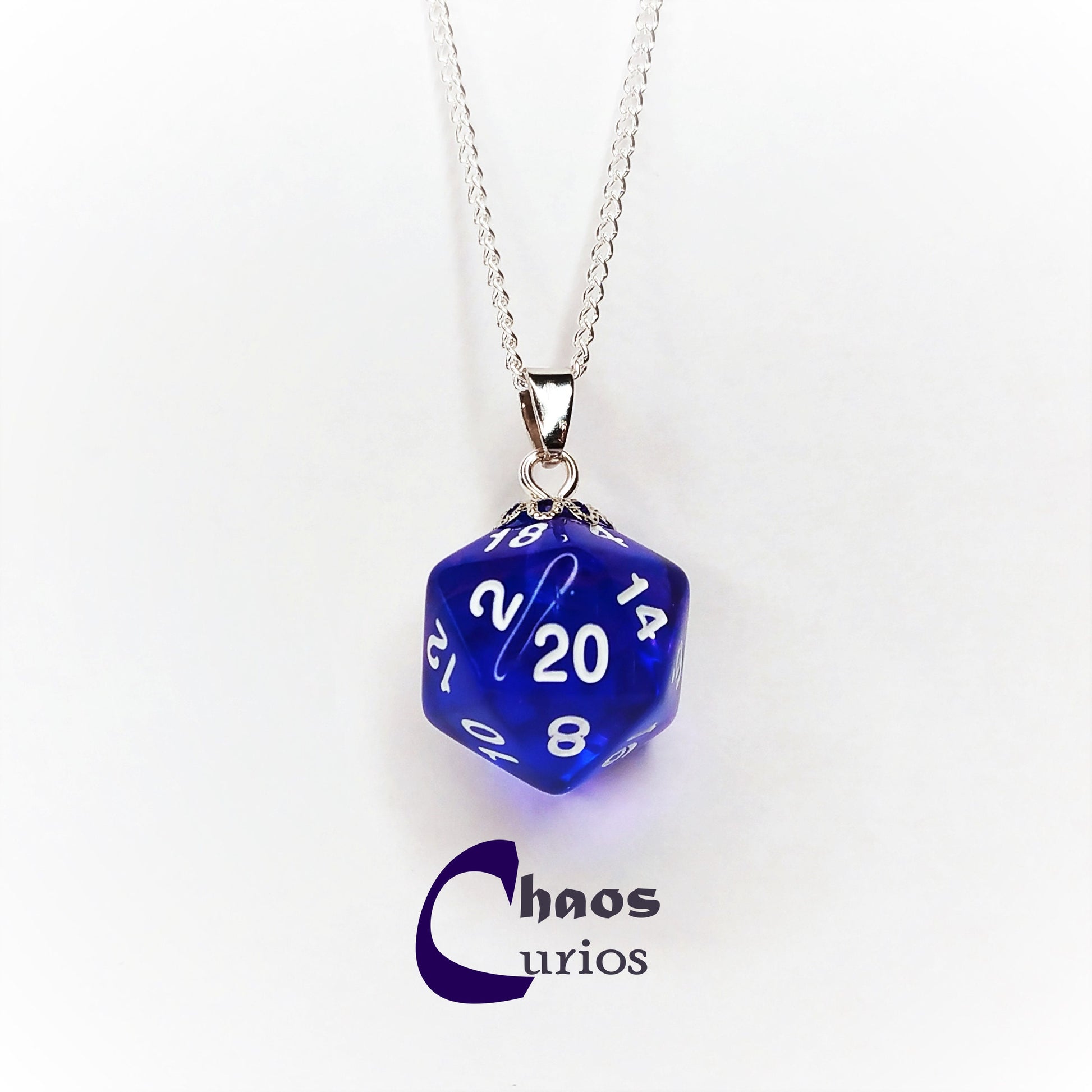 Product Information: This necklace features a D20 die from an array of colours hung on a 20 inch chain. This is a handmade item and I make these up to order. I also accept custom orders, please contact me.