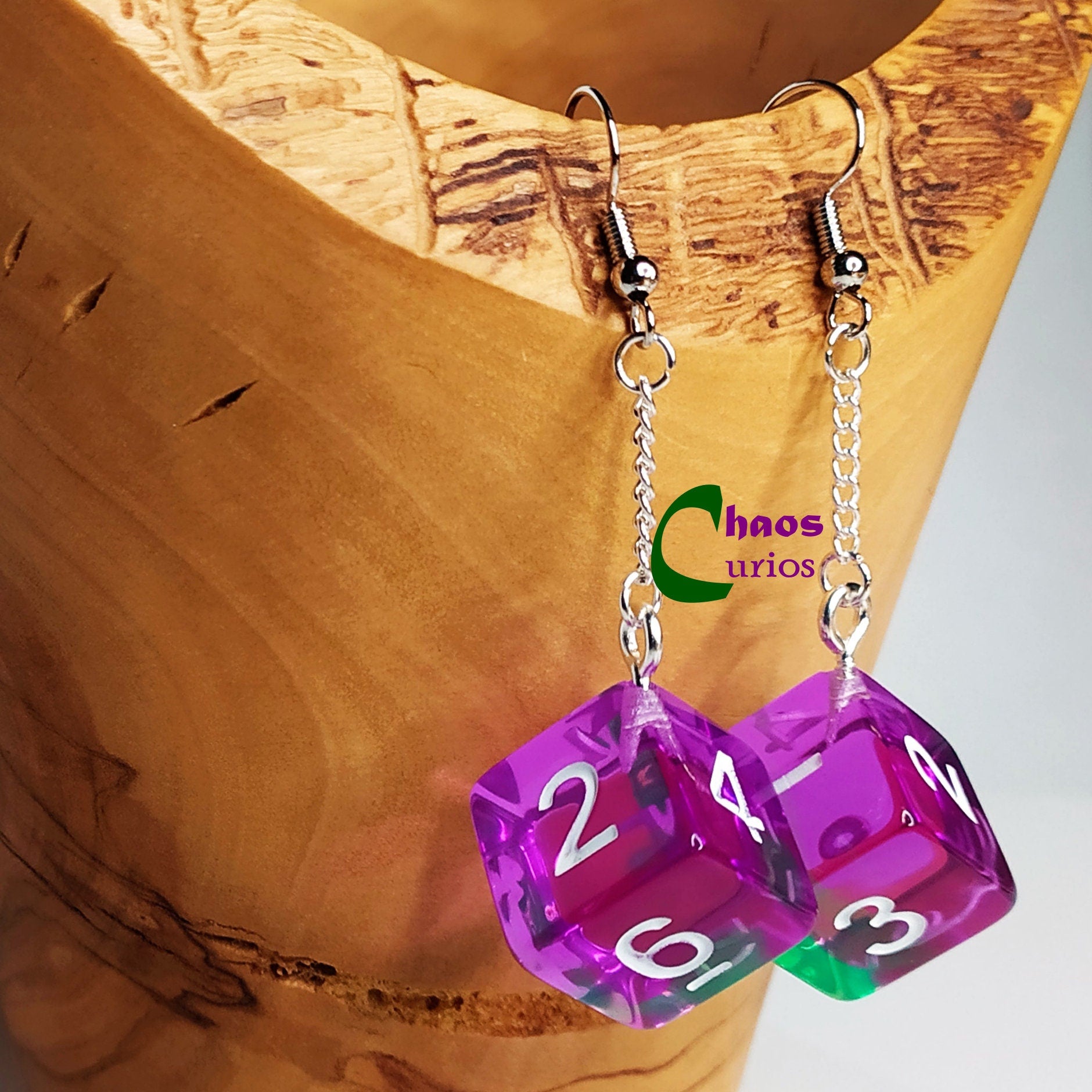D6 Dice Earrings, Sneak Attack, Bardic Inspiration, Hex, Ice Knife, Flame Blade