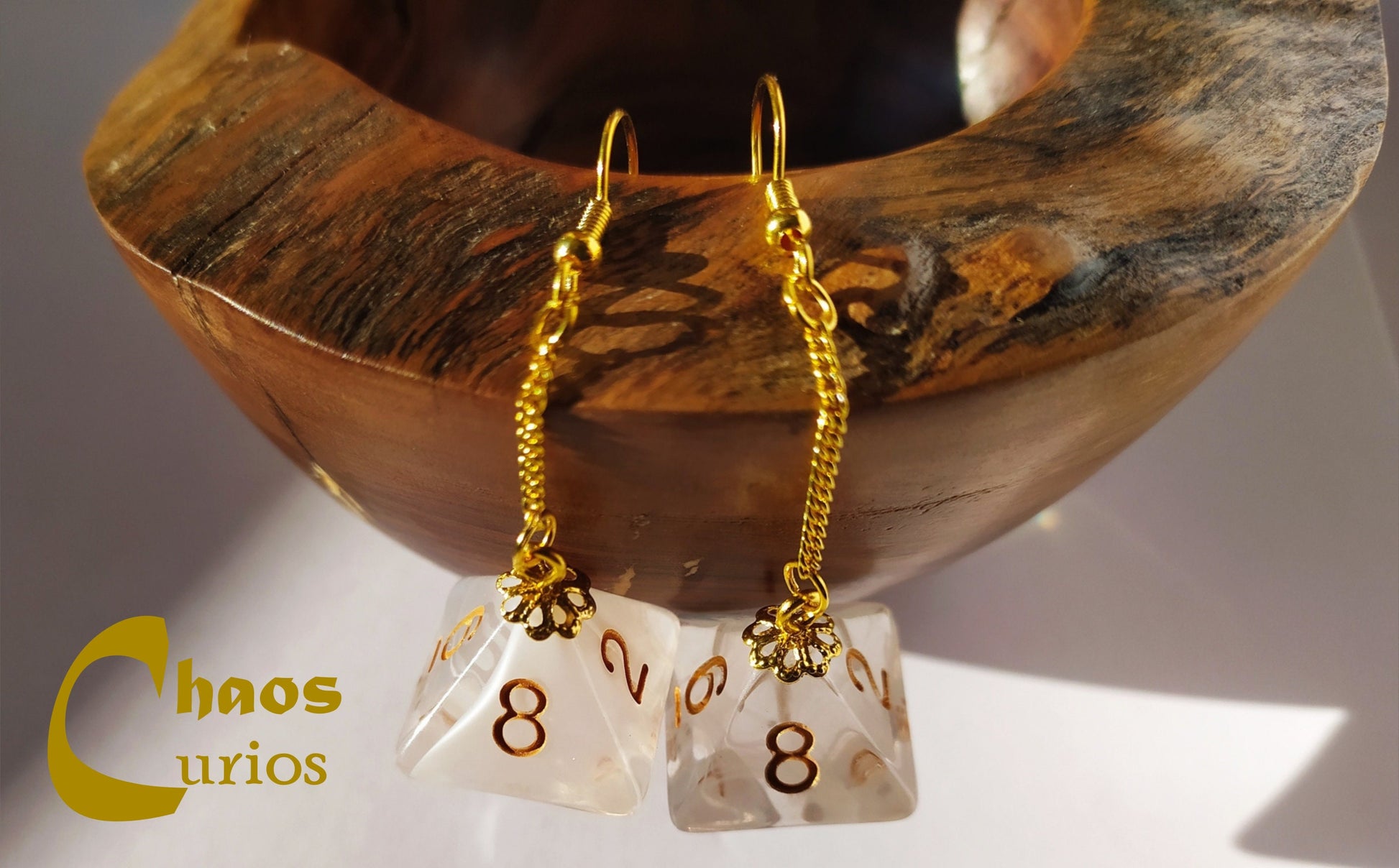 D8 Dice Earrings, Gold Finishing, Dnd Swag