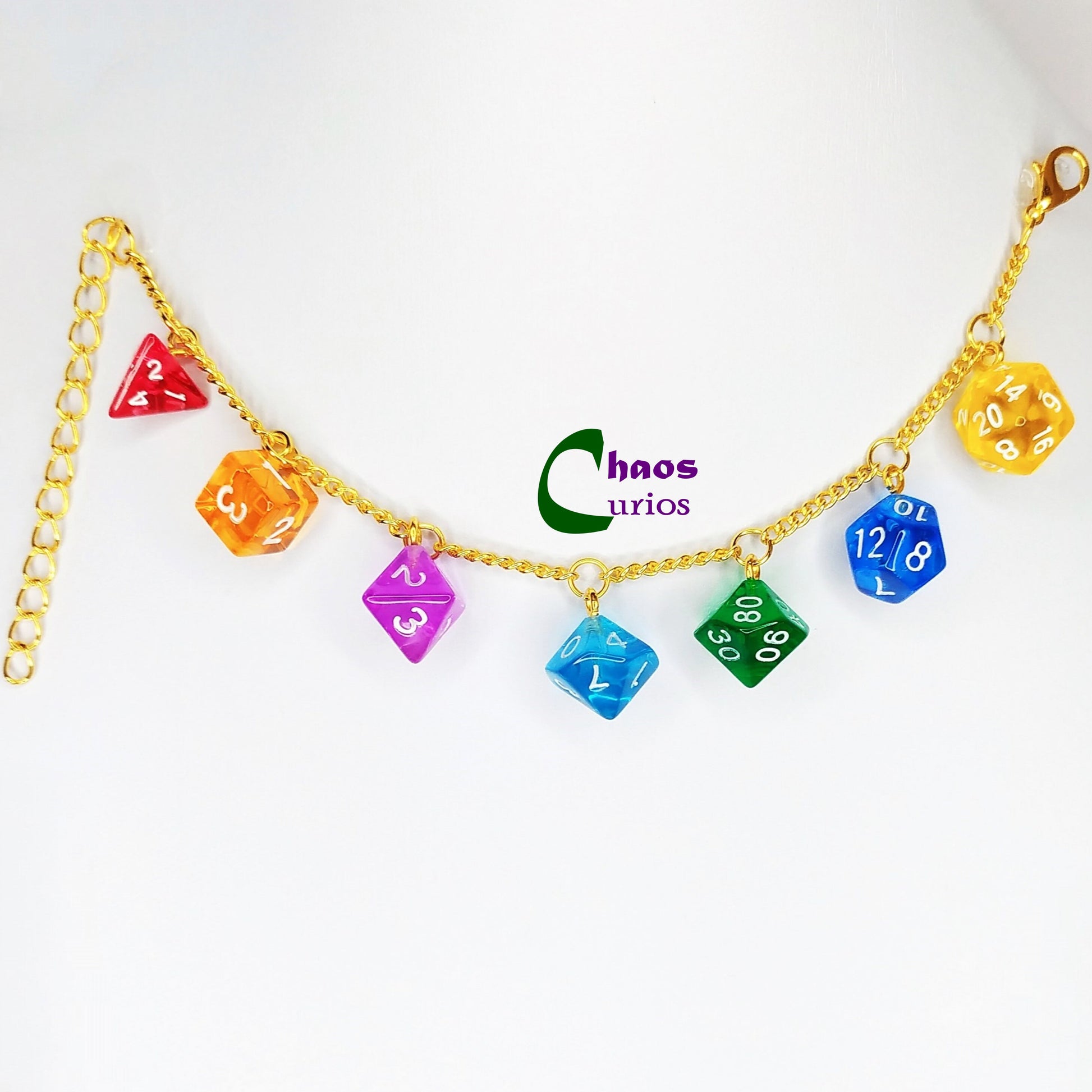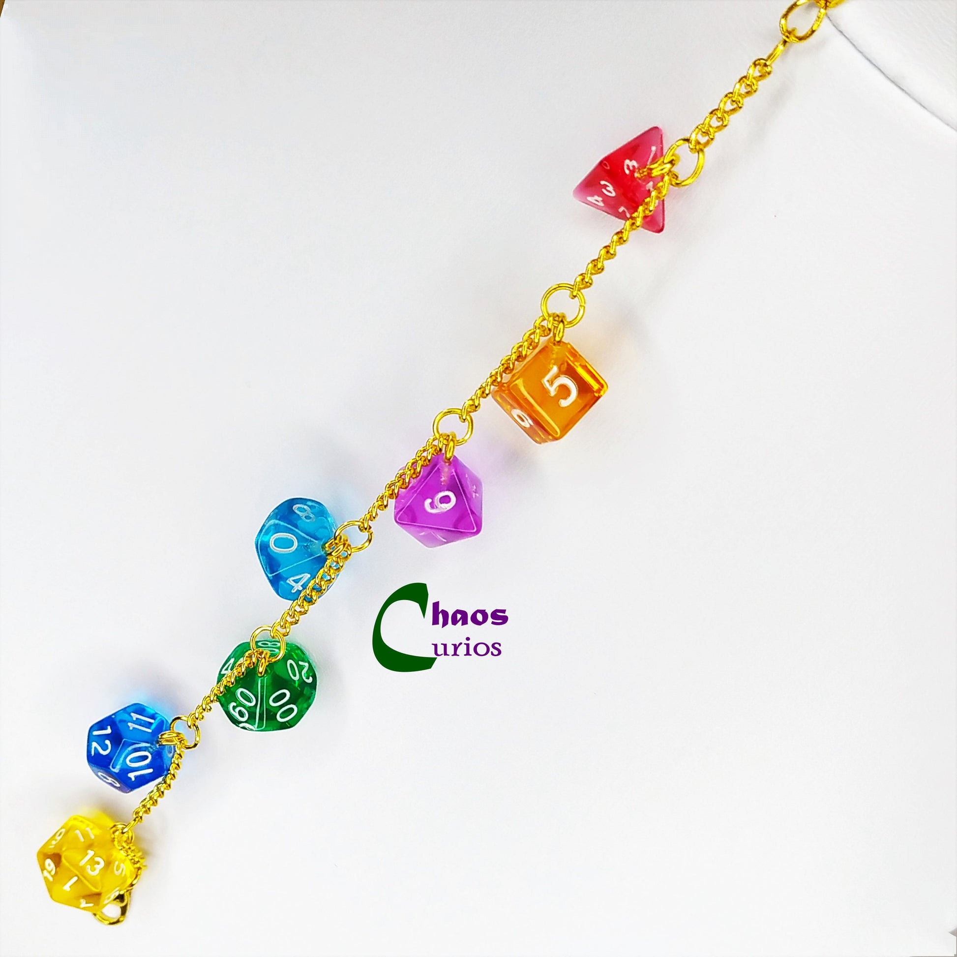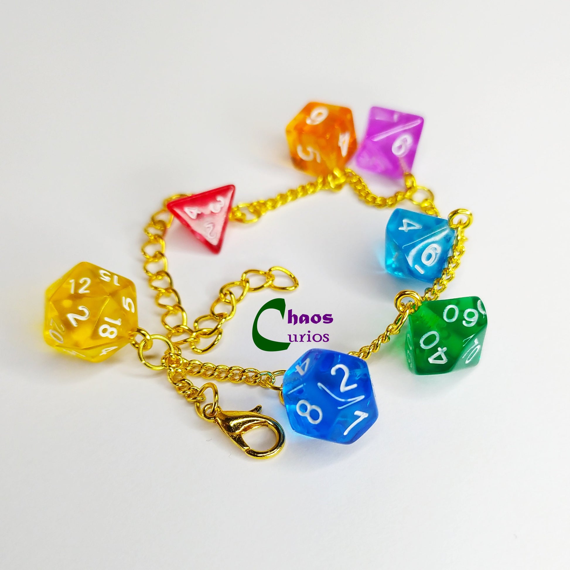 Who's the Dame of the Dungeon? The Belle of the Battleground? The Fanciest Fellow in all of Faerun? Its you! Yes, you deserve this mini multicolour dnd dice bracelet.