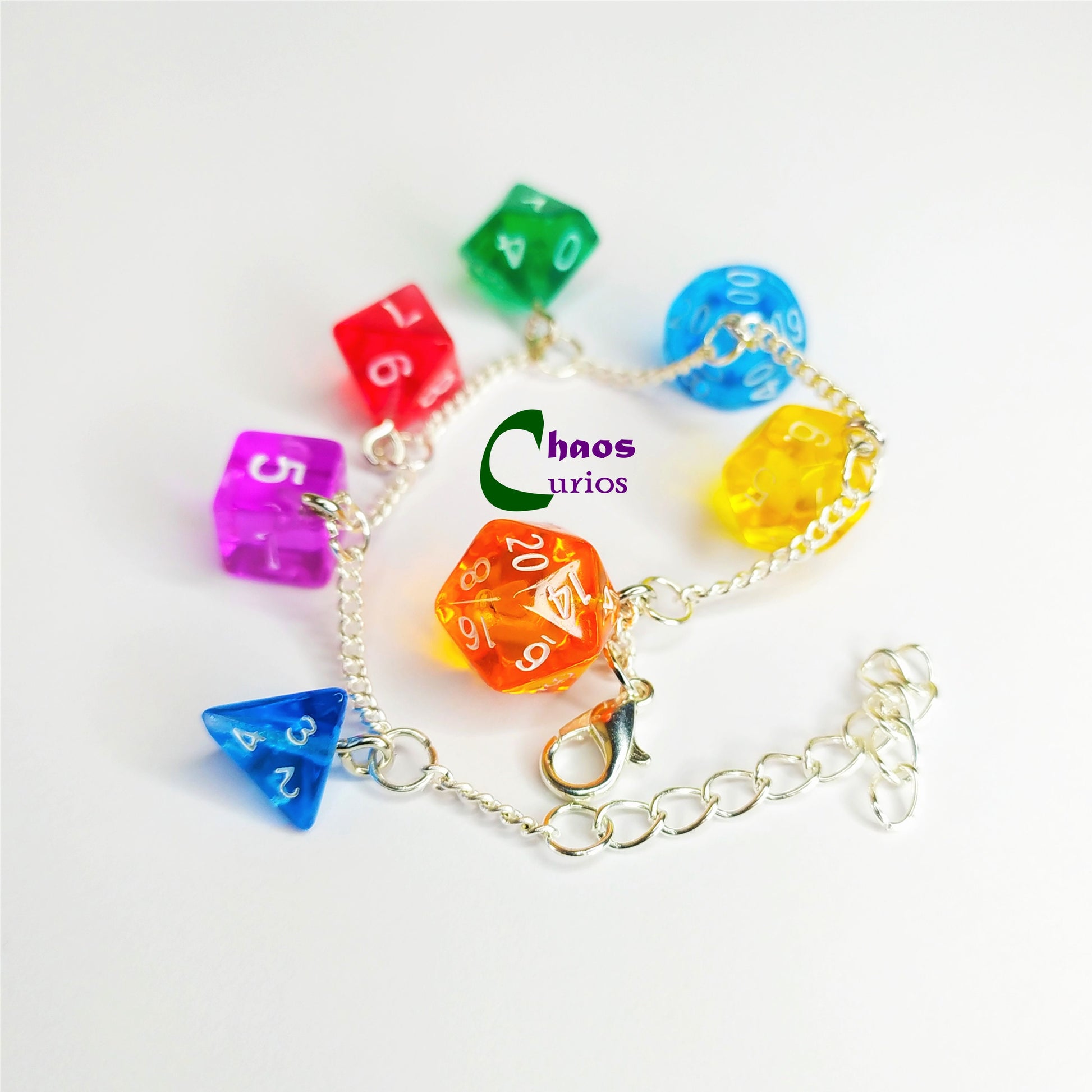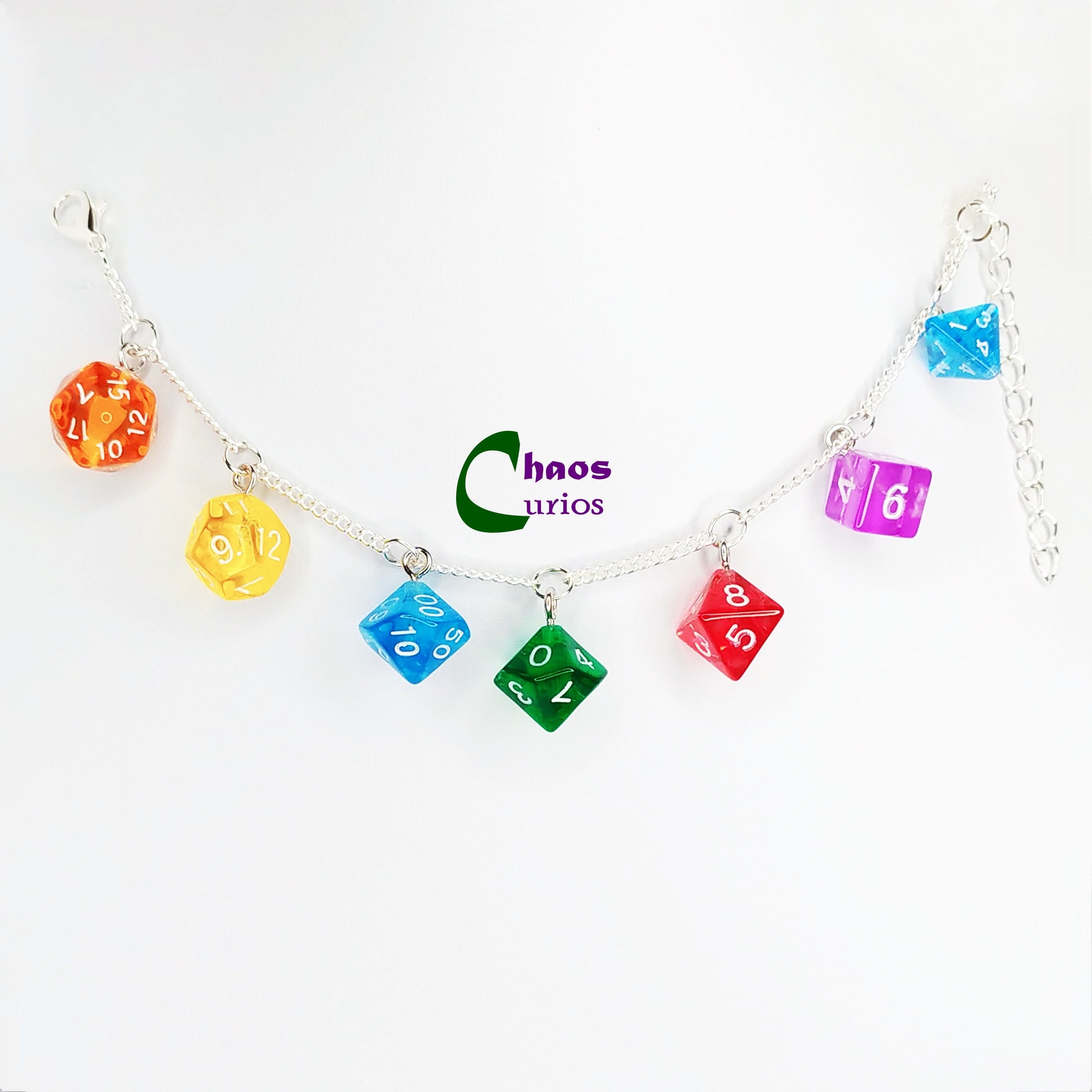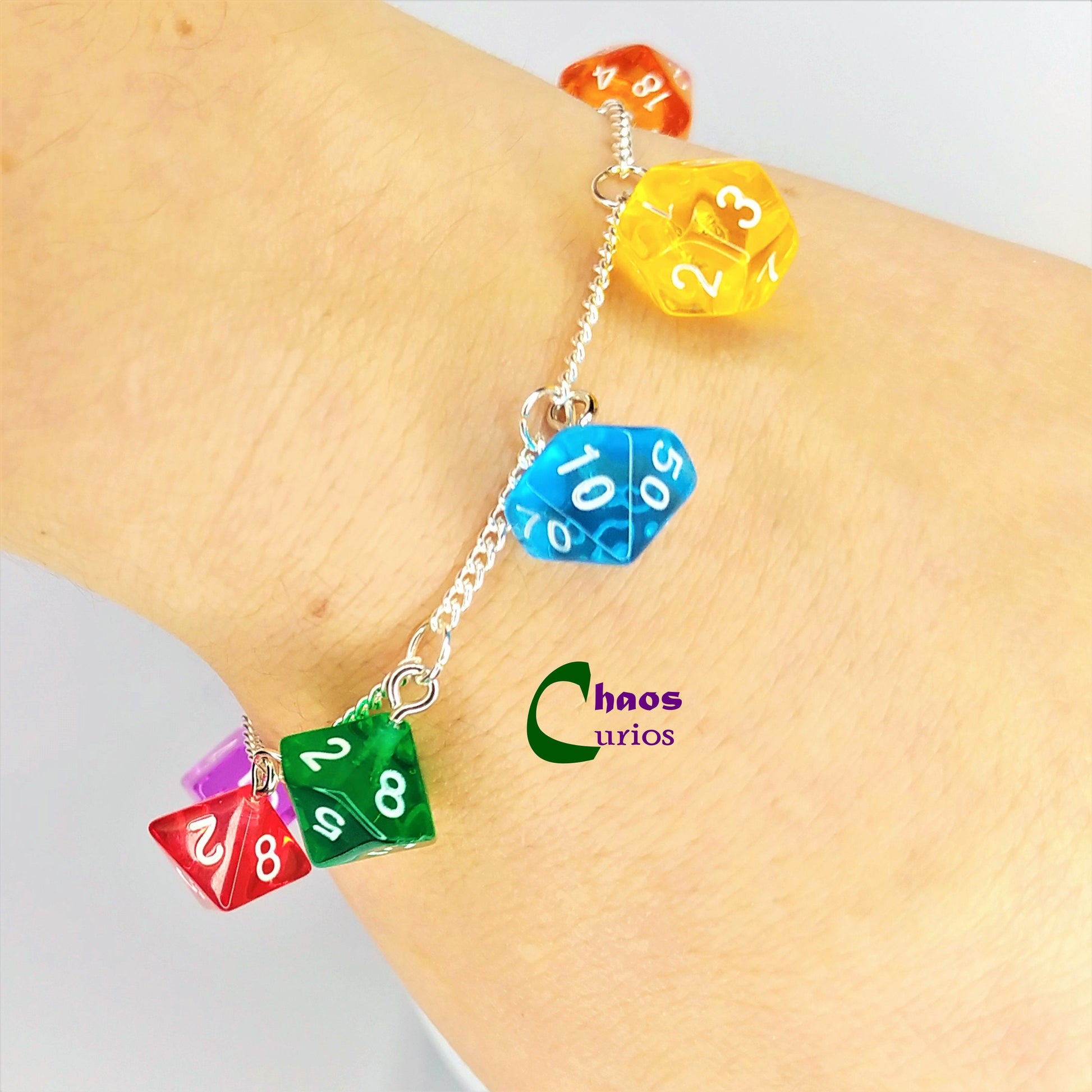 DnD Mini Dice Bracelet, Multicolour, Silver Finishing, DnD Swag