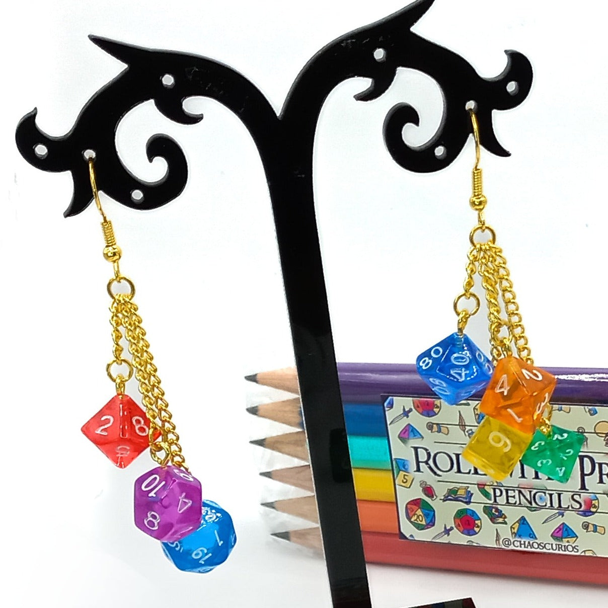 DnD Mini Dice Earrings - Multicolour - Gold Finishing - DnD Swag