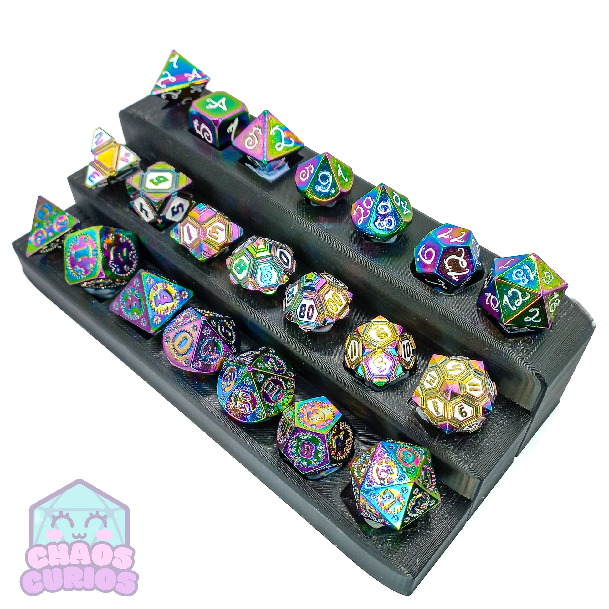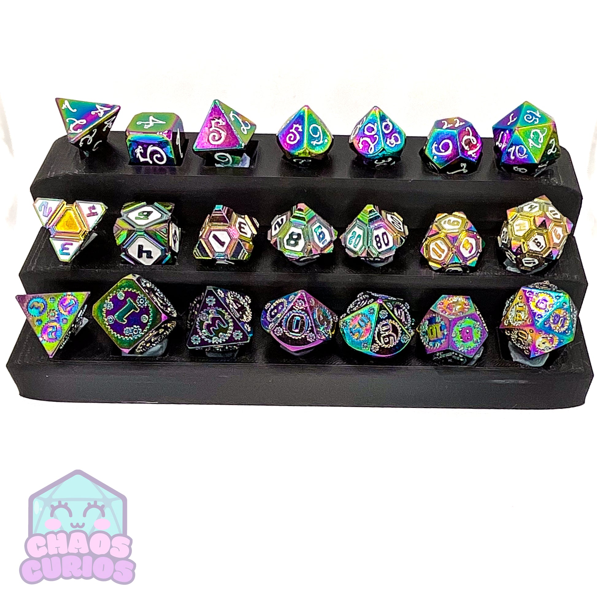 7-piece Metal dice set for use with a variety of role playing games. D20, D12, D10, D100, D8, D6 and D4.