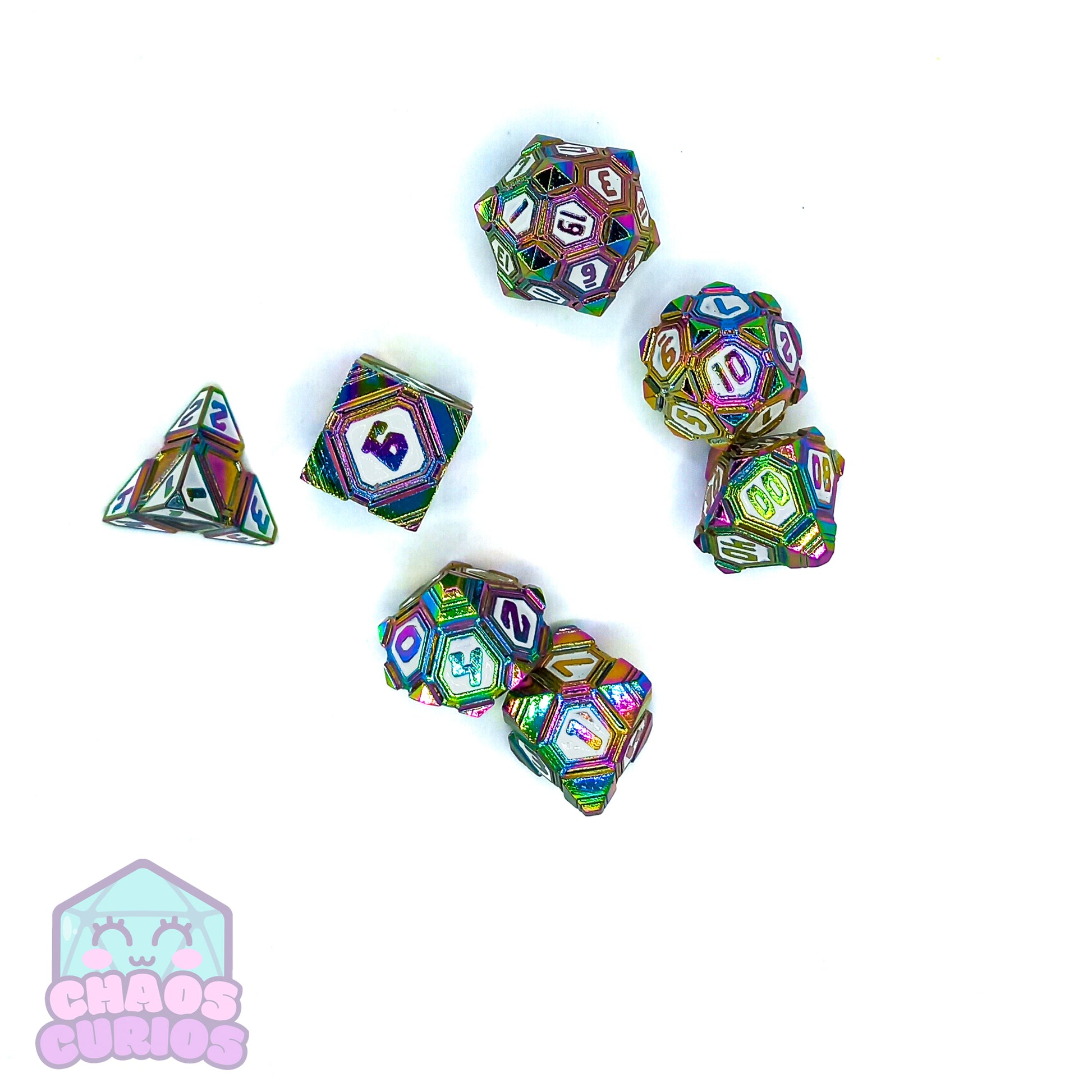 Futuristic Sci-Fi Rainbow Electroplated 7-piece Metal Dice Set