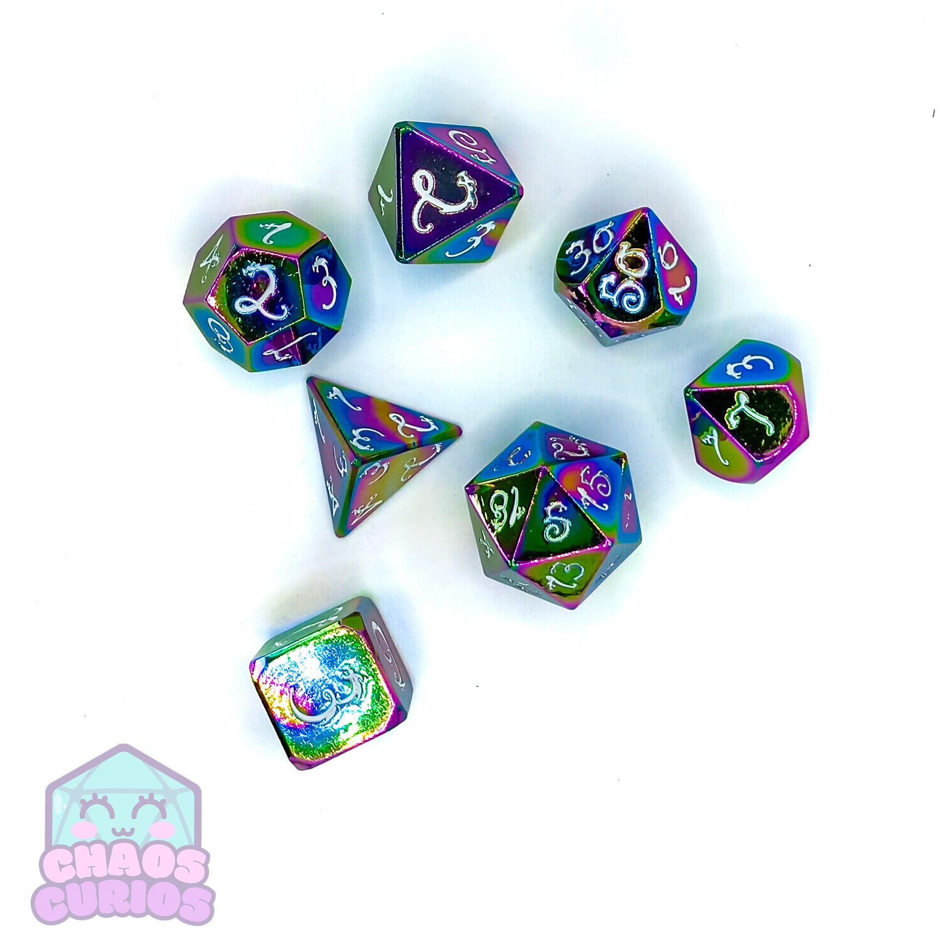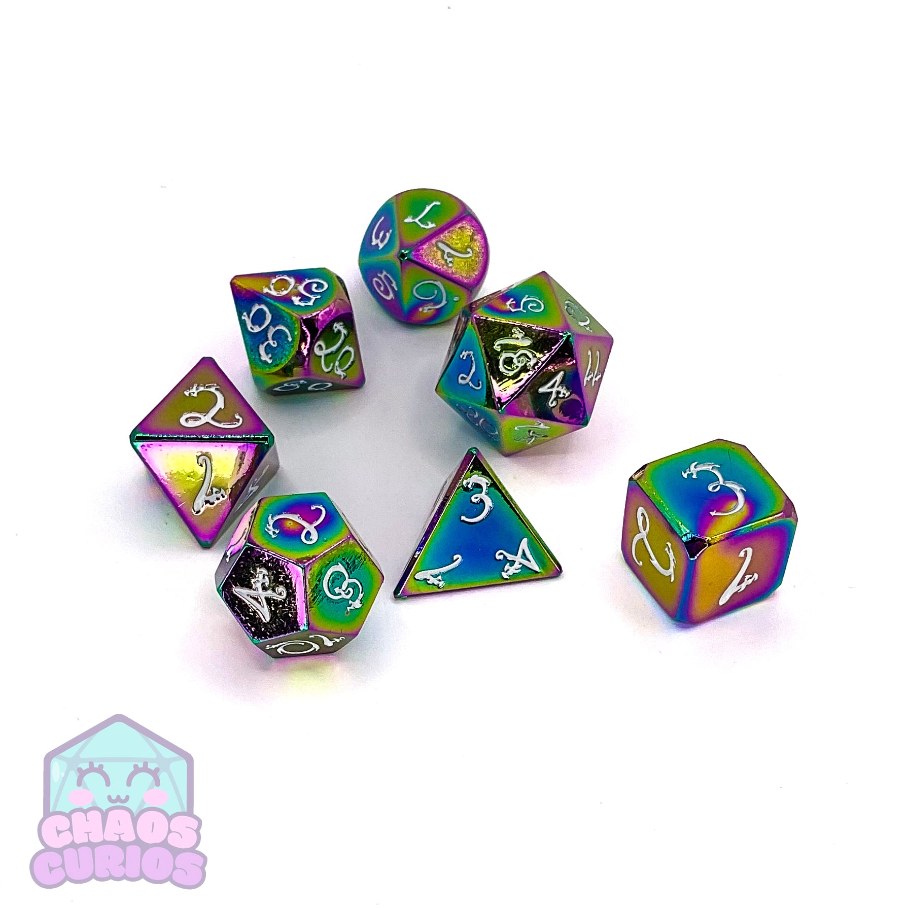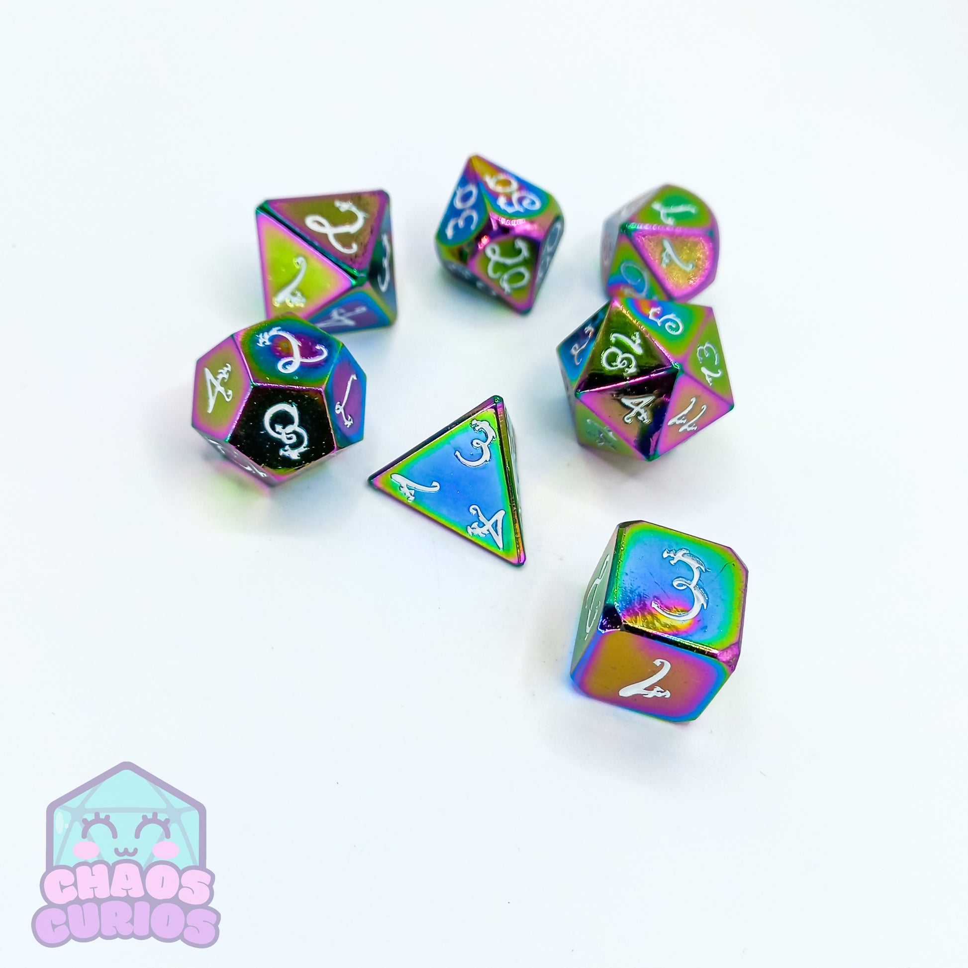 Elven Style Rainbow Electroplated 7-piece Metal Dice Set
