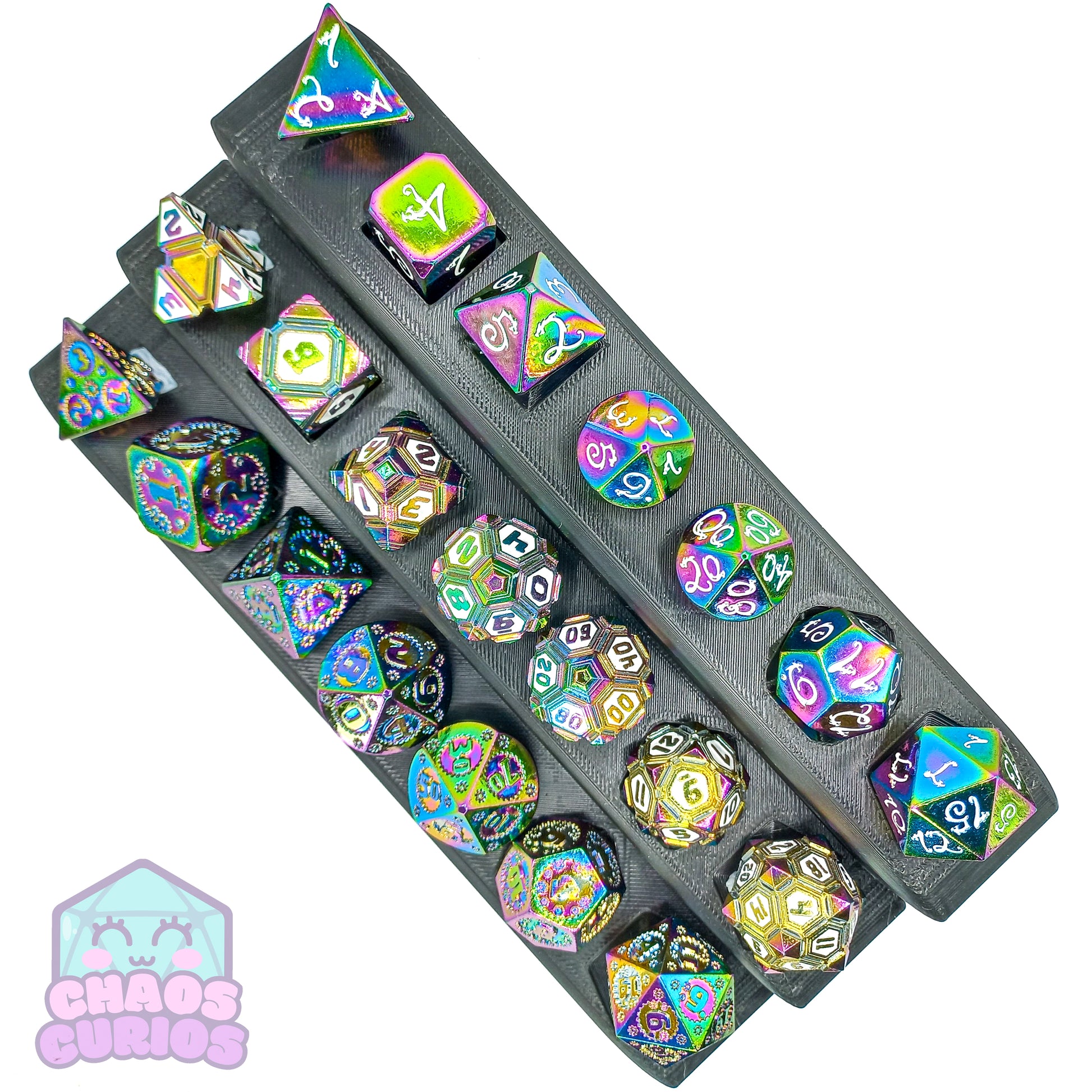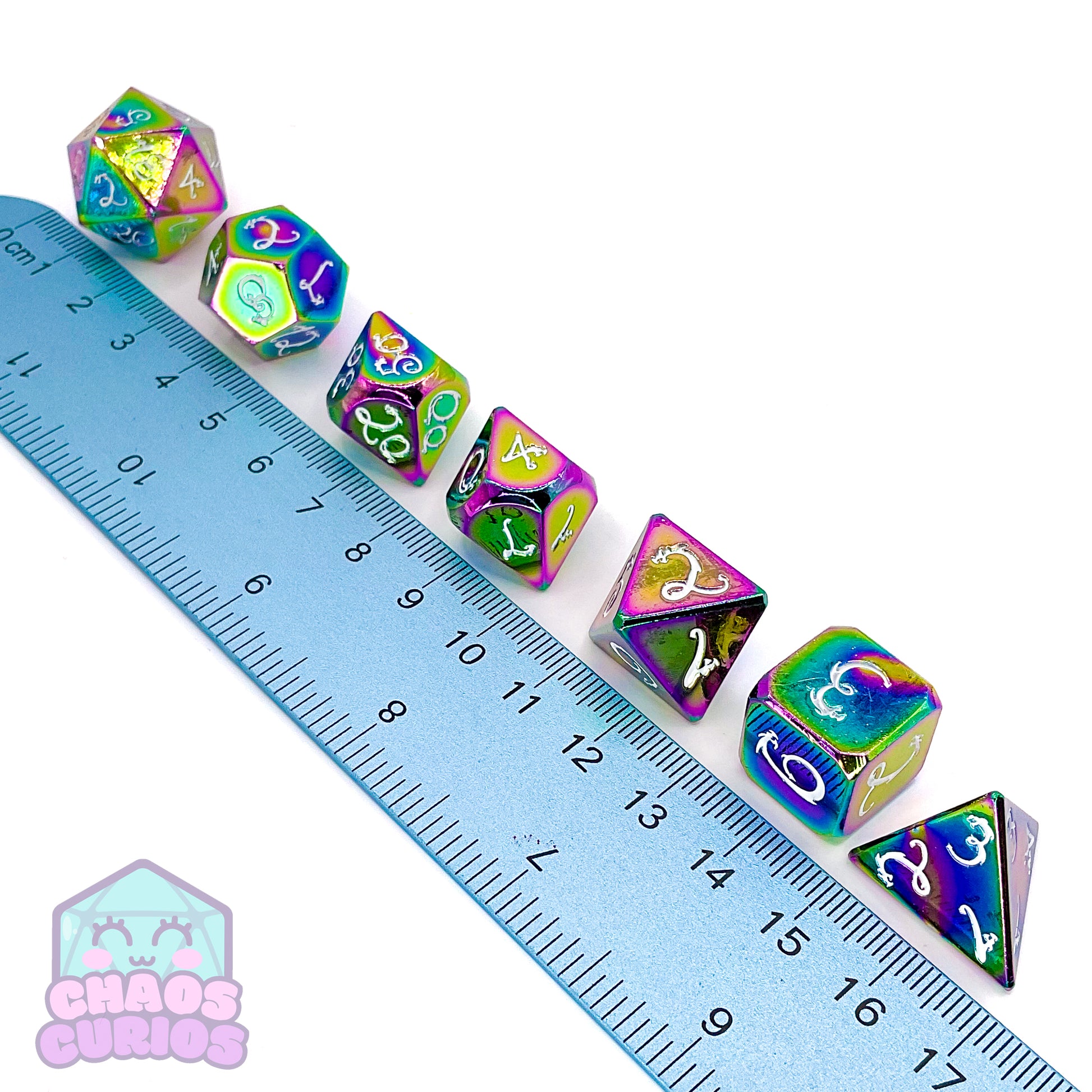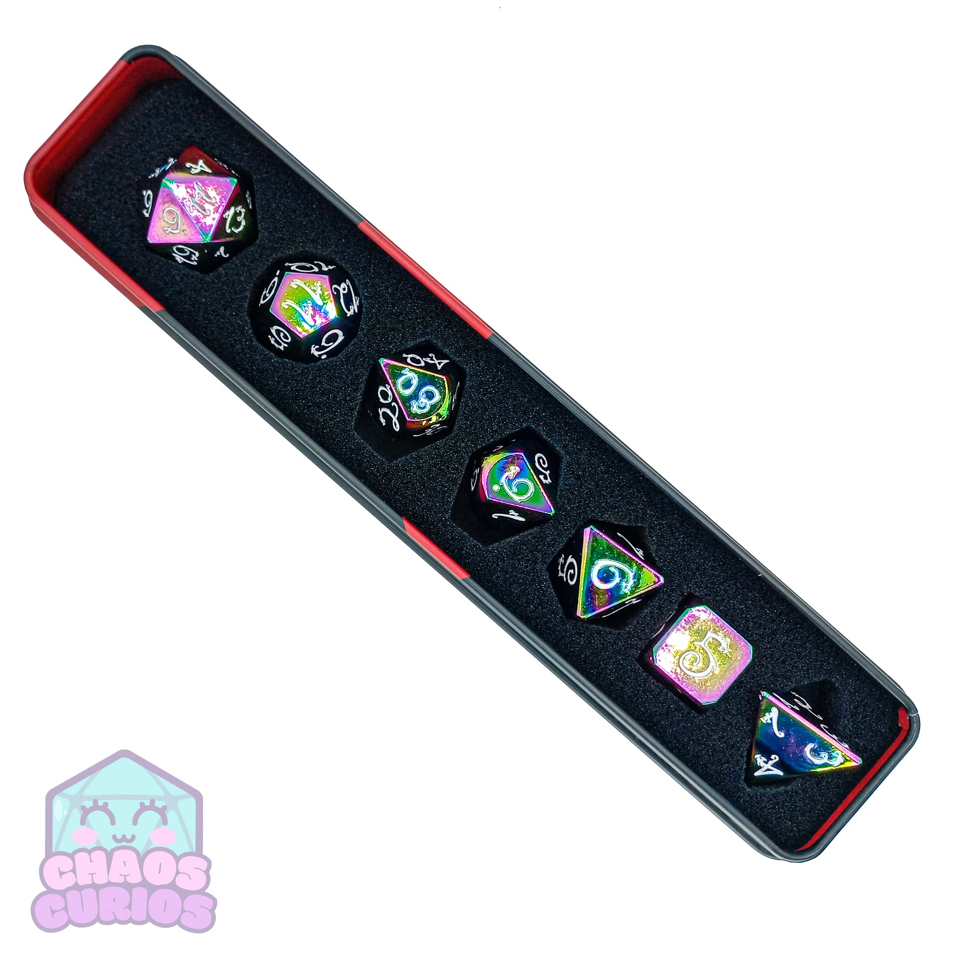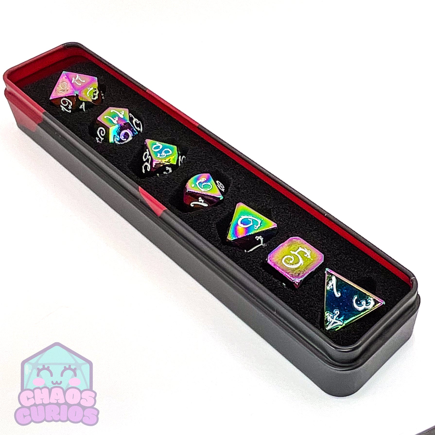 Elven Style Rainbow Electroplated 7-piece Metal Dice Set
