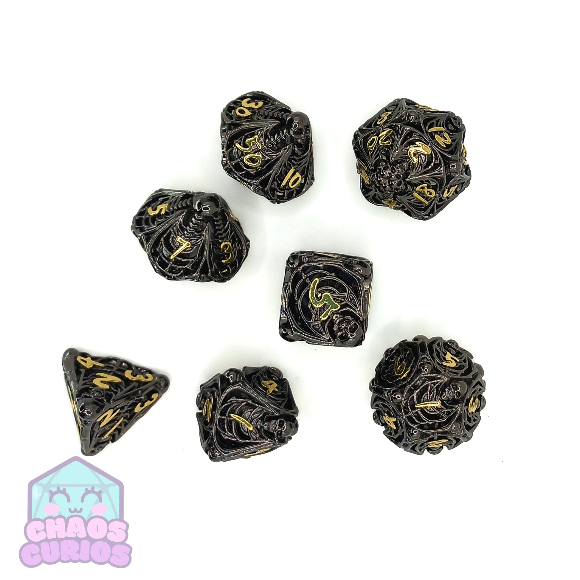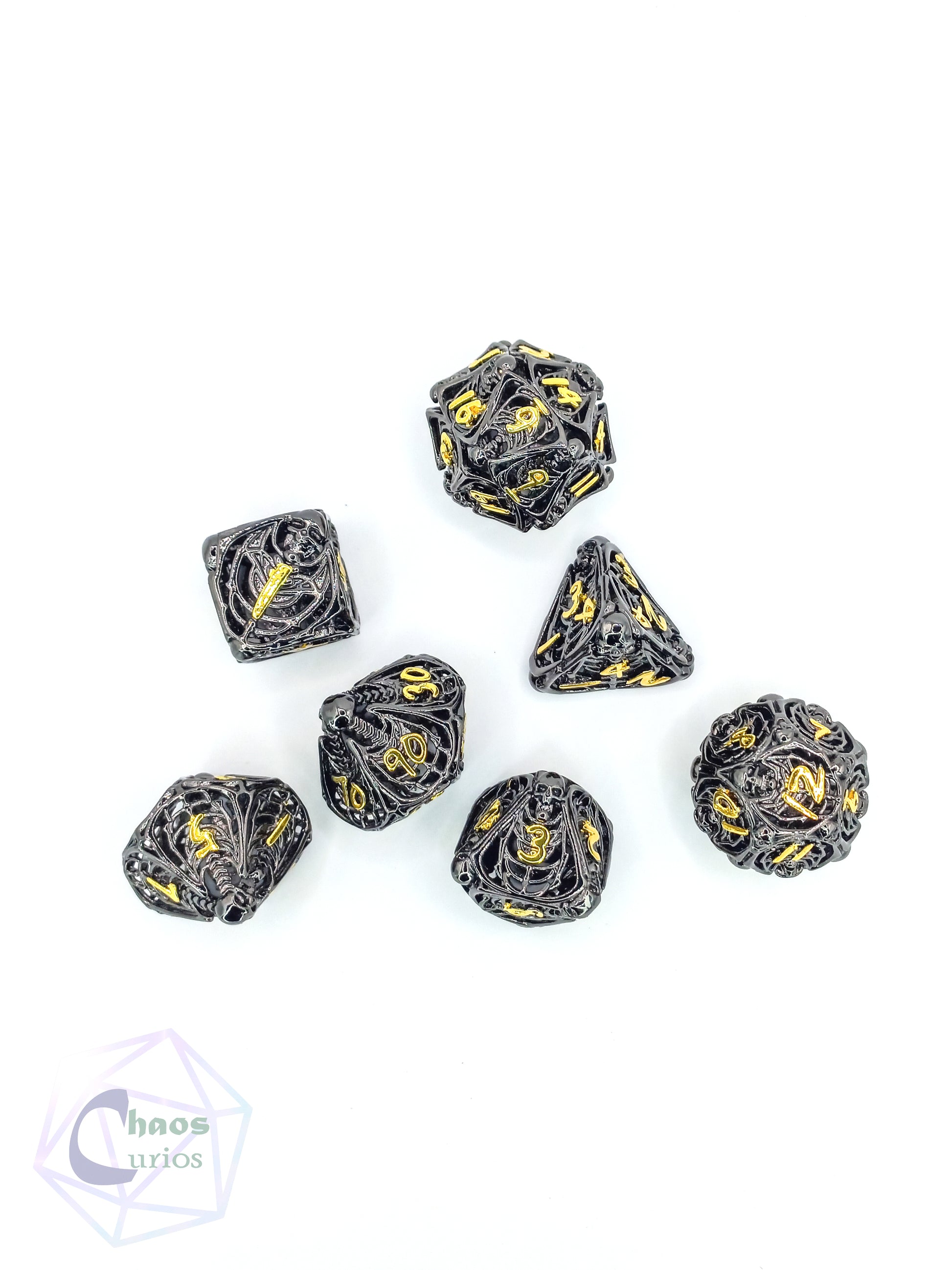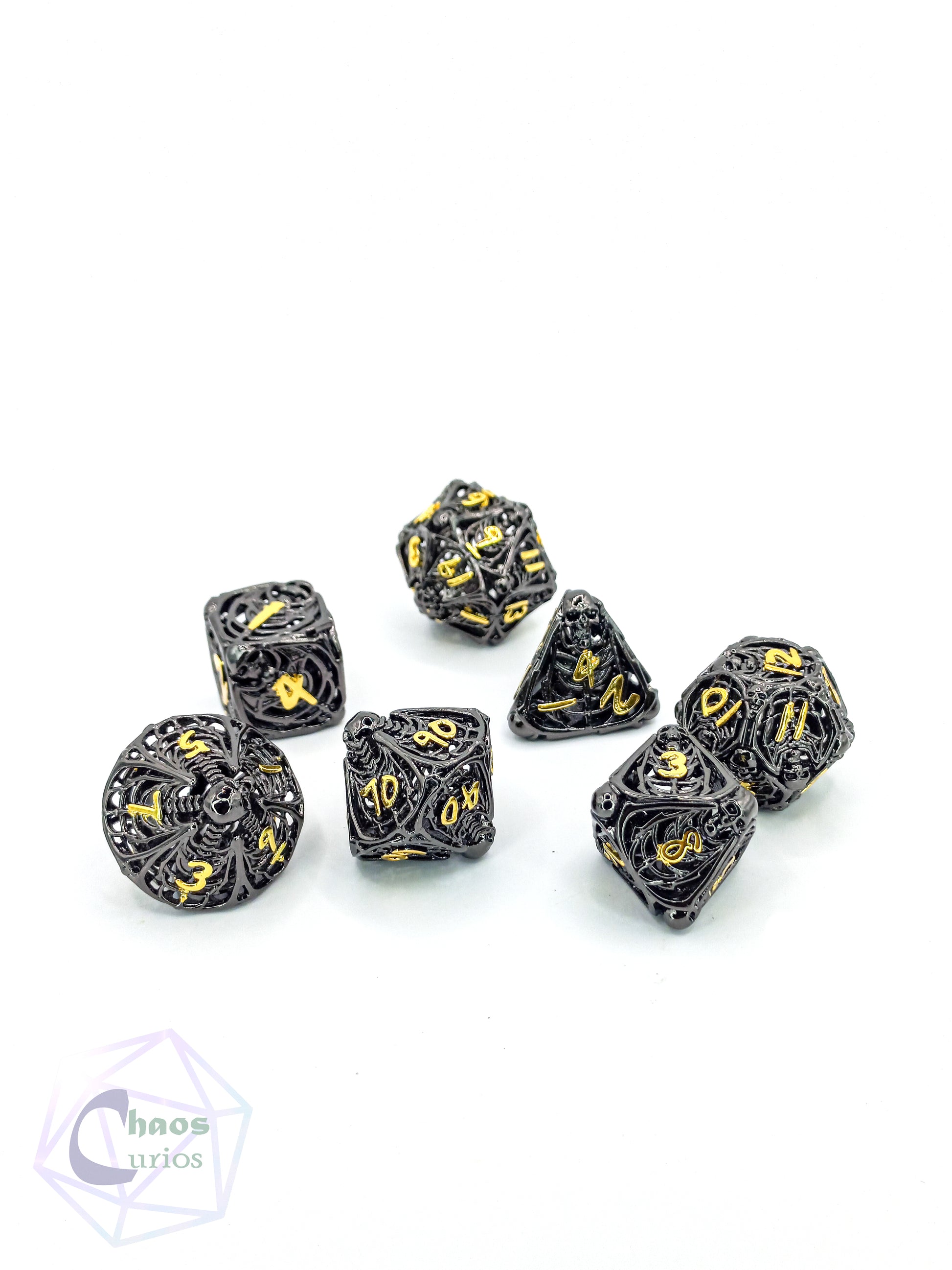 Hollow Skull 7-piece Metal Dice Set