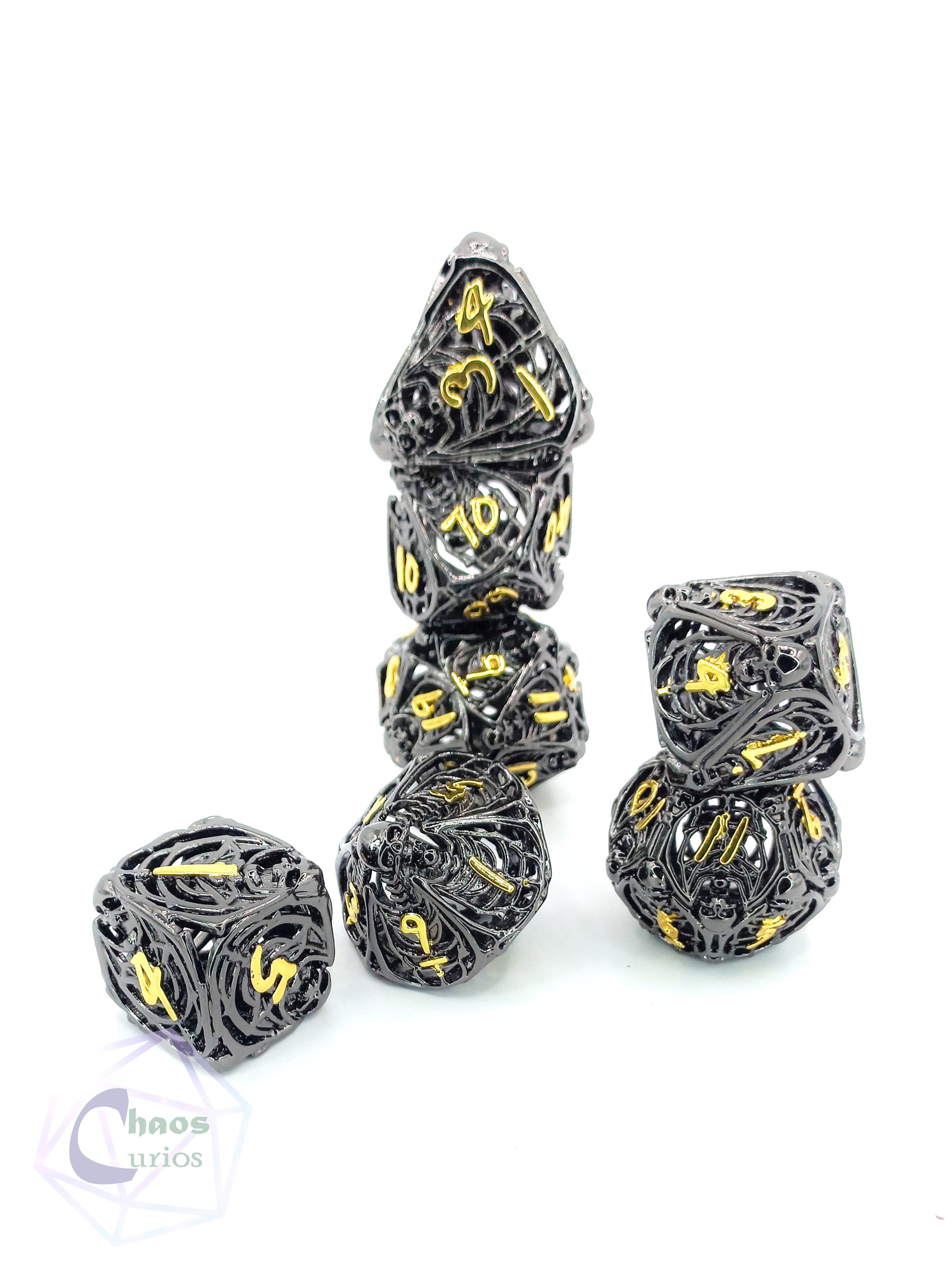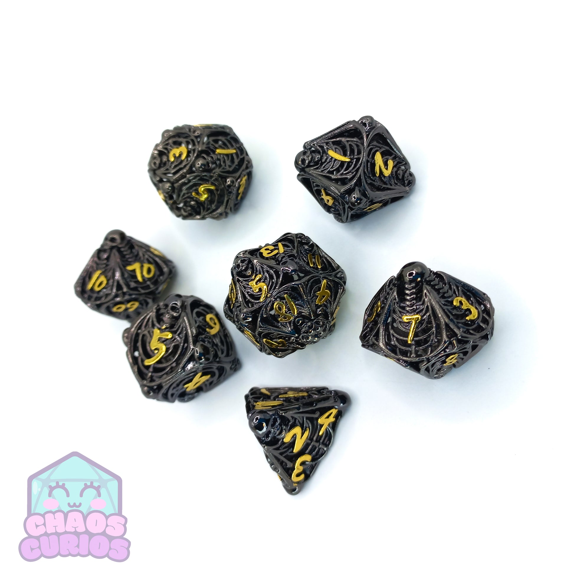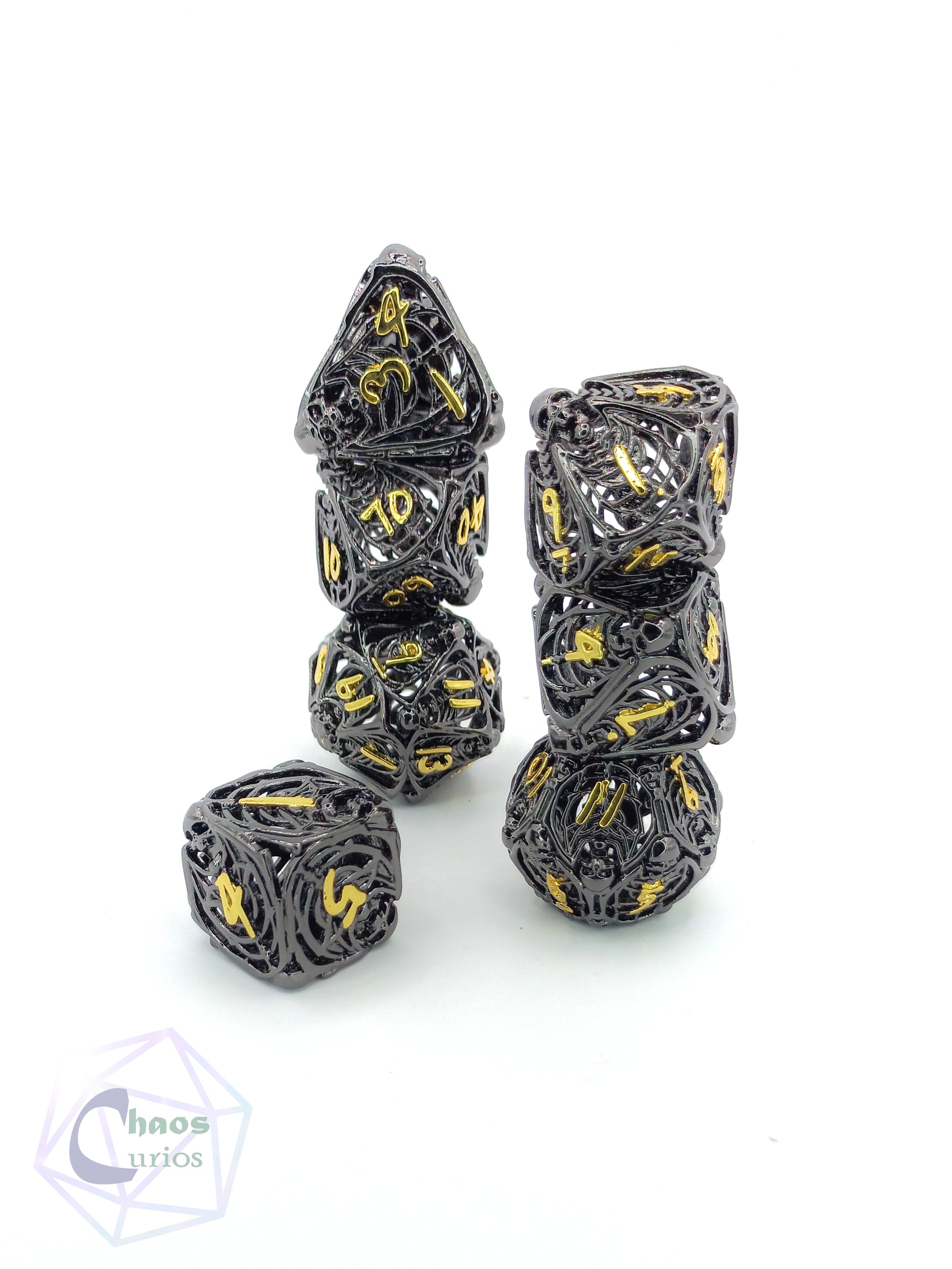 Hollow Skull 7-piece Metal Dice Set