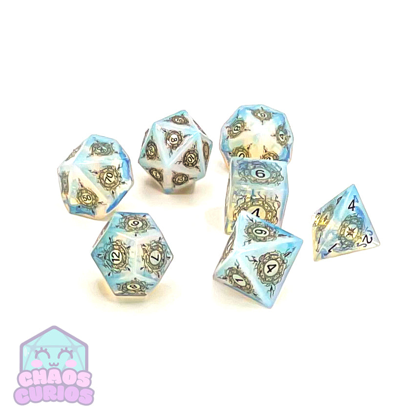 Opalite Gemstone 7-piece Sharp Edged Dice Set