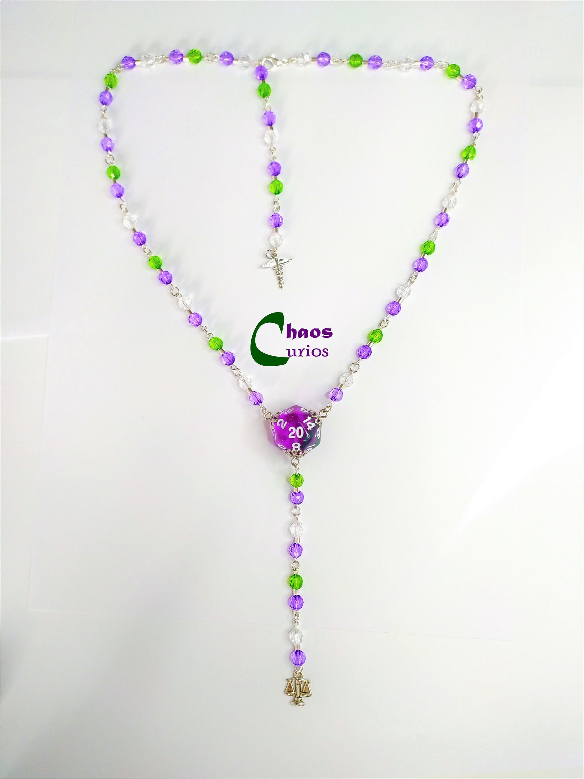 Do you know the most Prudent Paladin? The Classiest Cleric? The most Balanced Barbarian? Maybe you're a Lawful Evil Sorcerer or a Lawful Good Druid? Celebrate your Lawful alignment with these beautiful rosary beads complete with a D20 and a lawful charm!