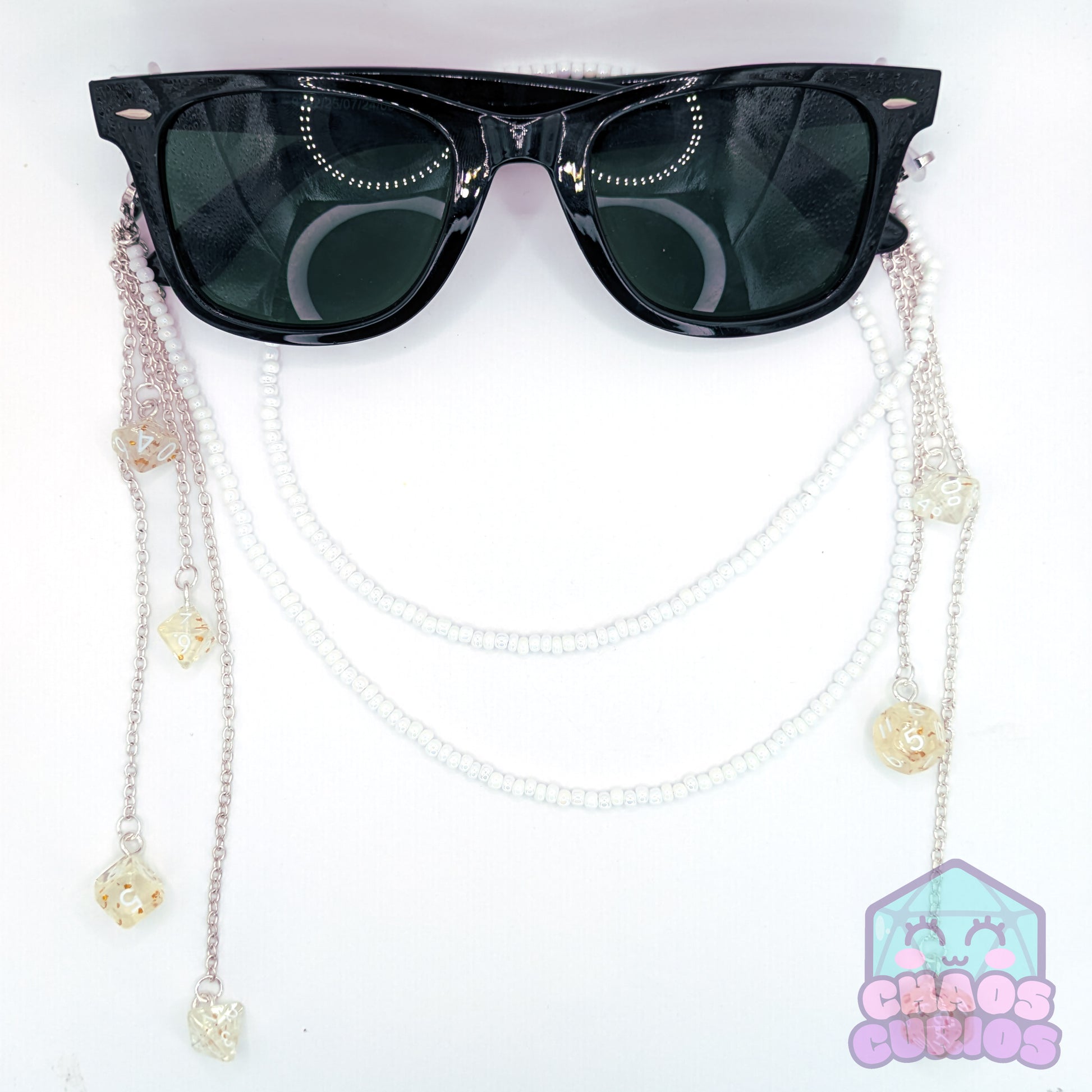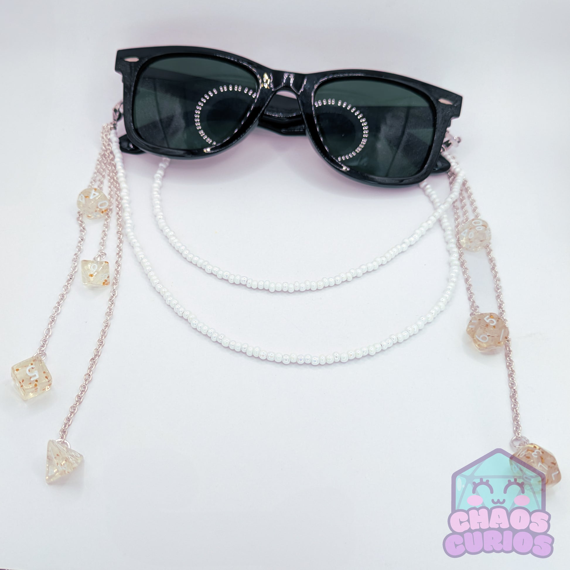 Mini Dice Glasses Chain, Multi-Dangling Dice, Gold White Dice, Mini Dice, Dice Glasses Chain, Dice Jewellery