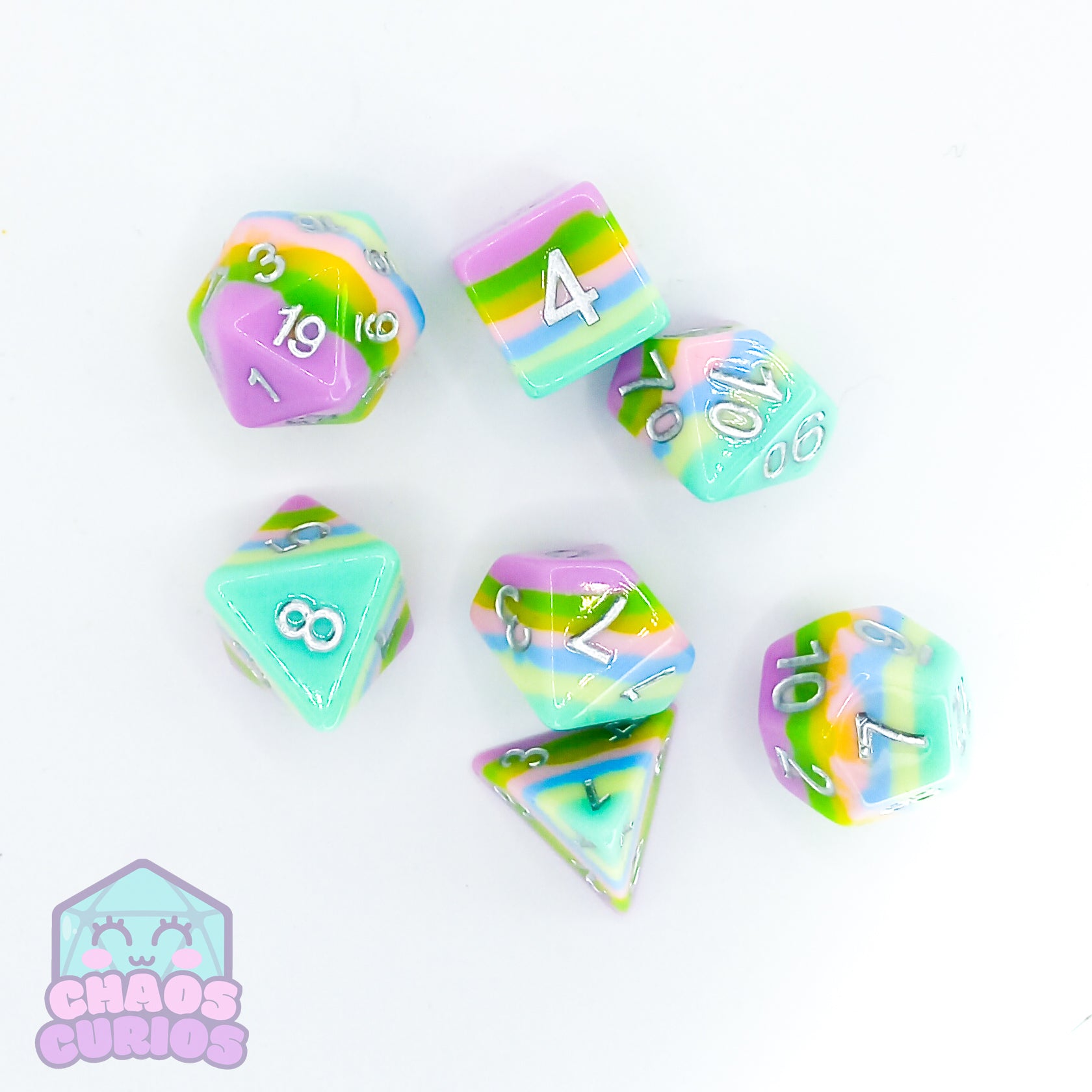 Bubblegum Stripes 7-piece Dice Set