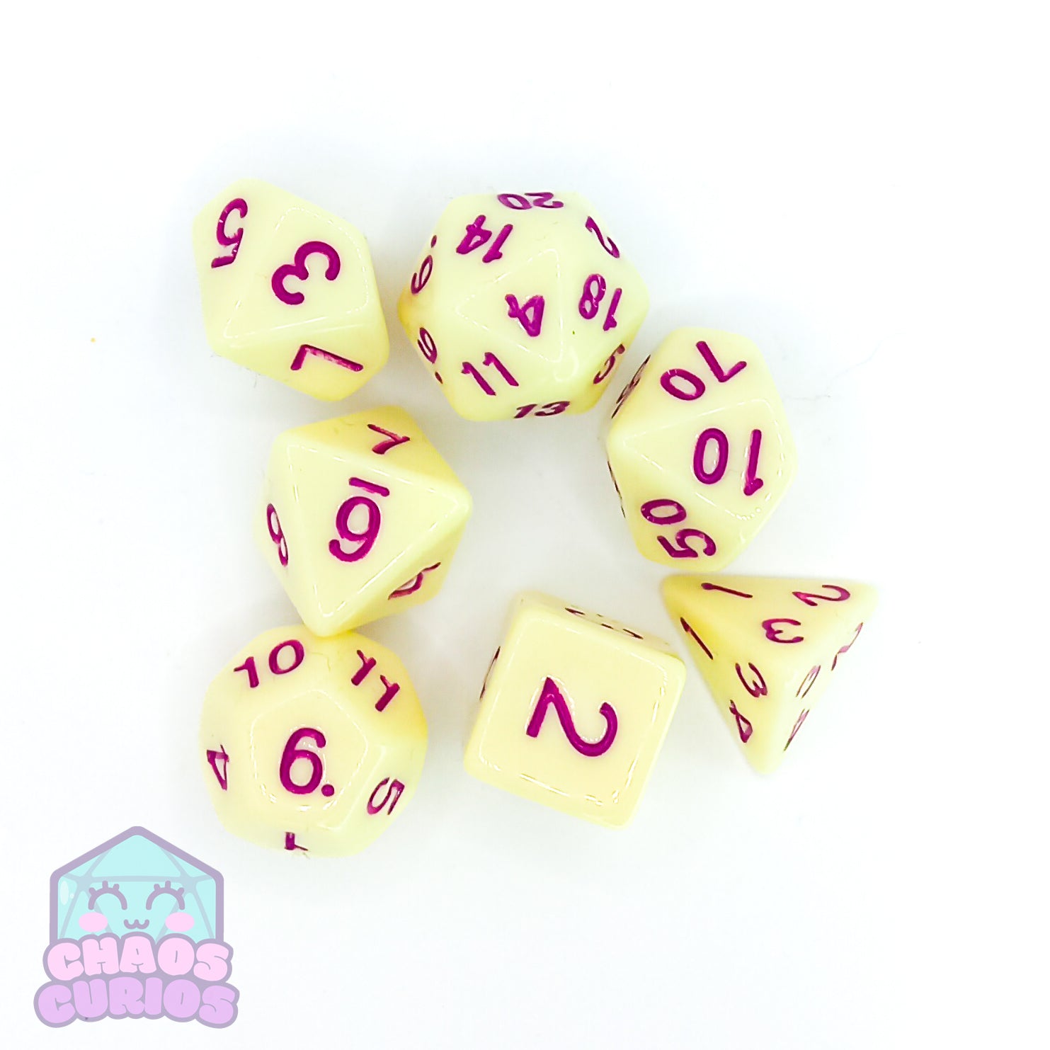 Raspberry Cream Retro Candy 7-piece Dice Set