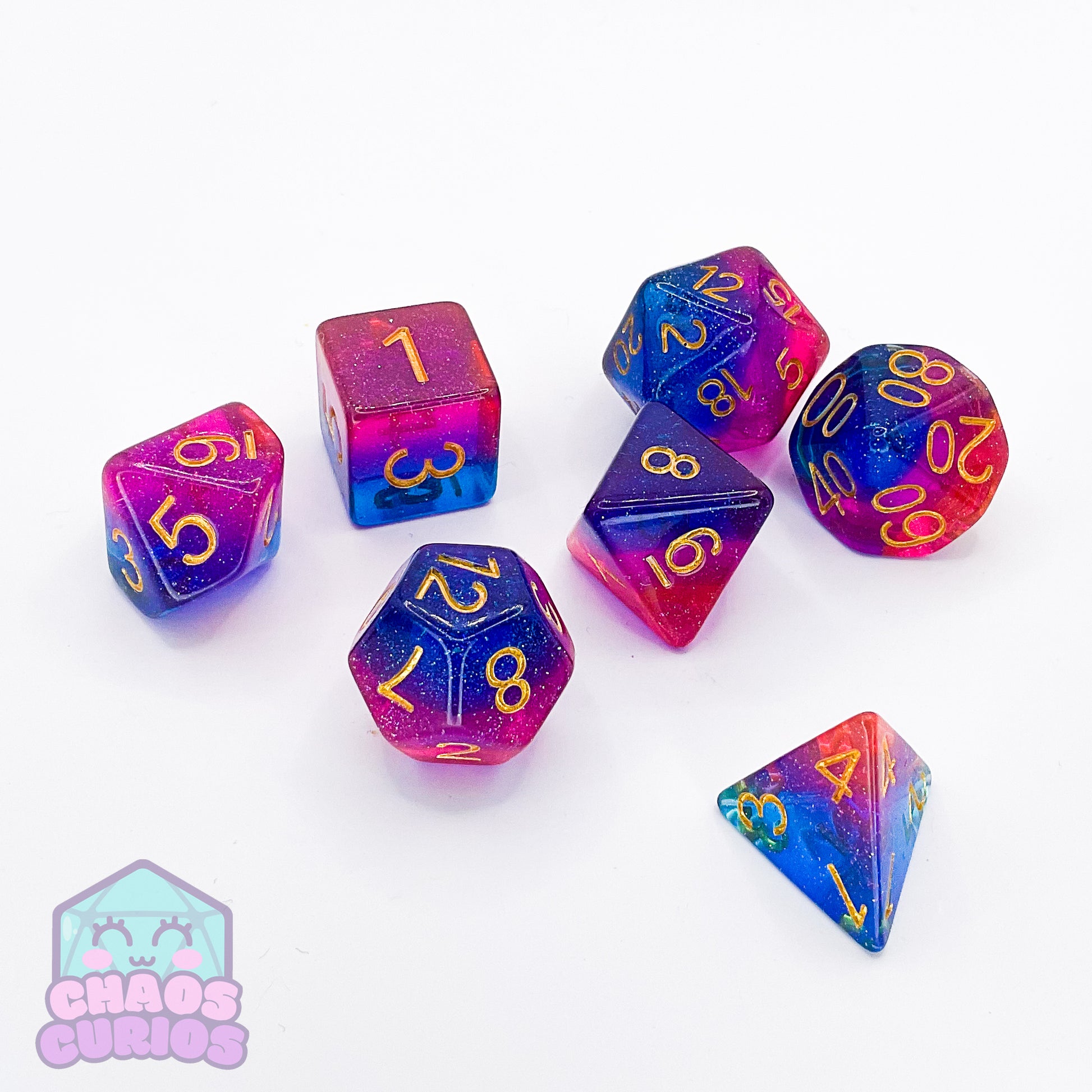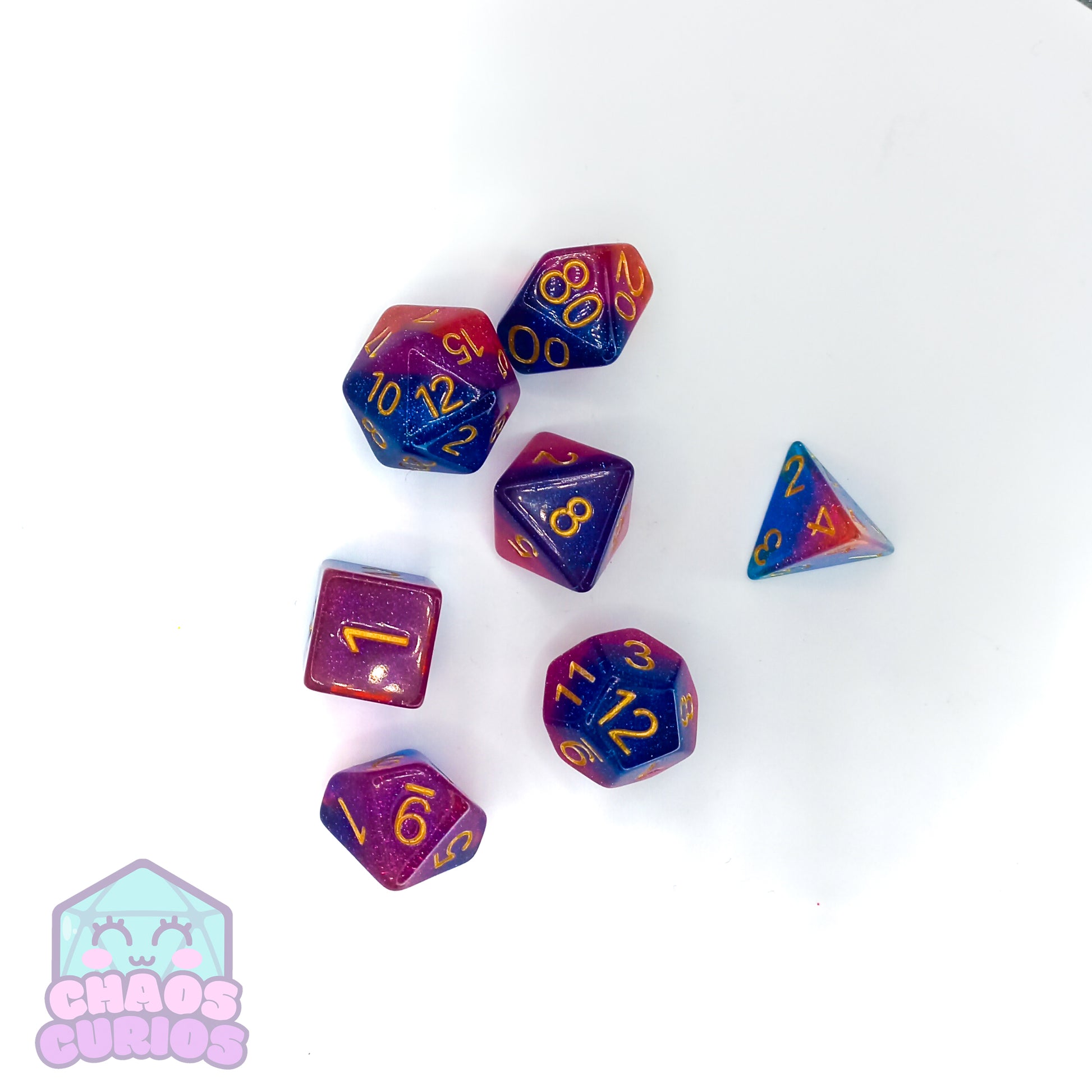 PRIDE Bisexual Glitter Layered 7-piece Resin Dice Set