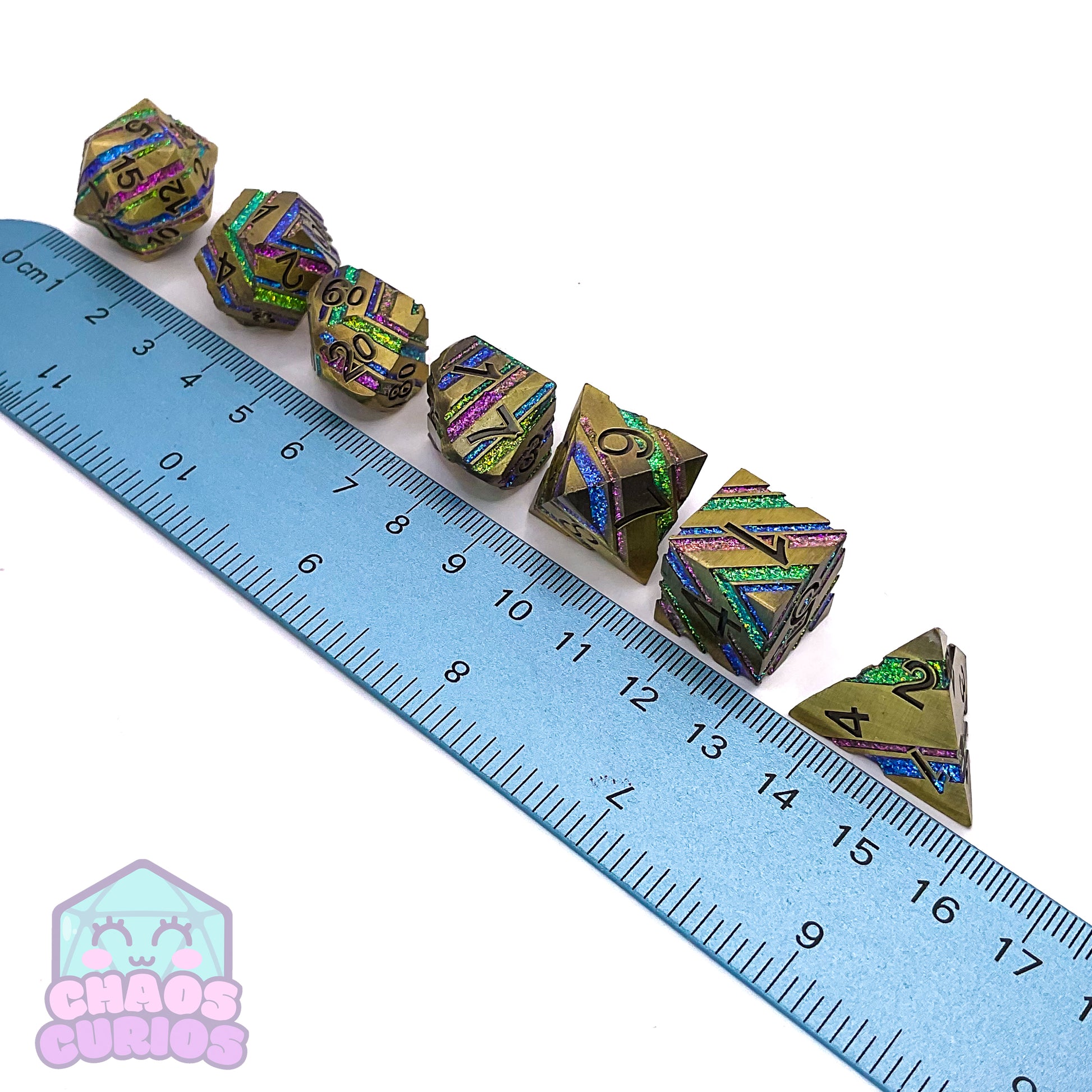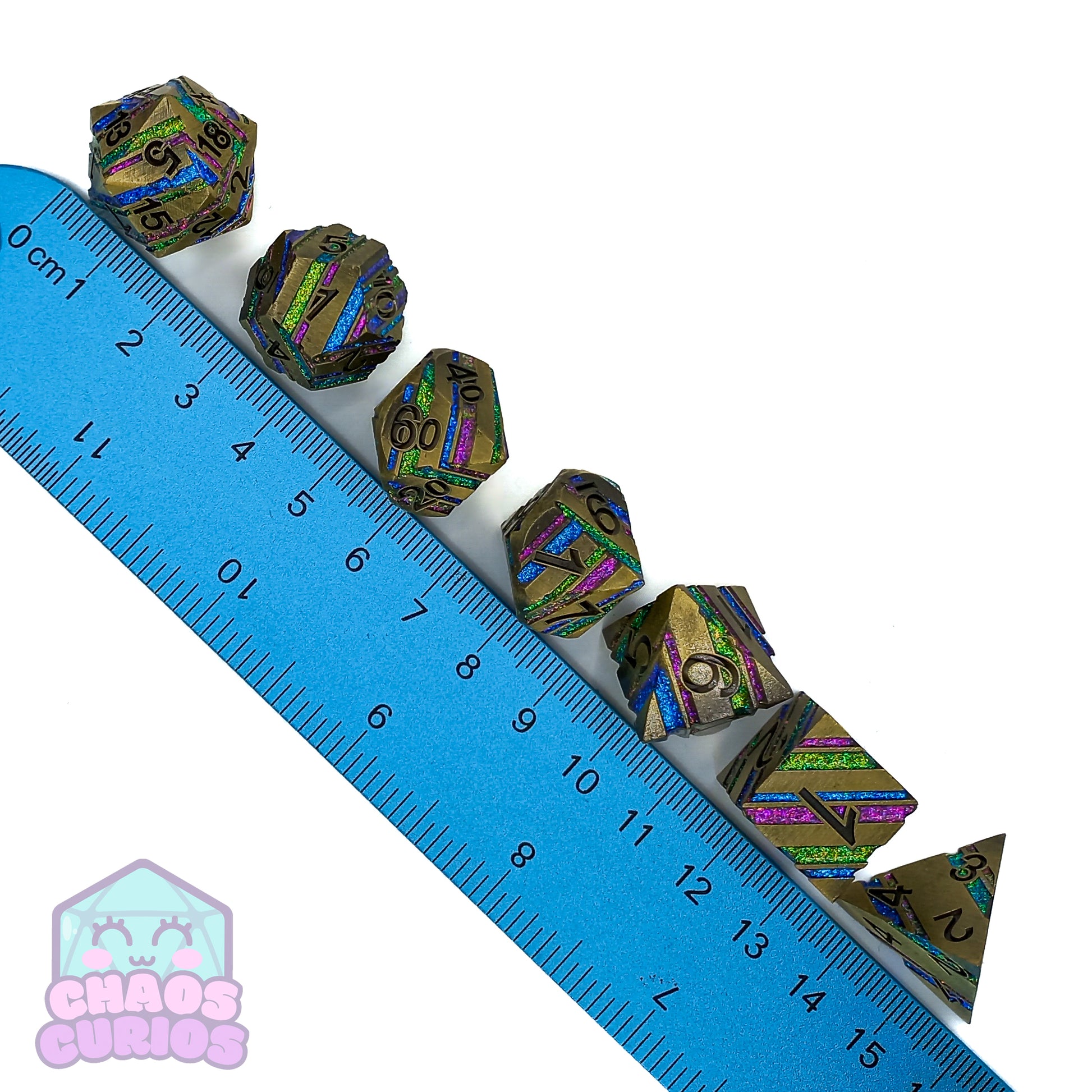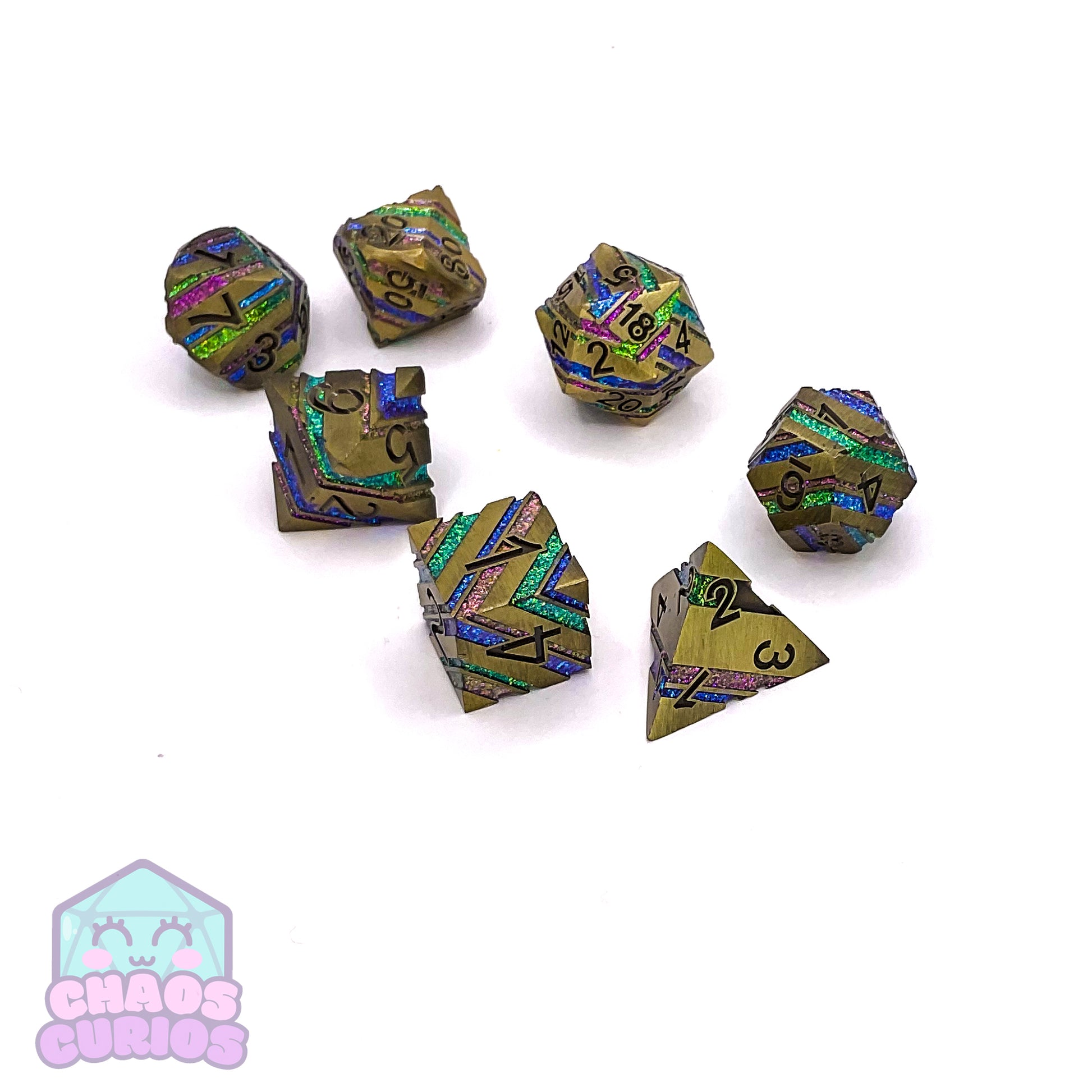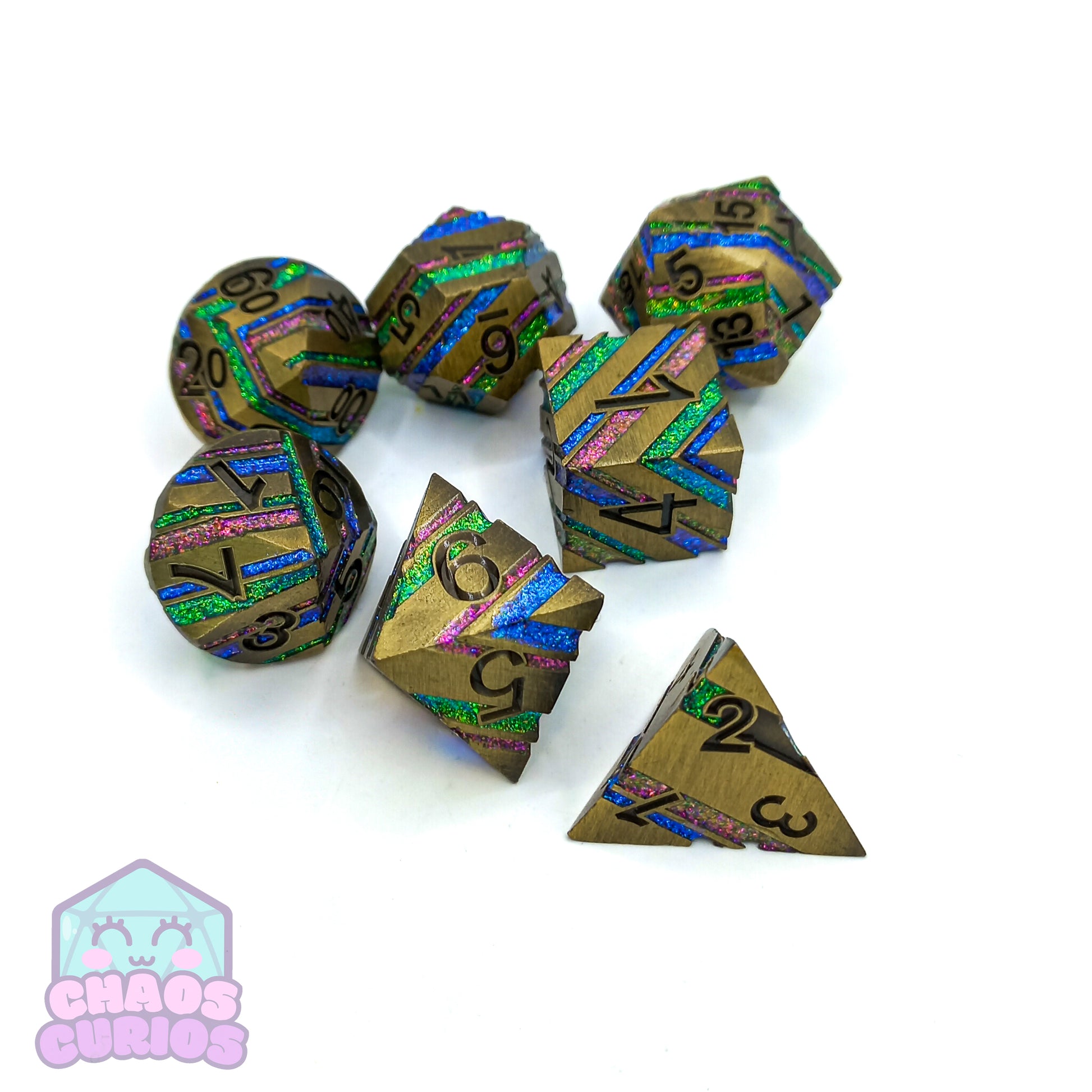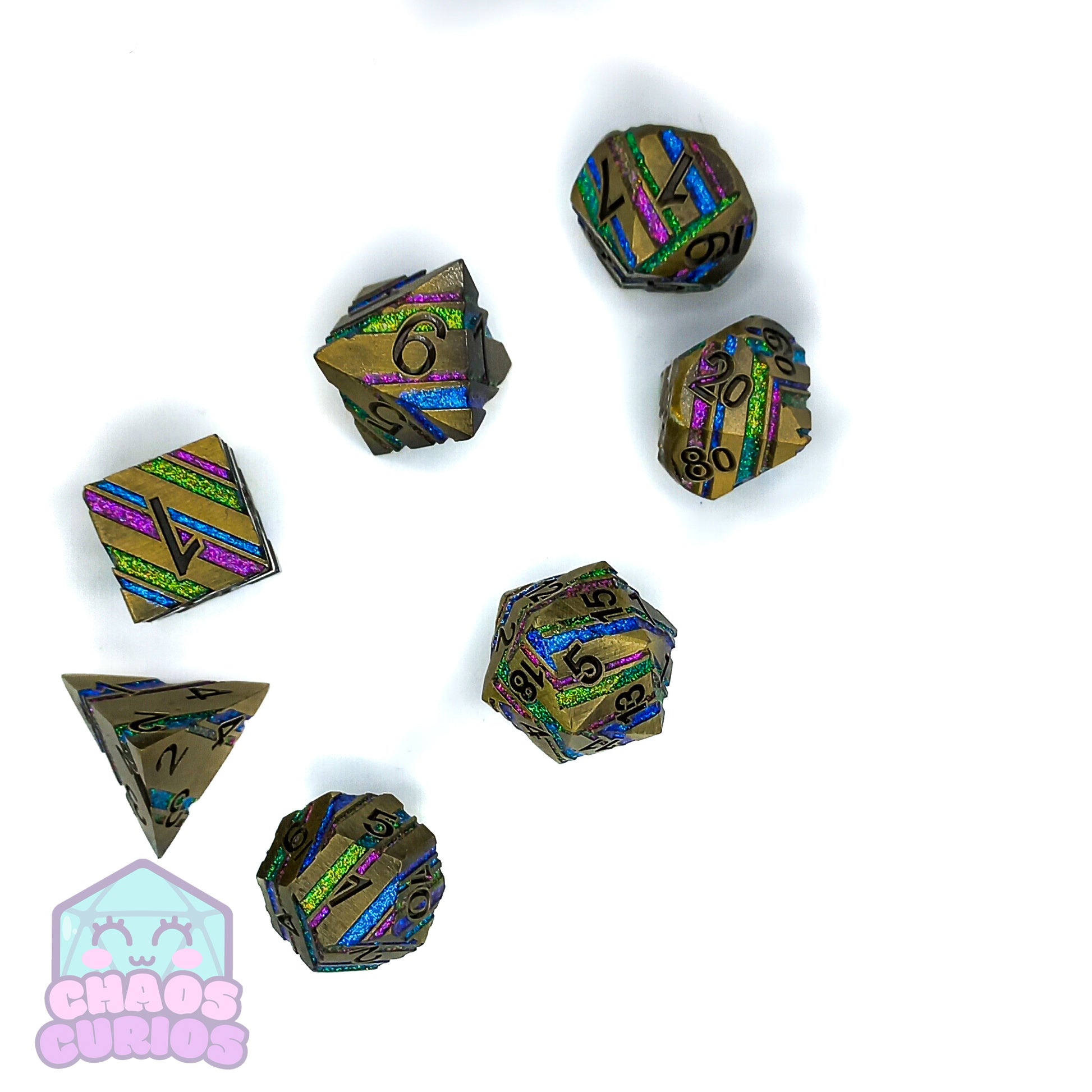 Striped Glitter Golden Rainbow 7-piece Metal Dice Set