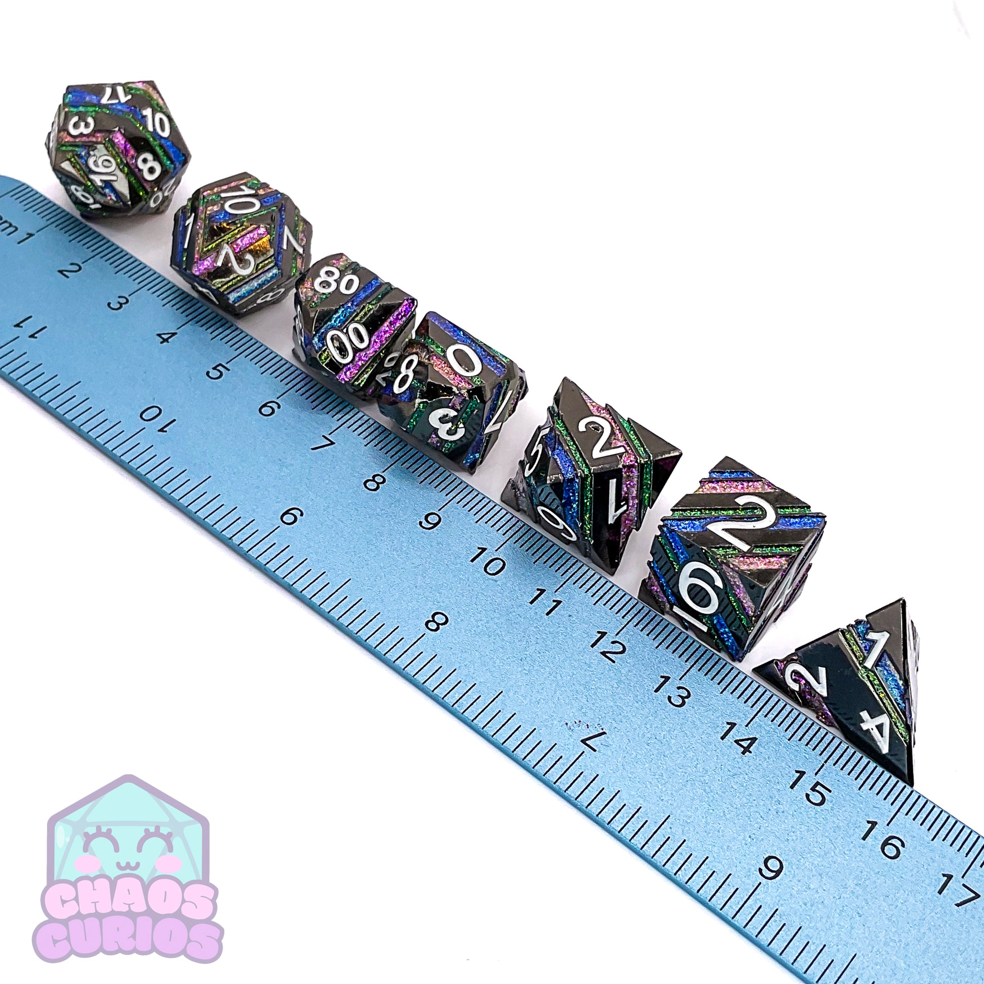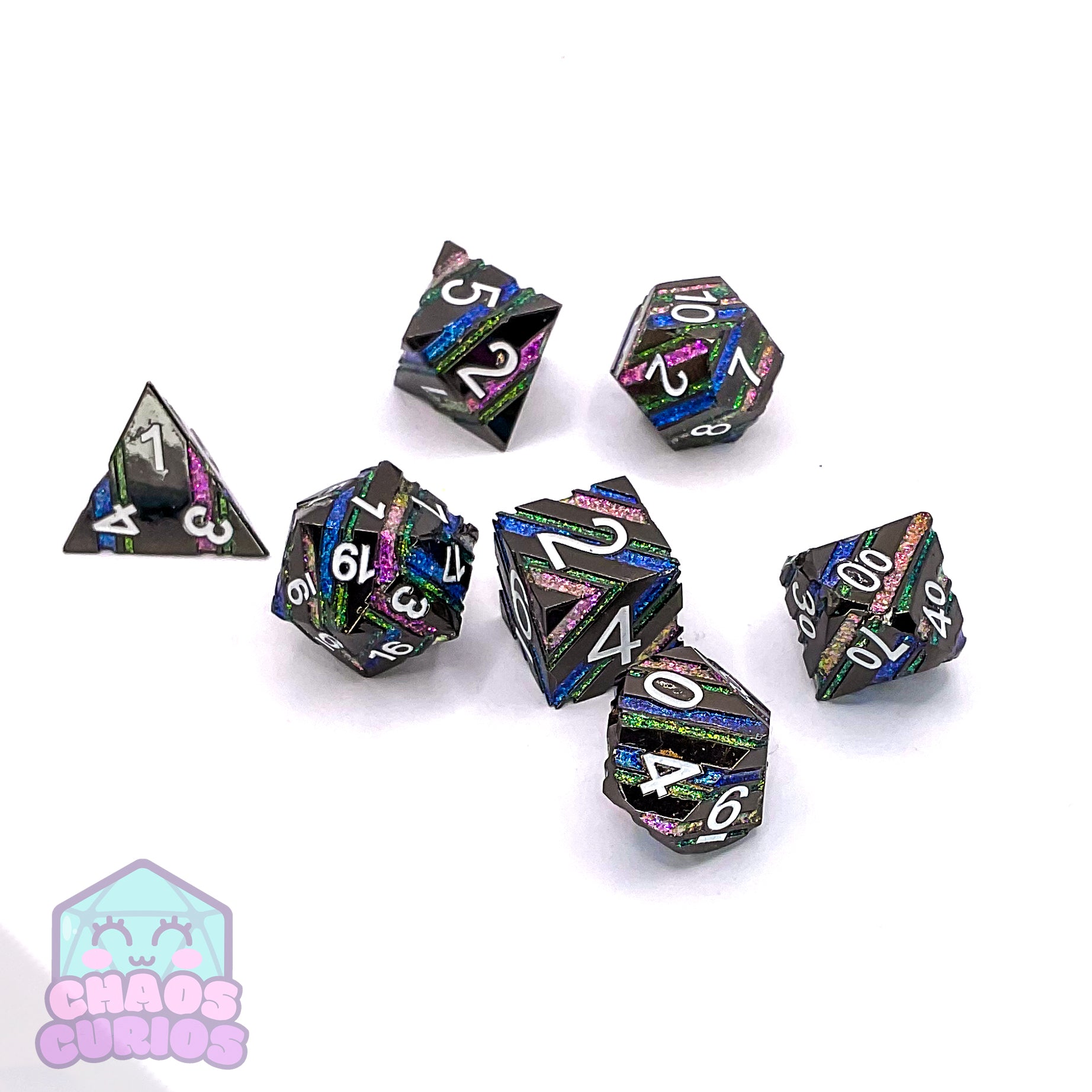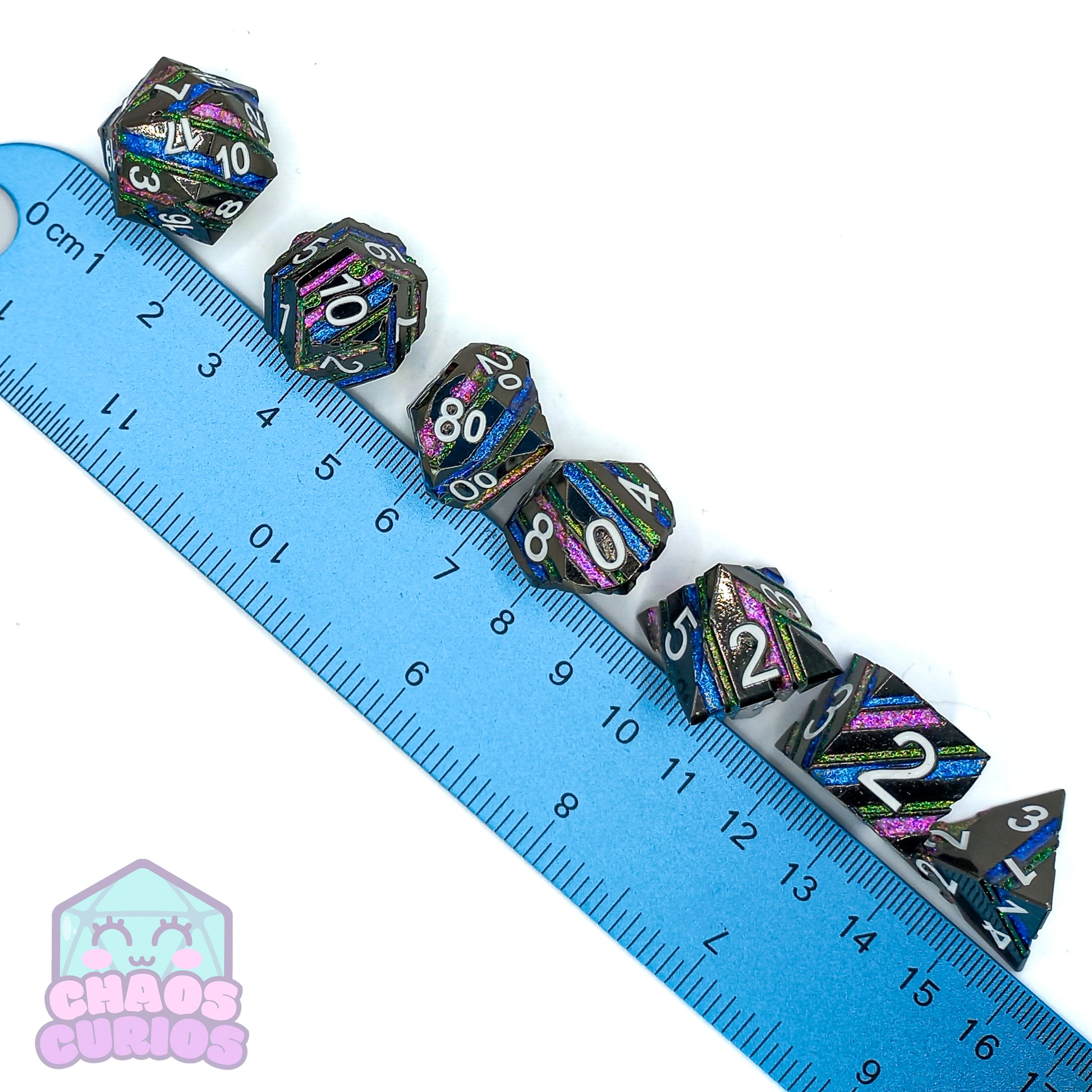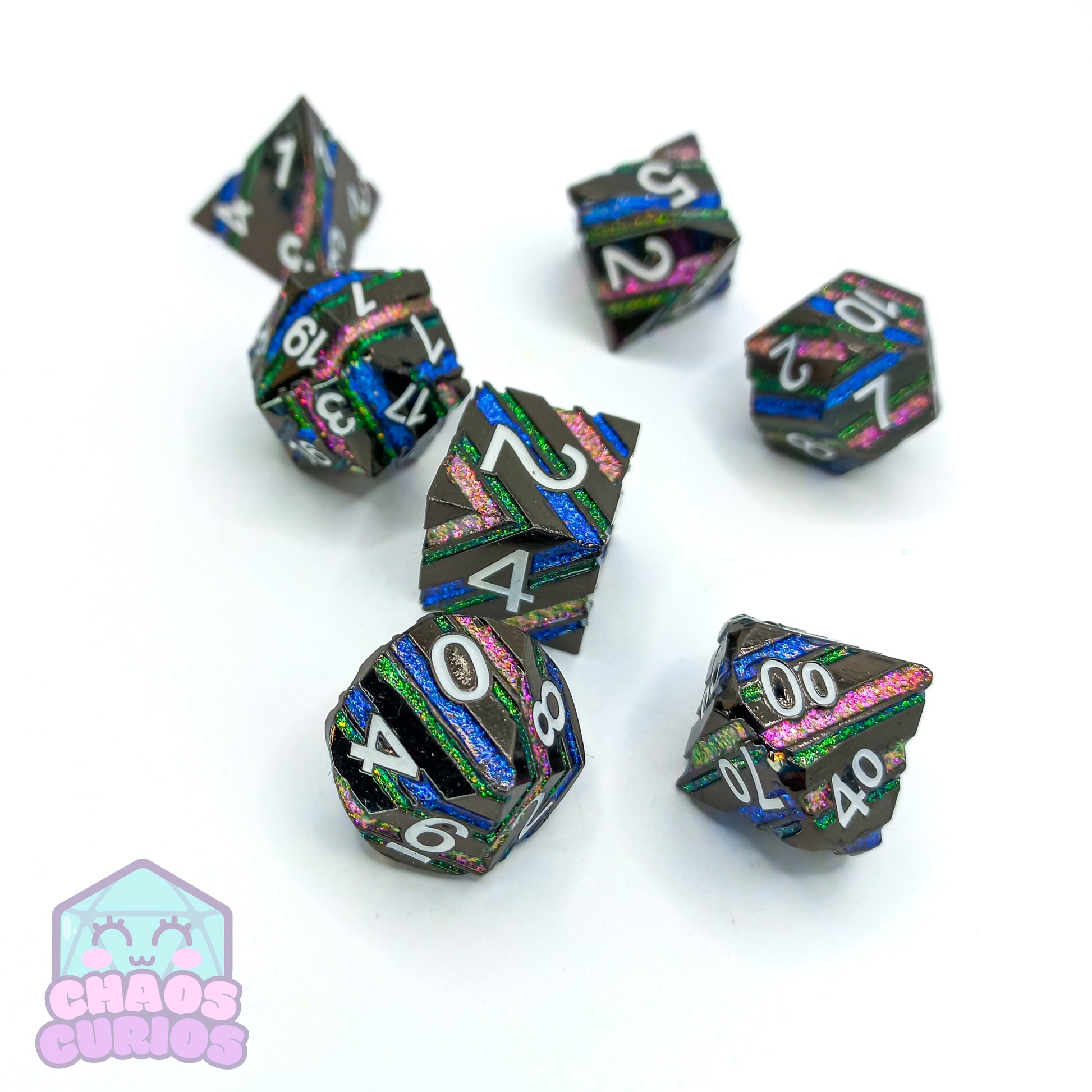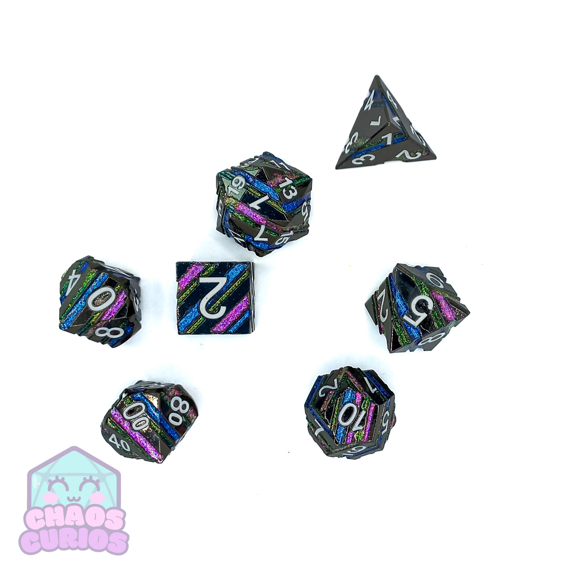 Striped Glitter Liquorice Allsorts 7-piece Metal Dice Set