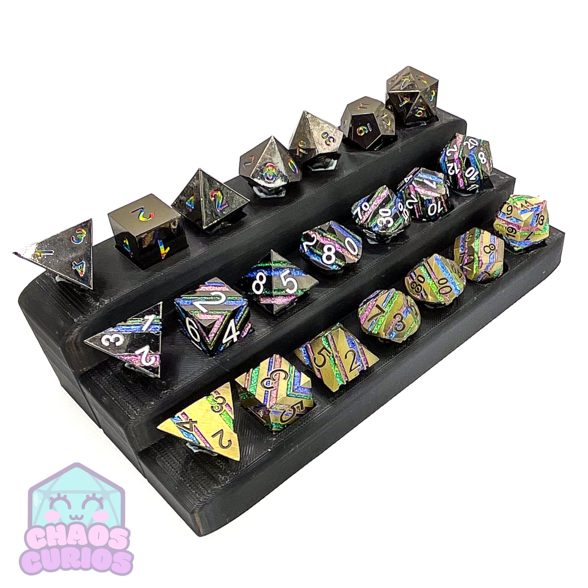 7-piece Metal dice set for use with a variety of role playing games. D20, D12, D10, D100, D8, D6 and D4.