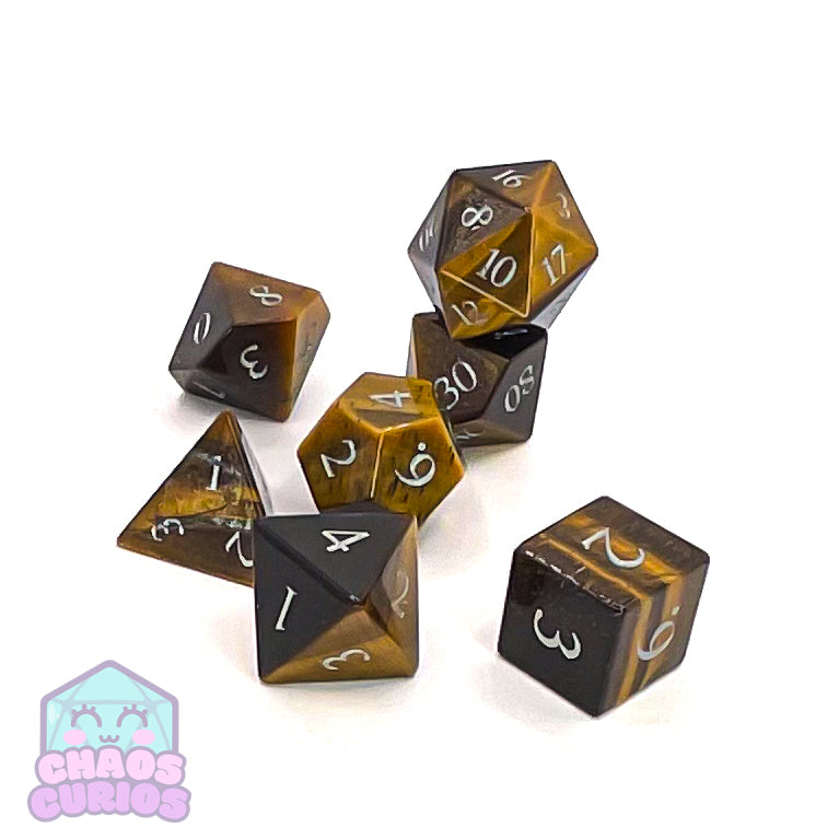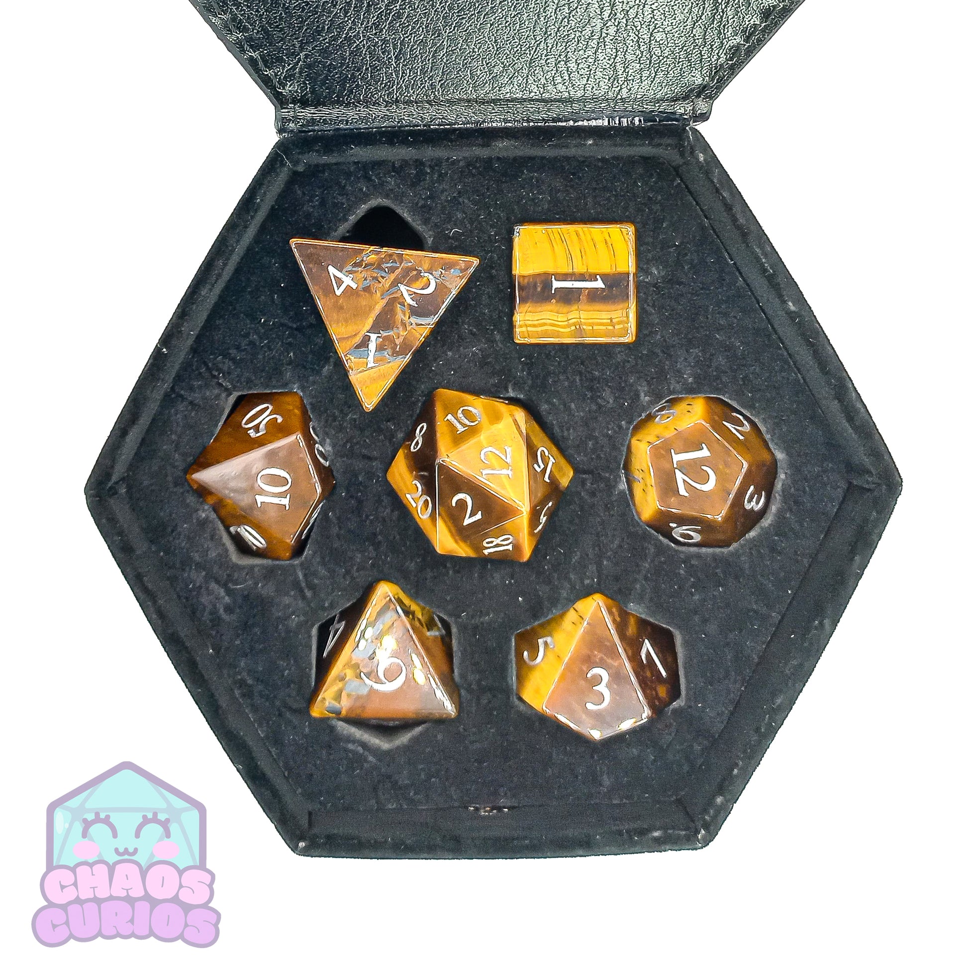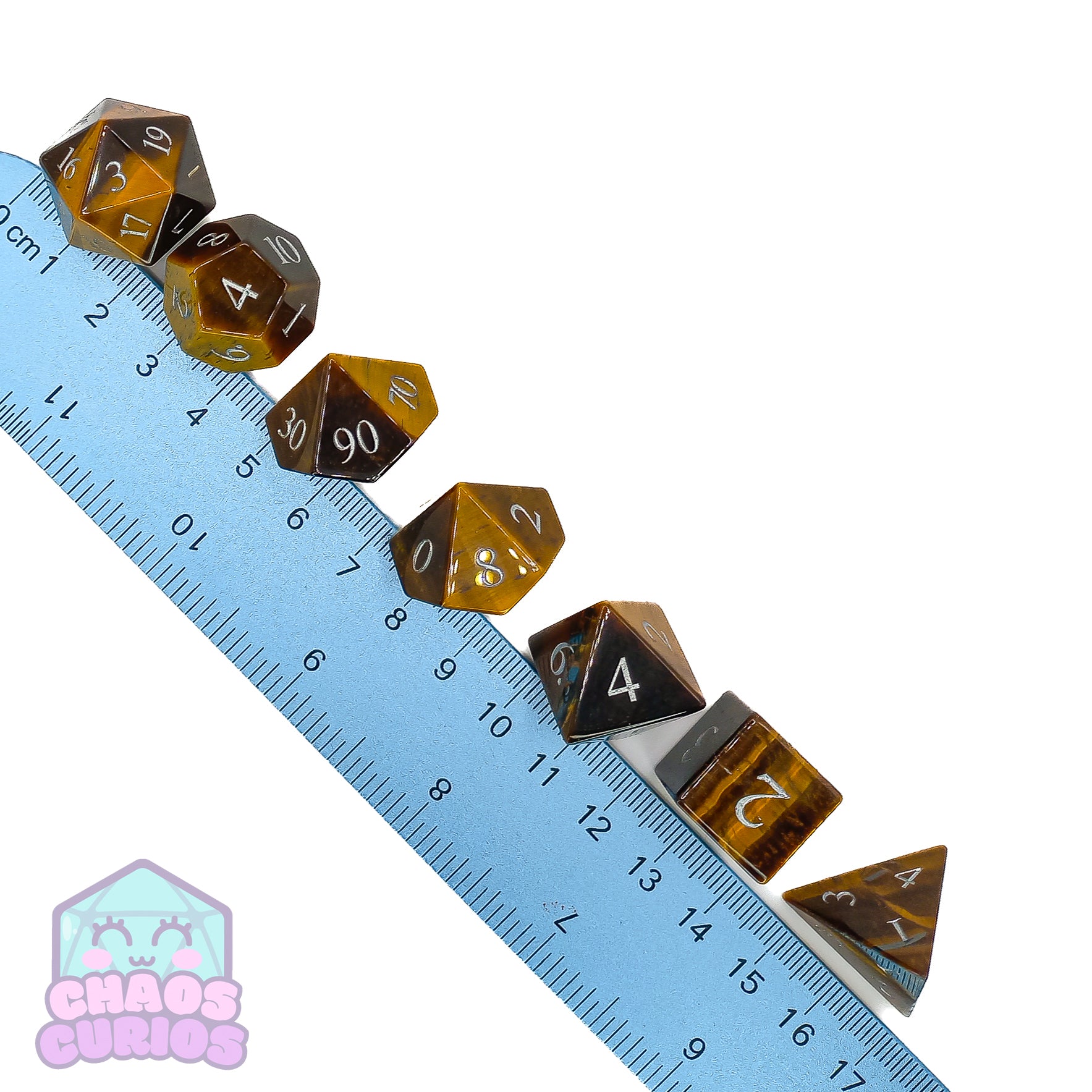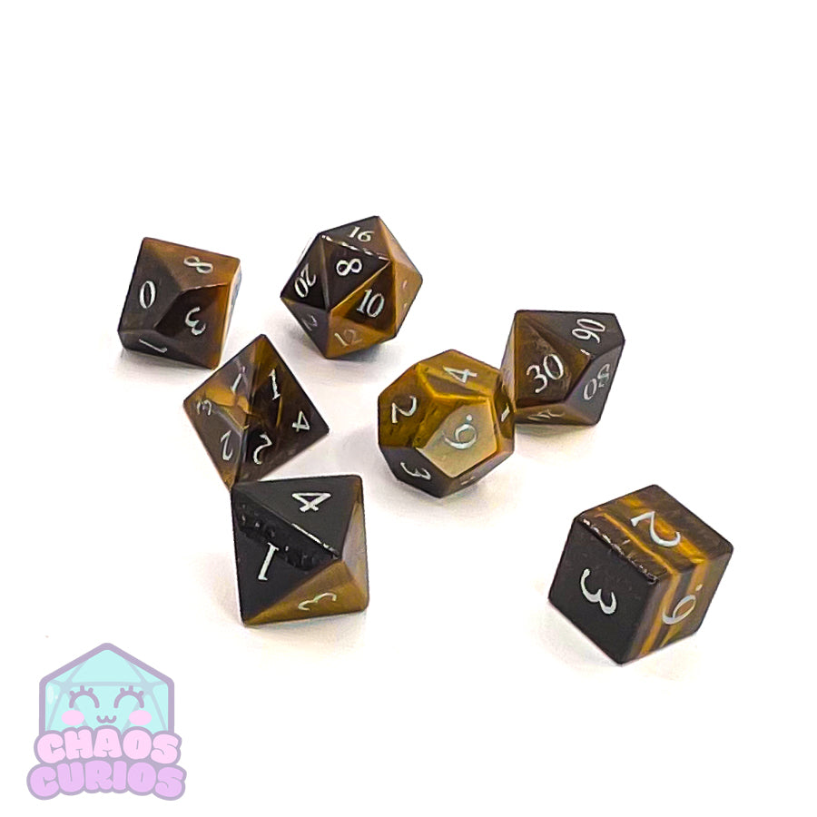 Tiger's Eye Gemstone 7-piece Sharp Edged Dice Set