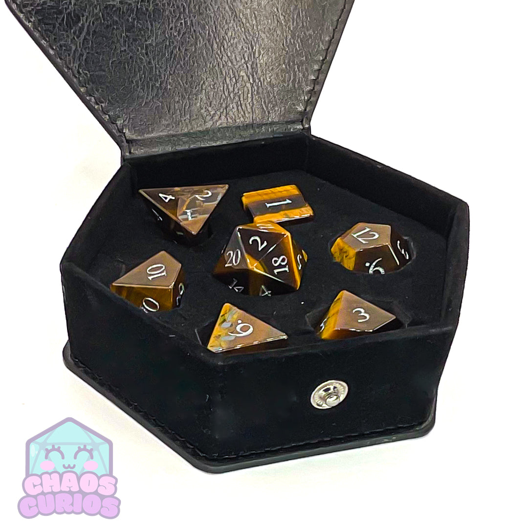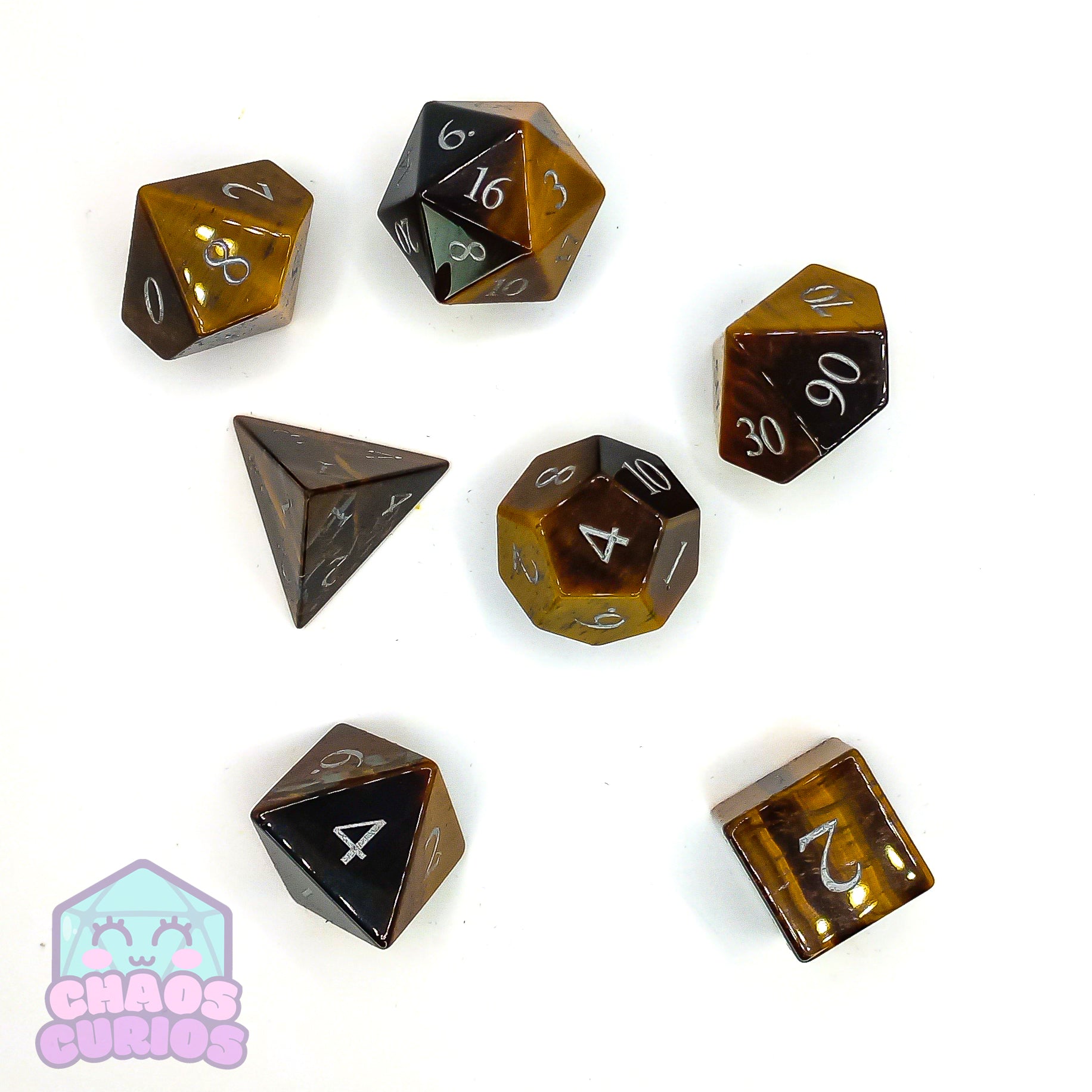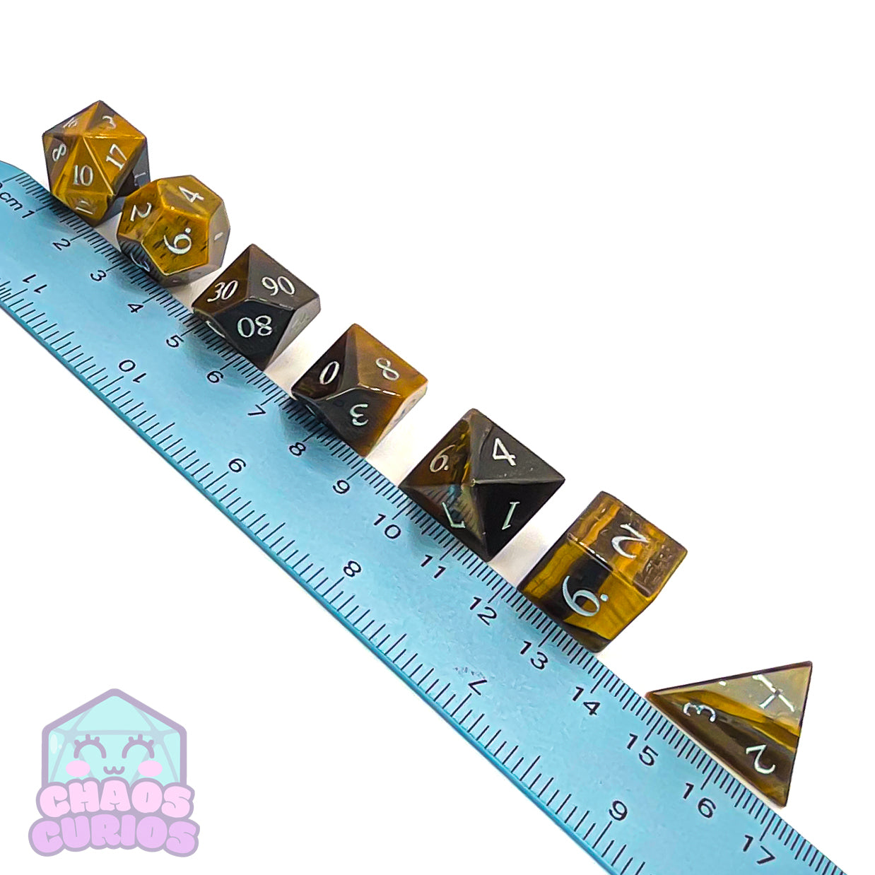 Tiger's Eye Gemstone 7-piece Sharp Edged Dice Set